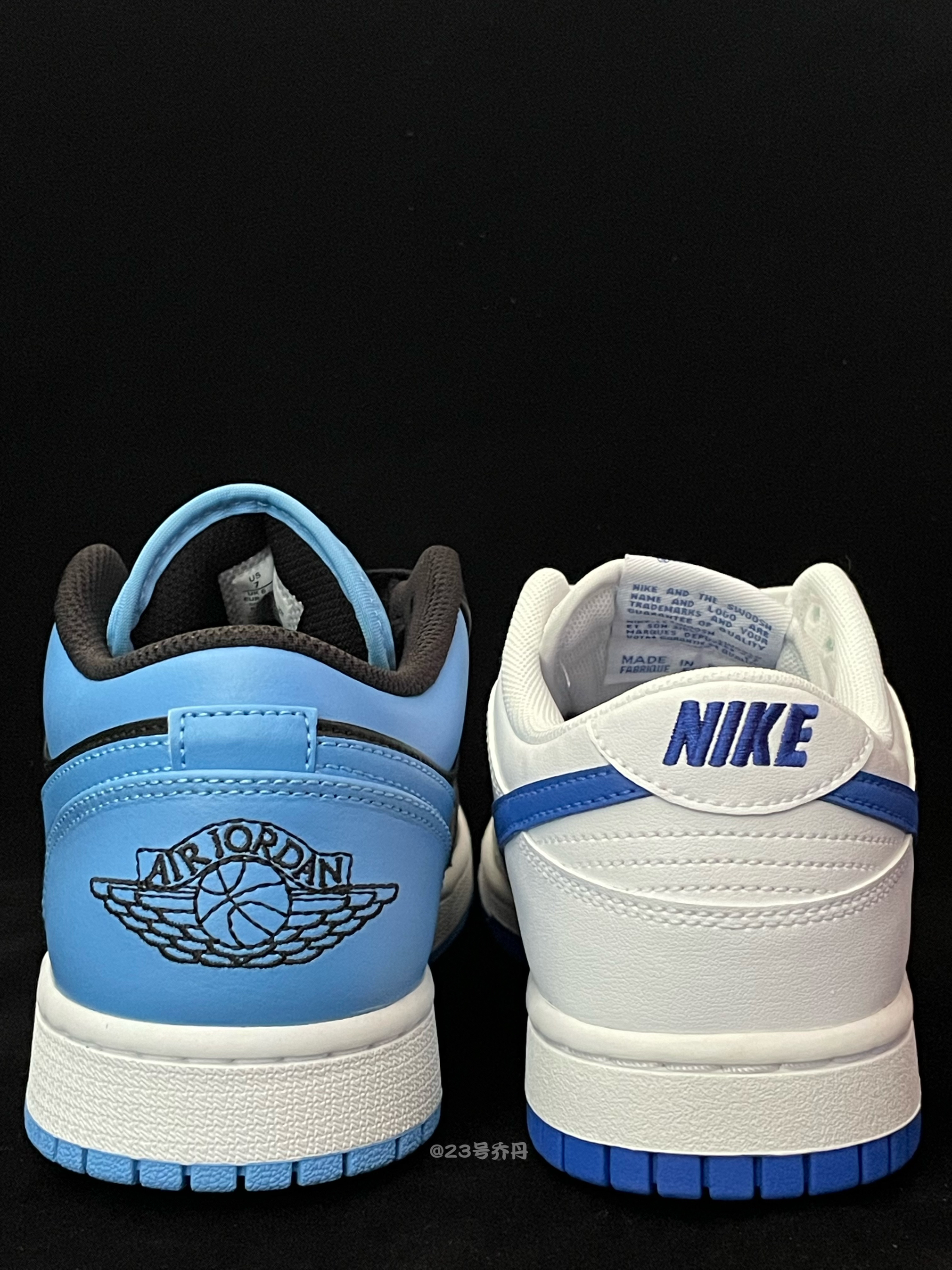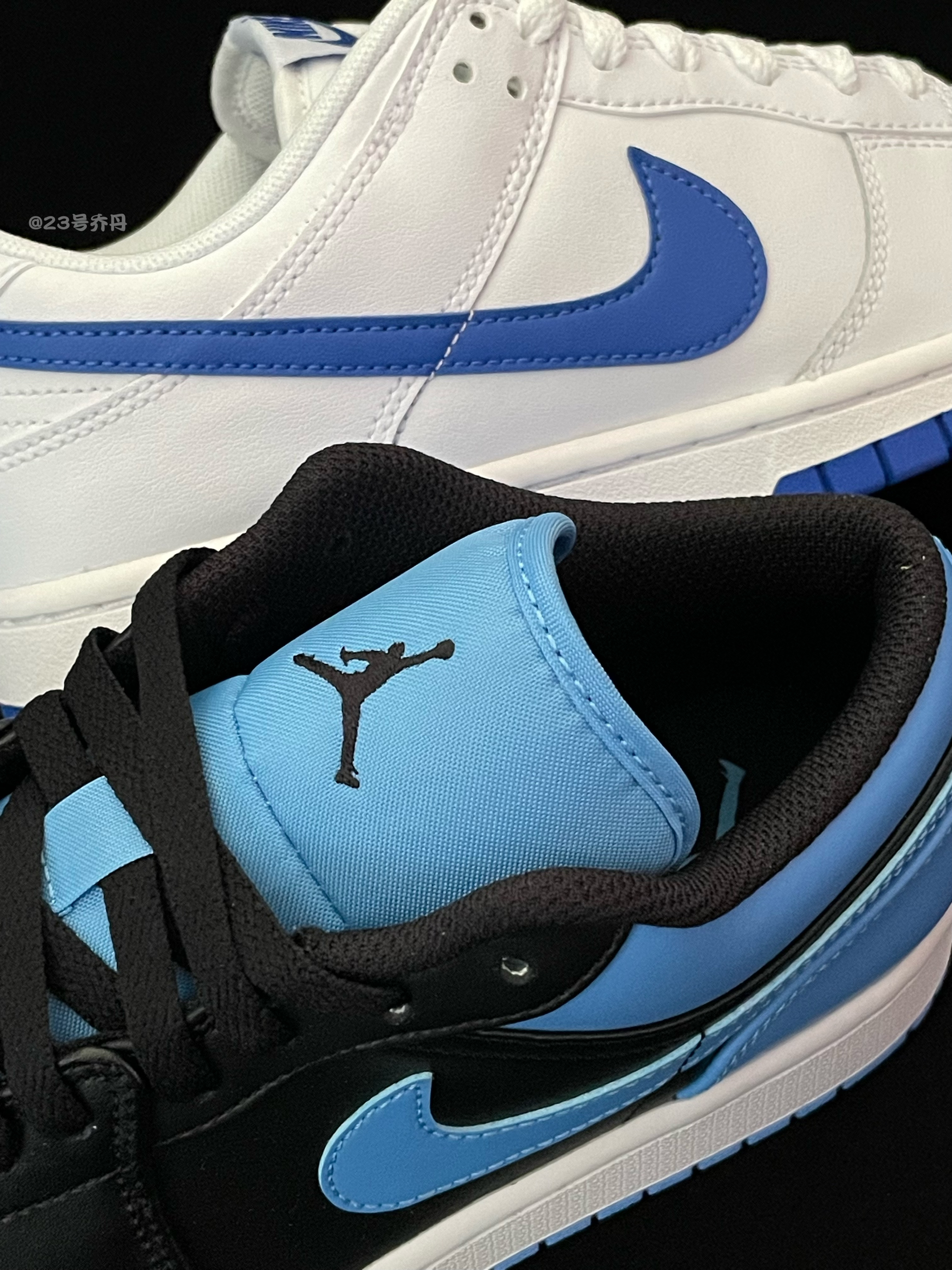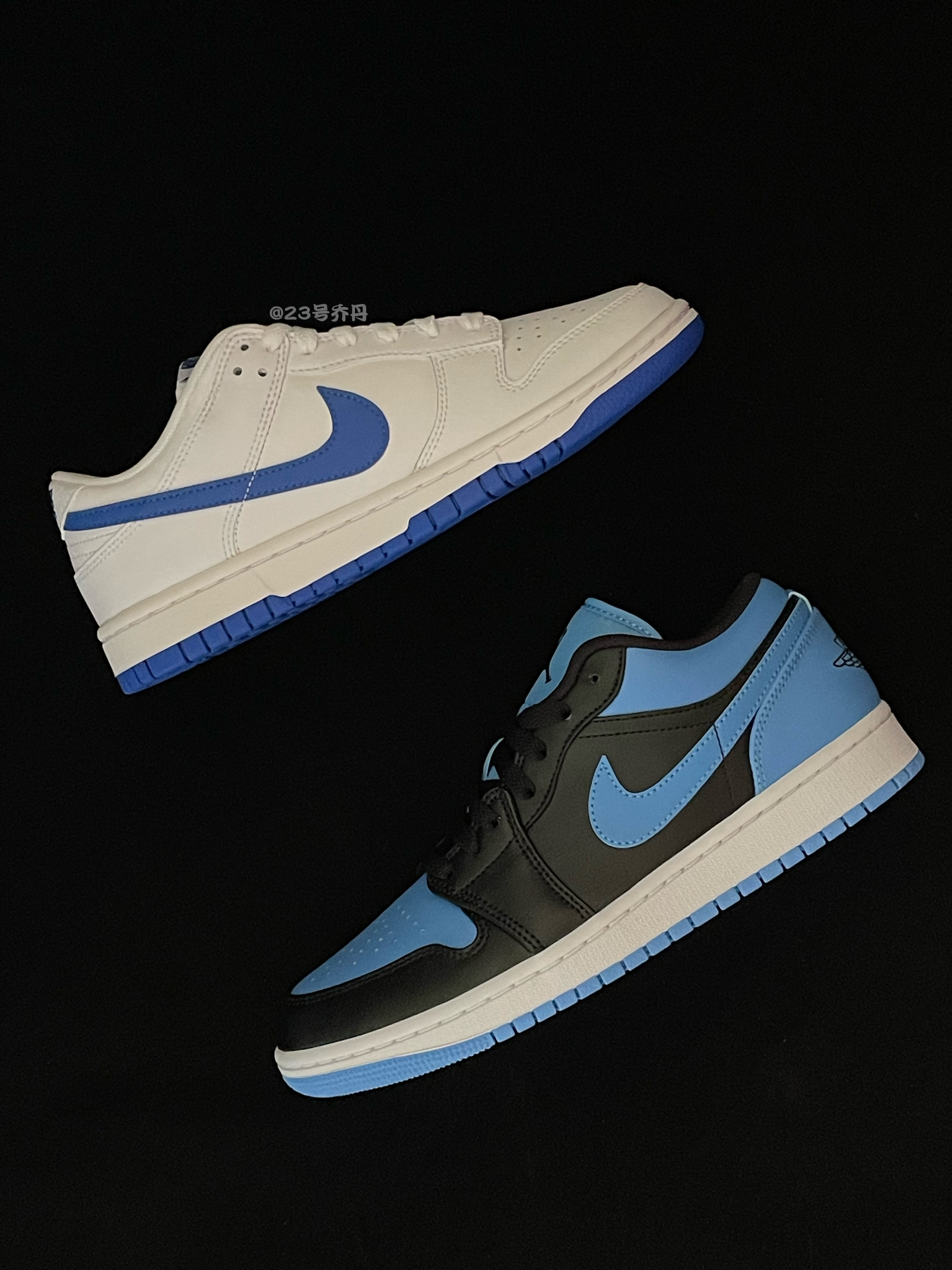 今天给大家分享两双颜值不错的蓝色系板鞋 Dunk Low『蓝白』&Air Jordan 1 Low『蓝黑』 鞋款分别采用了白蓝和黑蓝白进行搭配 鞋面均选用了易于打理的光滑皮革材质 鞋头密集的透气孔保证了良好的透气性 鞋舌与鞋尾均设计有品牌Logo刺绣图案 白色的中底和蓝色的多纹路橡胶大底收尾 整体来说这两双板鞋👟颜值都挺不错的 配色经典 适合日常休闲或通勤 『蓝白』配色更为清爽 『蓝黑』配色则更为...