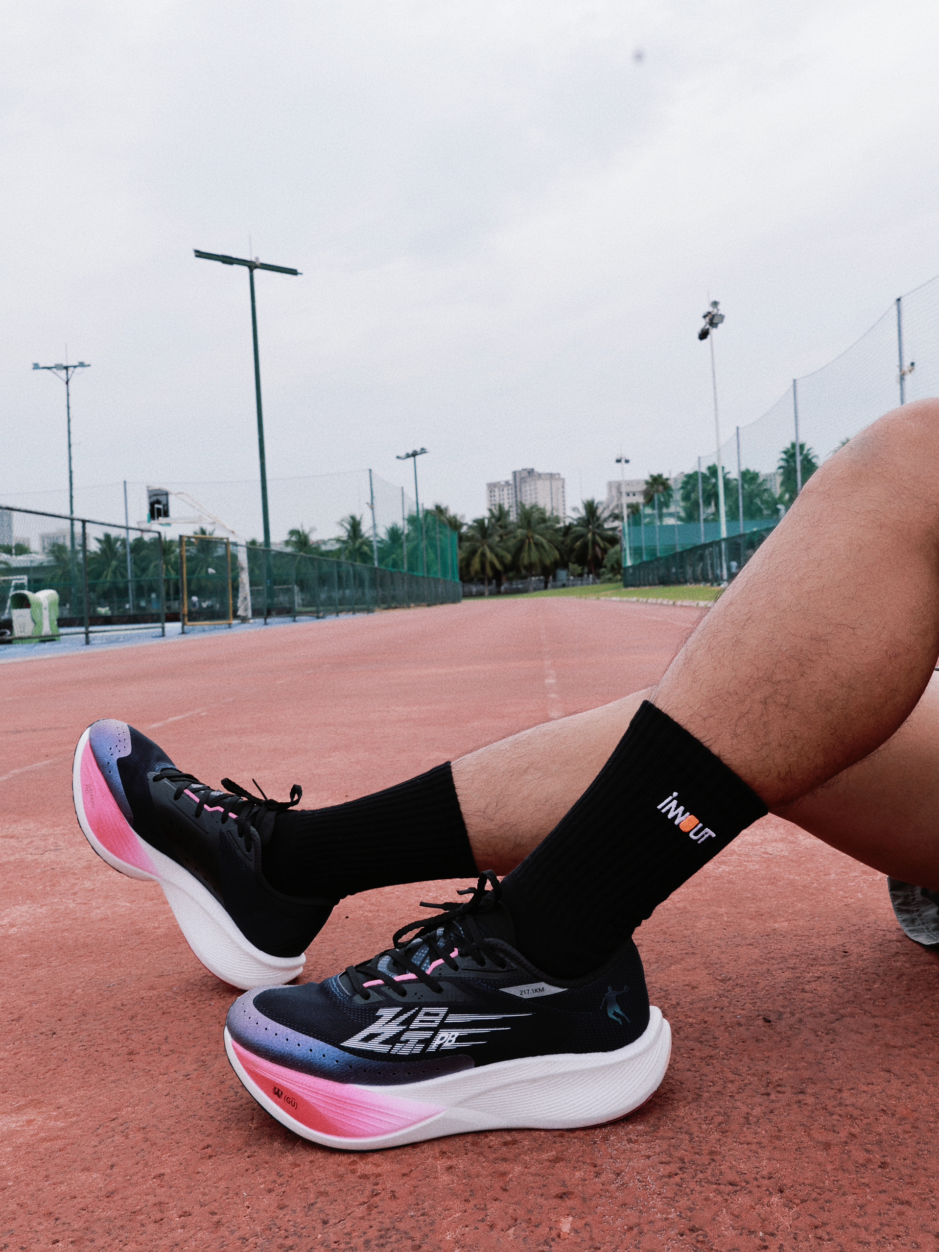 🎨配色灵感:这双比赛日配色的飞影PB 3.0主基调黑色来源于动漫《强风吹拂》中宽政大学比赛时穿着的黑红色队服。鞋垫上也印有强风吹拂字样,点出主题。 🧶鞋面:鞋面采用轻量化TPEE纱线鞋面,鞋头处的加固涂层延伸至足弓外侧,提升鞋面强度,一圈的透气孔肉眼可见,透气性能非常不错!鞋舌没有多余的衬垫,鞋舌材料本身和鞋带部分的设计,一定程度上避免了系带后的压迫感。 💭缓震:巭PRO双密度中底,前掌加厚...