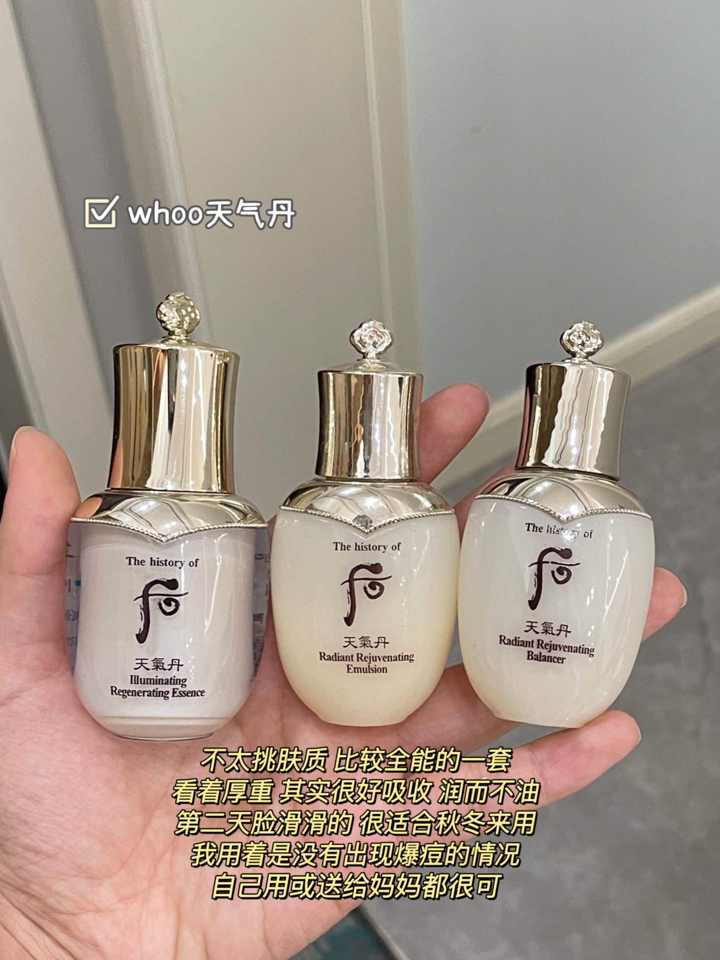 1⃣️欧惠极致水乳 2⃣️纪梵希墨藻黑金精华水➕纪梵希卸妆乳 3⃣️瑷尔博士益生菌水乳➕洁颜蜜 4⃣️苏秘惊喜水分水乳 5⃣️skll神仙水➕兰蔻极光水➕skll大红瓶面霜 6⃣️whoo水妍 7⃣️whoo天气丹 8⃣️whoo拱辰享 9⃣️雪花秀滋阴水乳