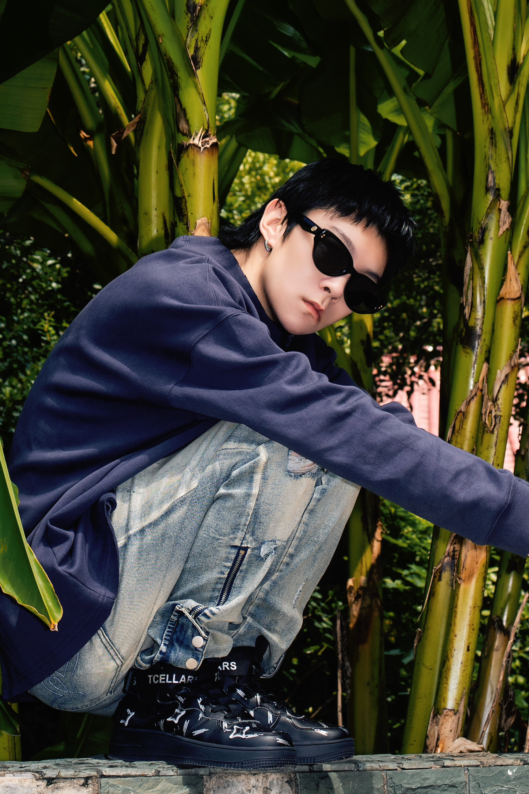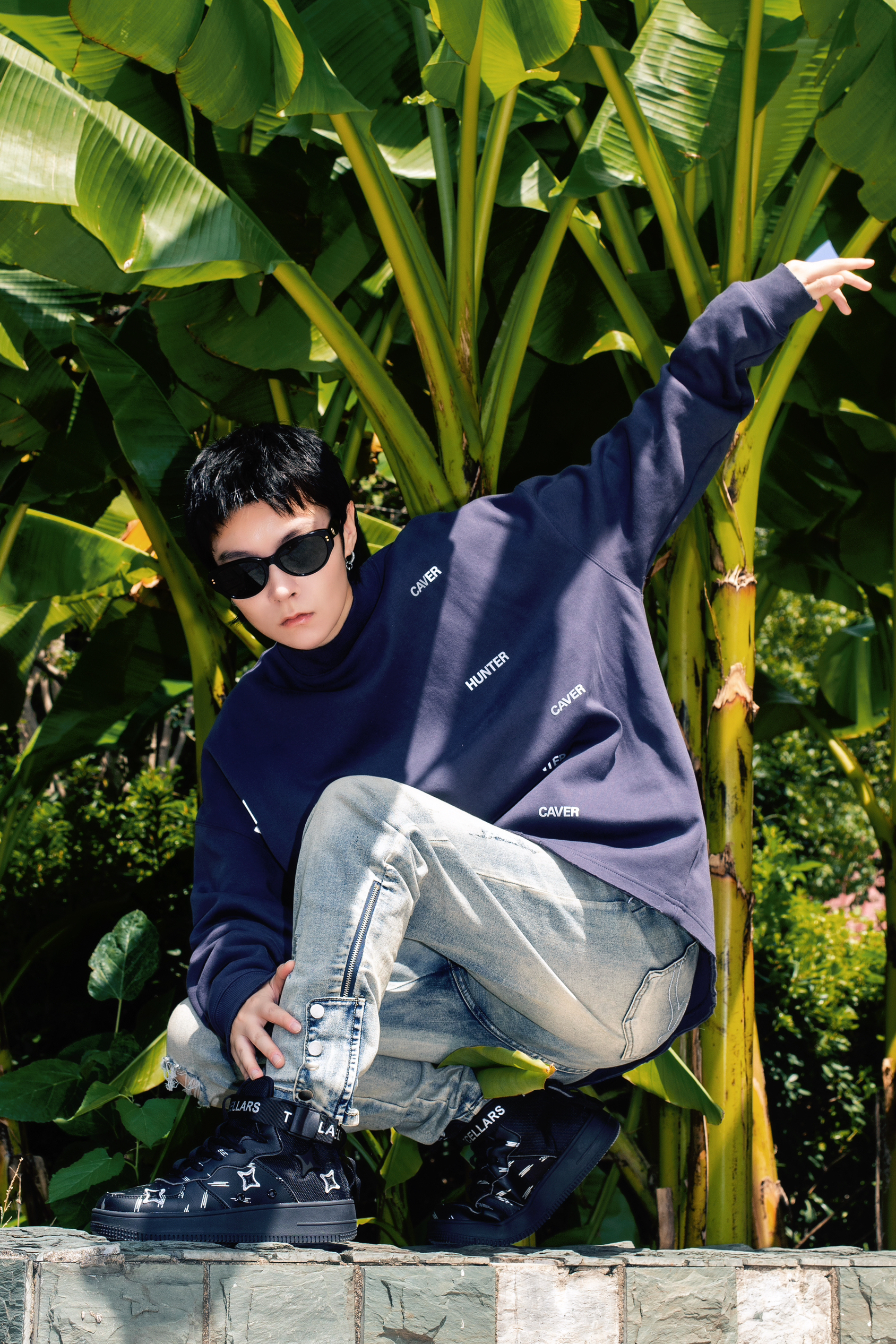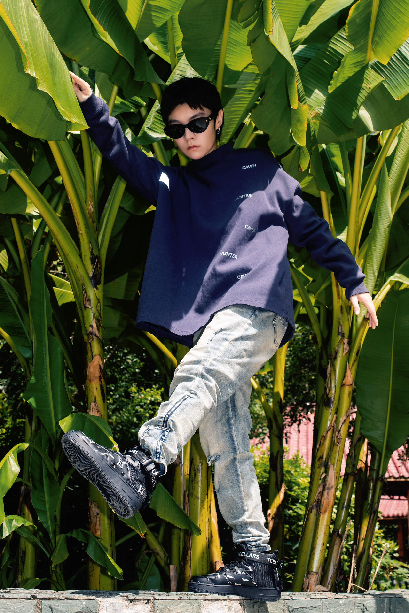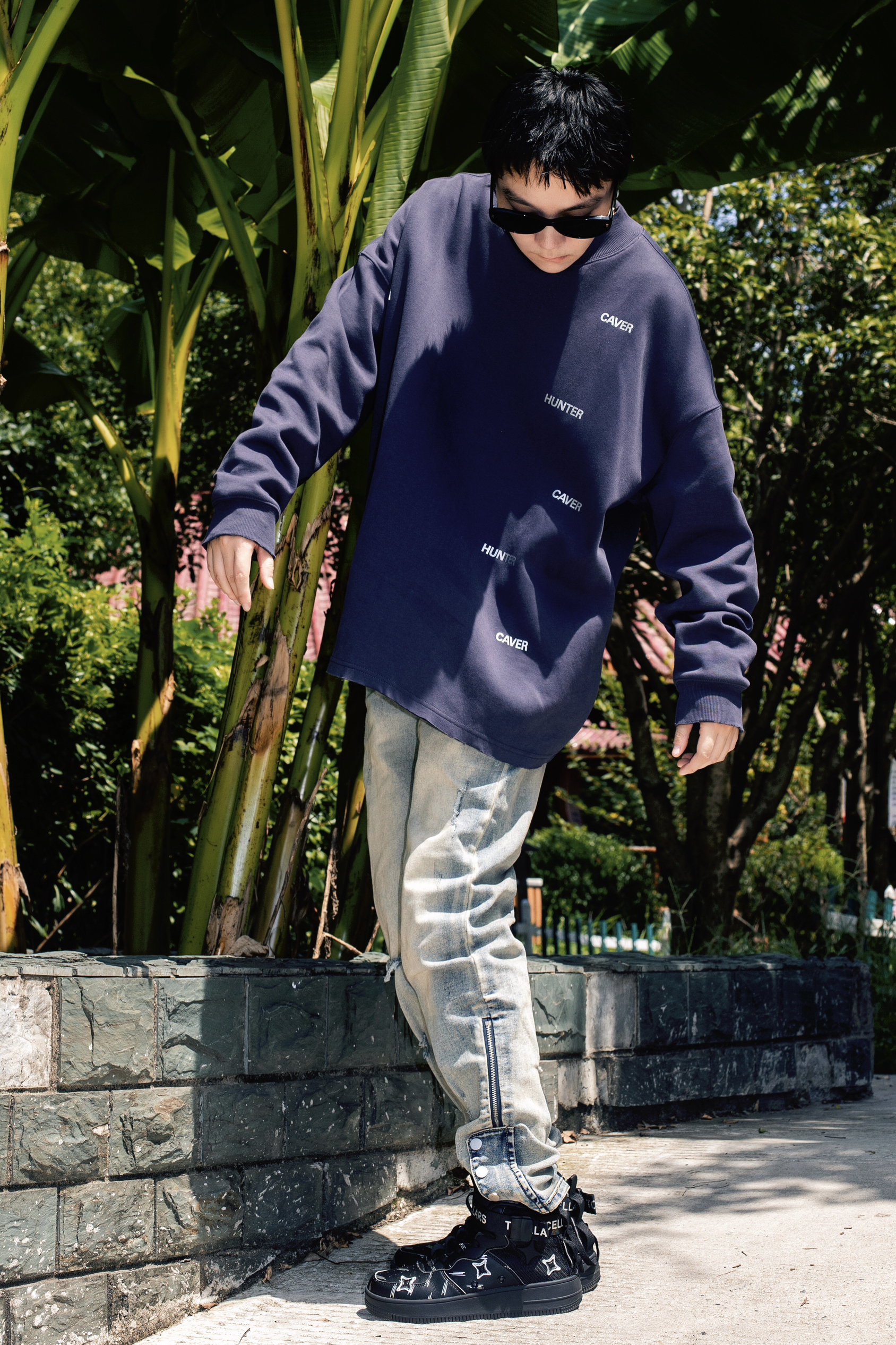 今年美式街头风很火 入秋了就分享秋季美式高街风穿搭公式 穿搭指南: 上身一件蓝灰色长袖T恤 小领口的版型设计自带高级感 下身搭配一条复古做旧牛仔裤 直筒版型和裤腿微喇的设计很高街 上脚一双黑色TCELLARS休闲板鞋 中帮设计很适合即将到来的秋冬 以黑色为主色调搭配银白色星星图案很玩味 后跟处还有绑带设计增加了街头机能感 整套T恤牛仔配板鞋 美式高级风轻松拿捏