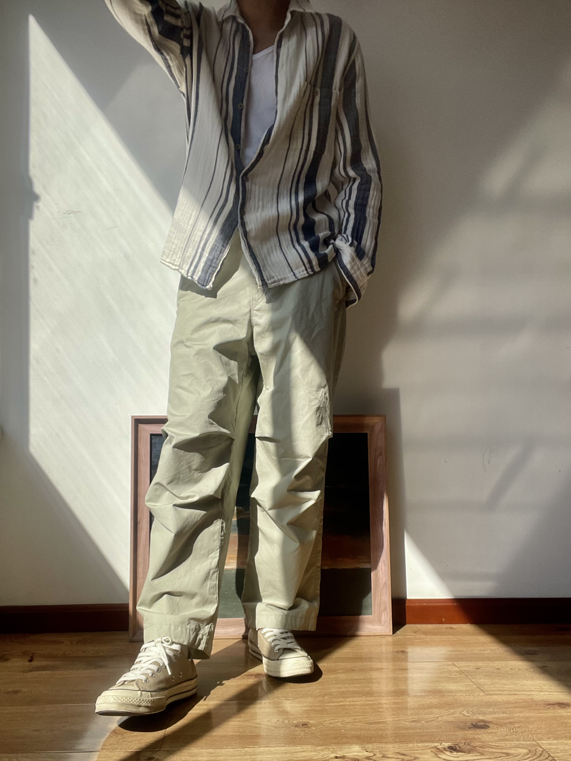 穿搭: 初秋真的喜欢穿休闲衬衫 这个季节也真的非常适合穿休闲衬衫 搭配伞兵裤 真的无敌舒适 细节: 裤子要宽松版型 今日穿搭打卡 夏日休闲风OOTD