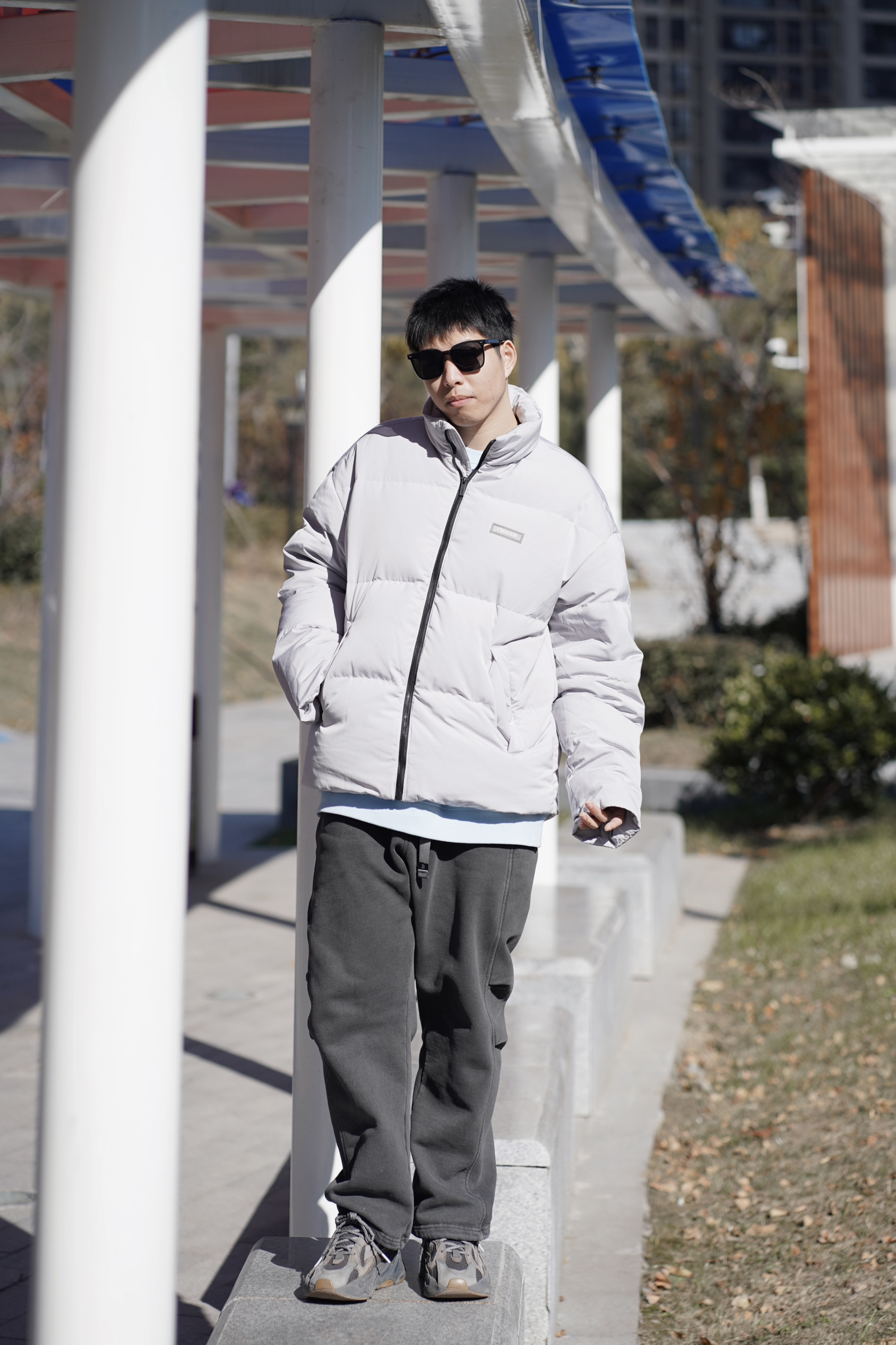 大家天冷了都穿些什么呢 - 🔘浅灰色的羽绒服搭配上深灰色卫裤这效果真的是 很nice呢 羽绒服和卫裤真的是冬天的御寒神器 🔘一浅一深这层次感是不是马上也就来了呢 看上去不单调 穿起来也好看真的是绝绝子 - 衣服:chinism 裤子:hkol 鞋子:yeezy