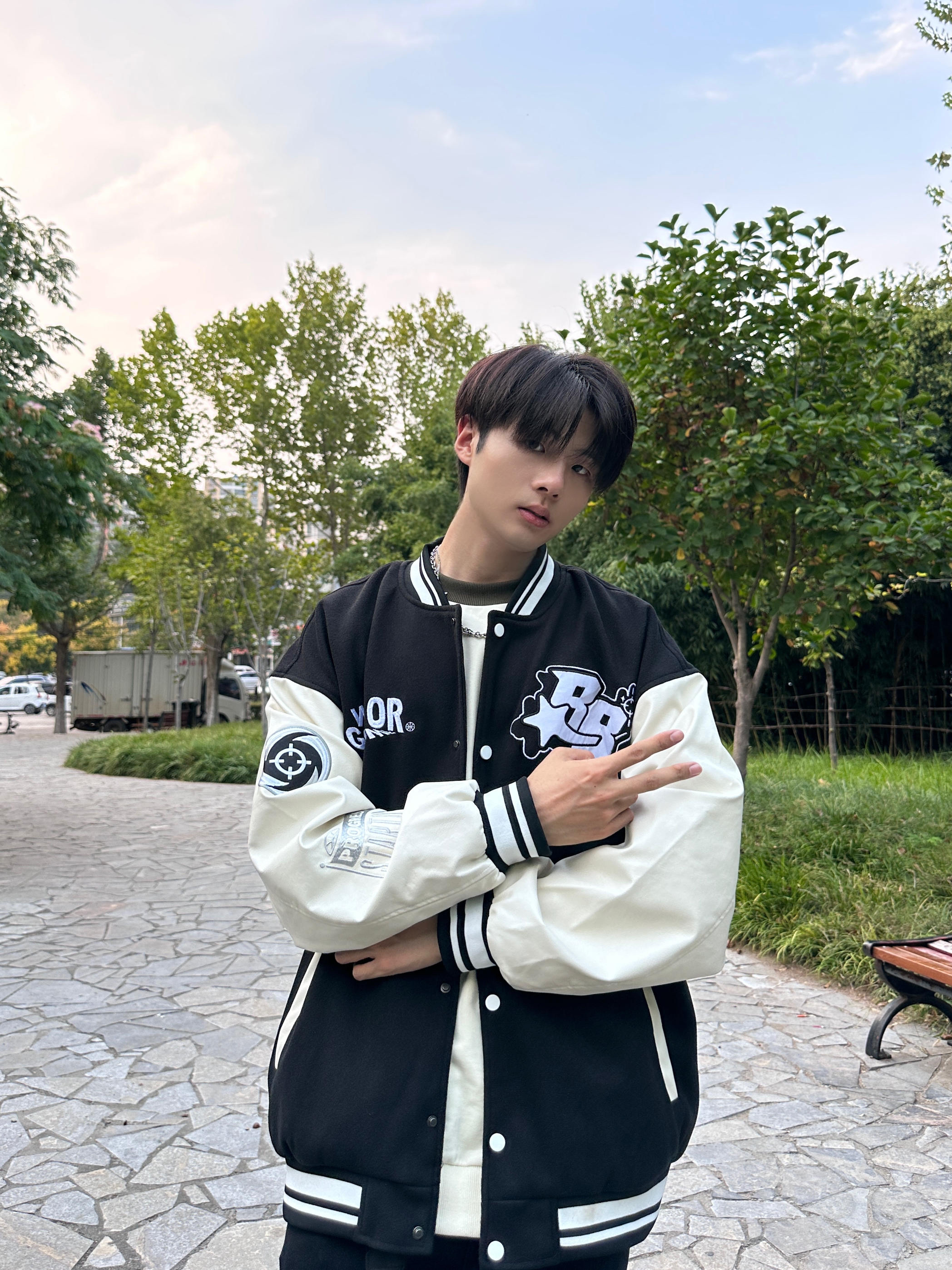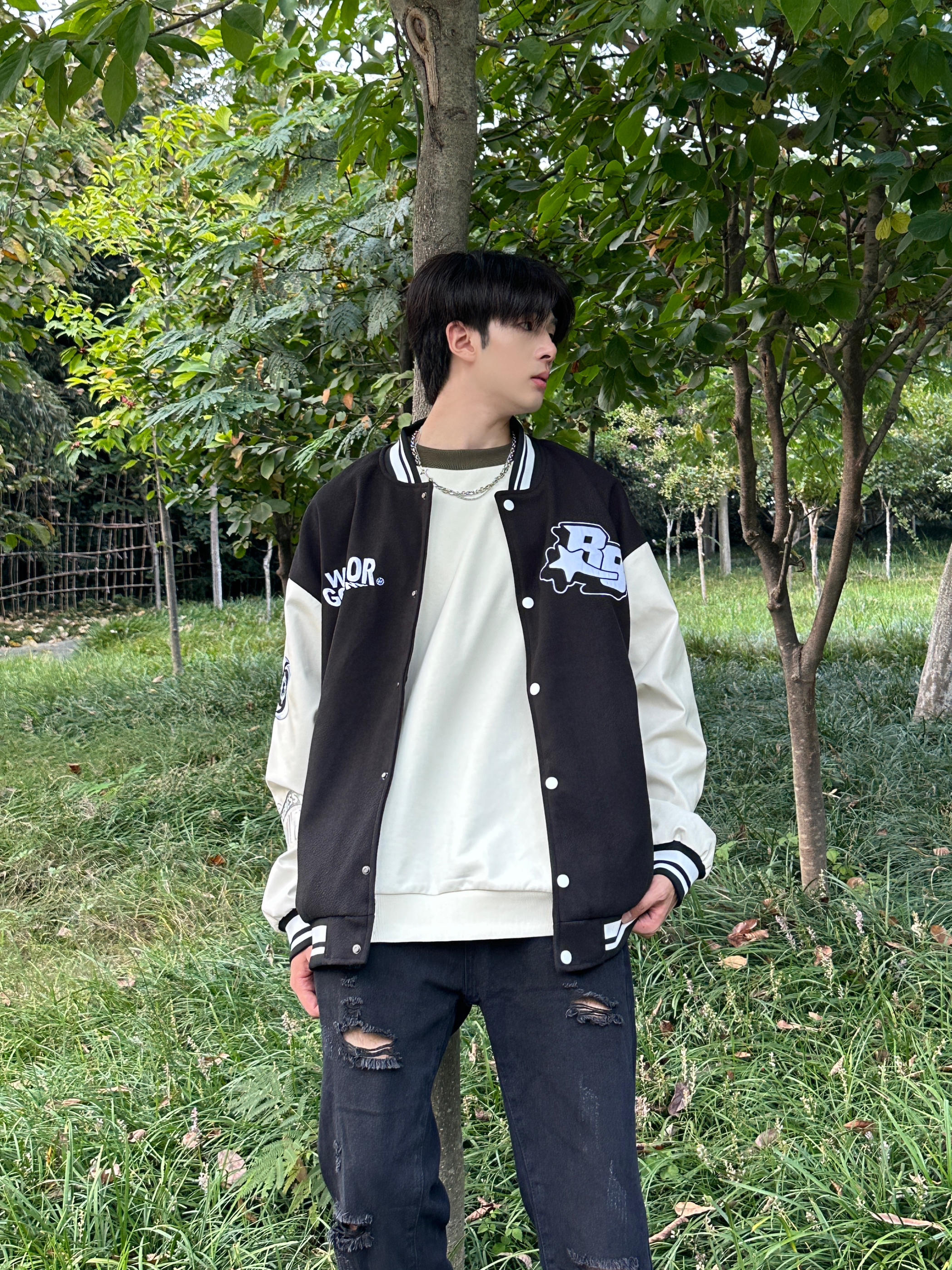 棒球服真的太帅啦!百搭不挑人 平时随便穿拿来当外套都可以 今天搭配了一条破洞牛仔裤 真的非常不错👍 开学就这么穿真的炸出街啦吼吼~