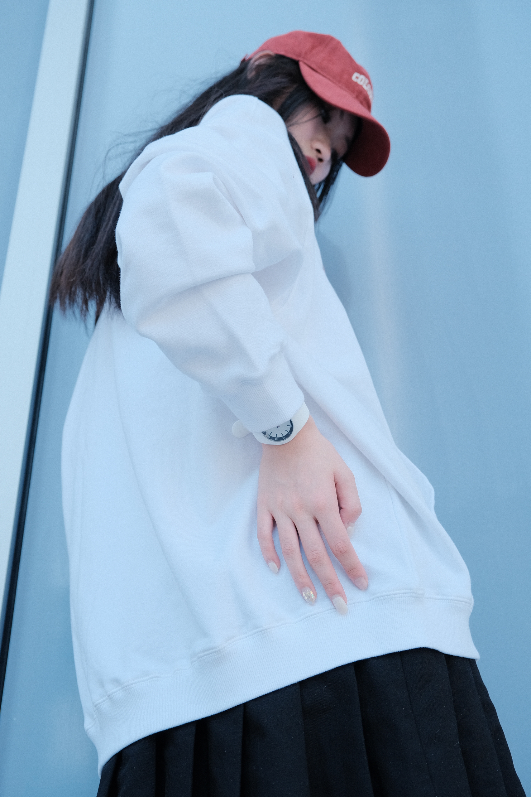 身高|体重:176/52 🧍♂️ 穿搭风格:学生嘻哈风 👔 上衣:白色卫衣 🎒配饰:fila手表⌚️