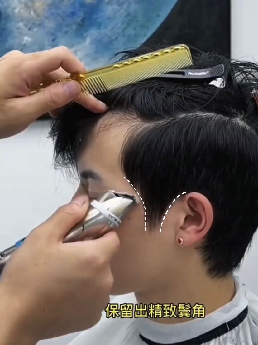 韩式纹理慼微分碎盖㊙️完美解決男士发型痛点 韩式纹理微分修剪的注意事项❗️ 1️⃣两侧预留 1-2cm的长度。很多时候剪完觉得脸变大了 大部分都是因为两边被剪的太短 导致脸部的轮廓线被虚化 从而导致显脸大! 2️⃣刘海的长度在眉毛到眼角之间 可以更好的修饰太阳穴 像太阳穴凹陷 颧骨突出的男生 韩式纹理微分可以起到很好的修饰效果! 3️⃣头顶长度6-8cm 左右 适当调整发量 剪出纹理感 头发不要太...