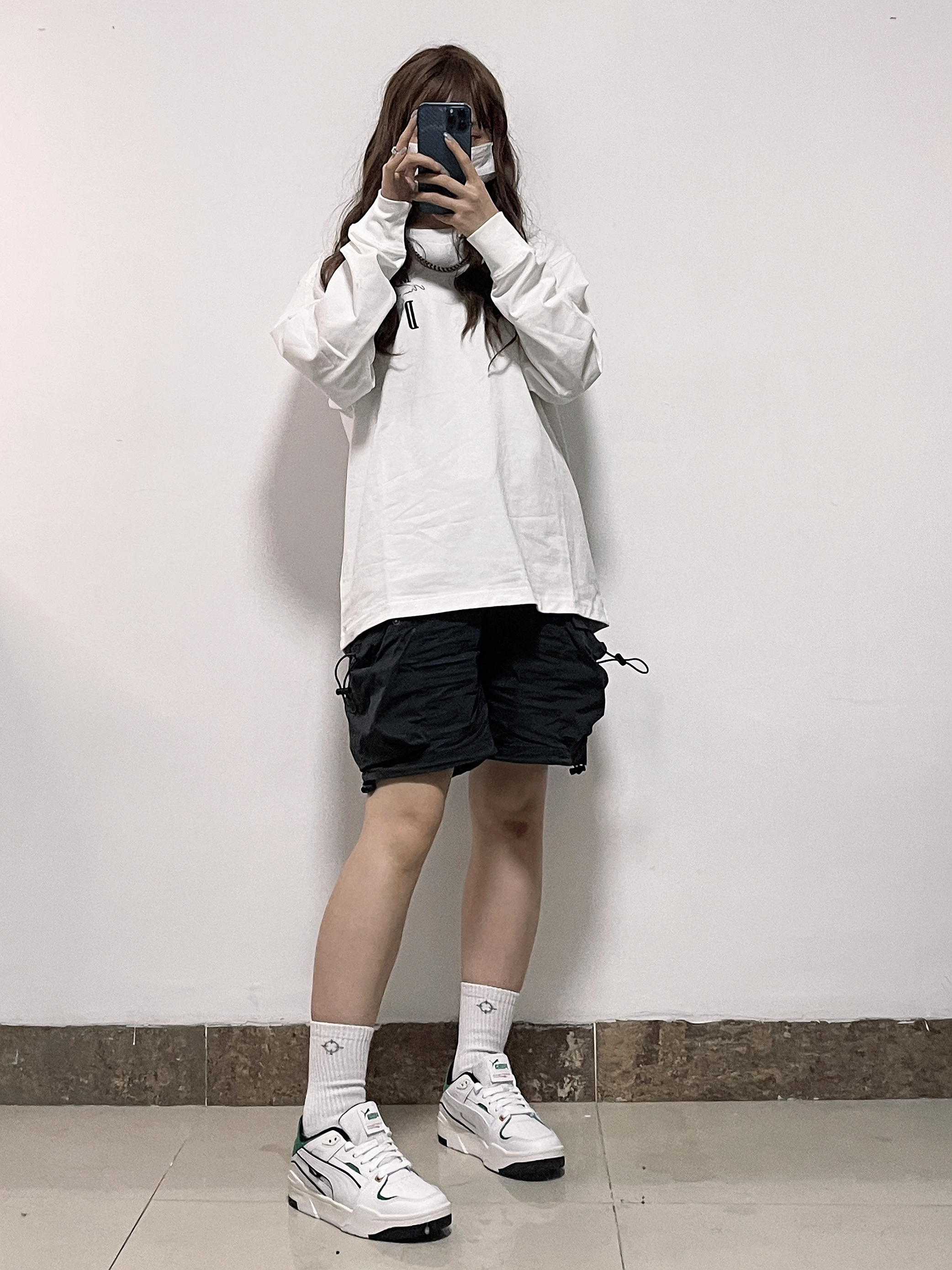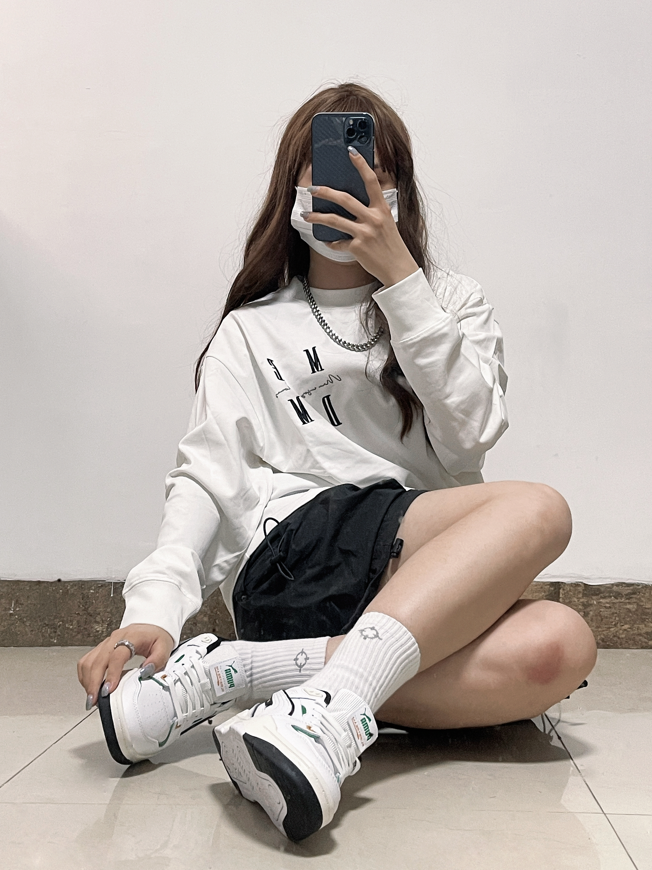 无论四季最耐看还是黑白搭配了! 永远不会出错的黑白Look,秋天穿舒服又耐看! 今天选的是MEDM基础长袖,上身自带松弛感,而且小Logo图案更加有特点!想要穿搭更加有看点可以加一下古巴项链或者戒指! 搭配了一对PUMA白绿小板鞋,多种材质的拼接更加有参差感!正常码购入即可,欢迎在评论区留言,关注我了解更多球鞋。