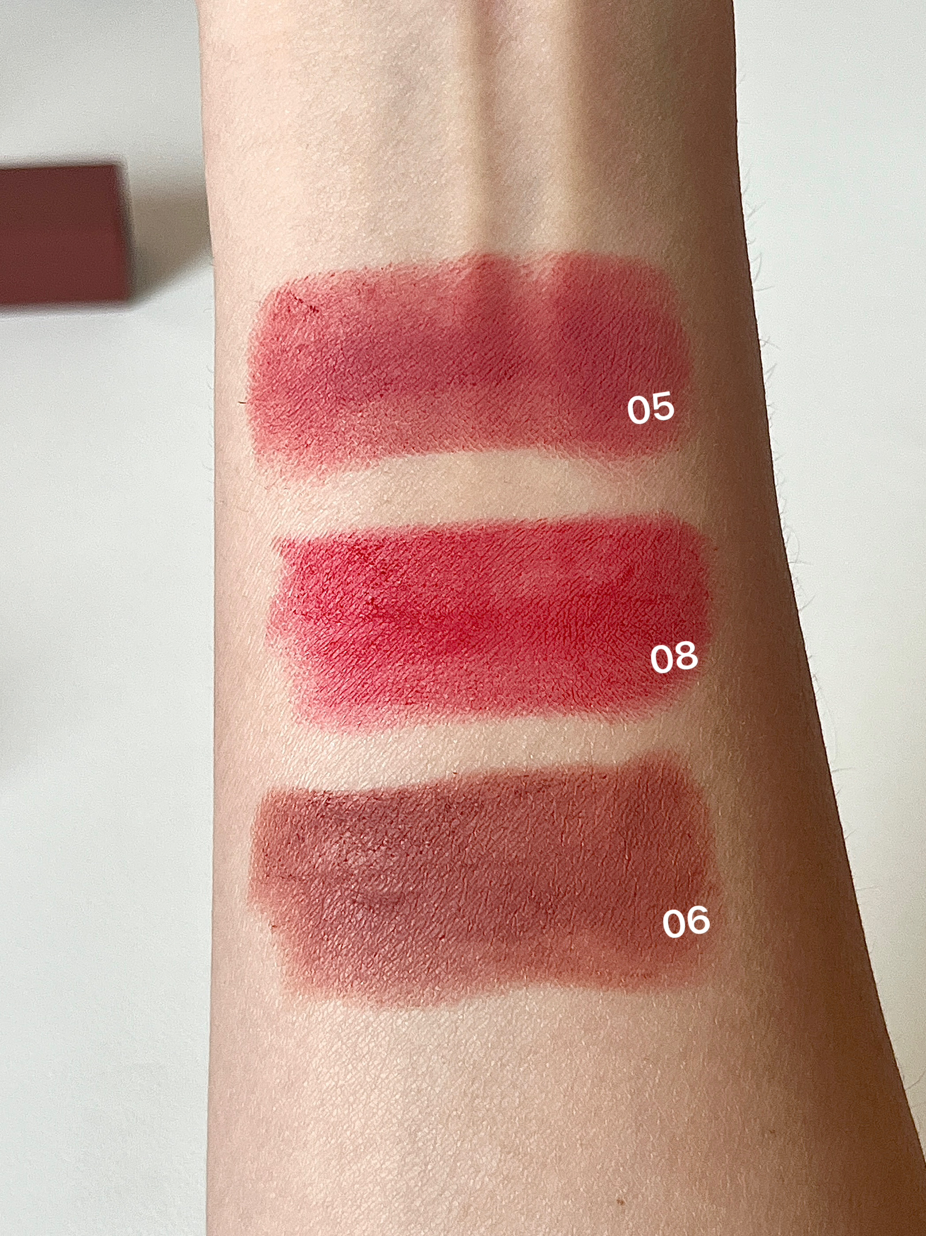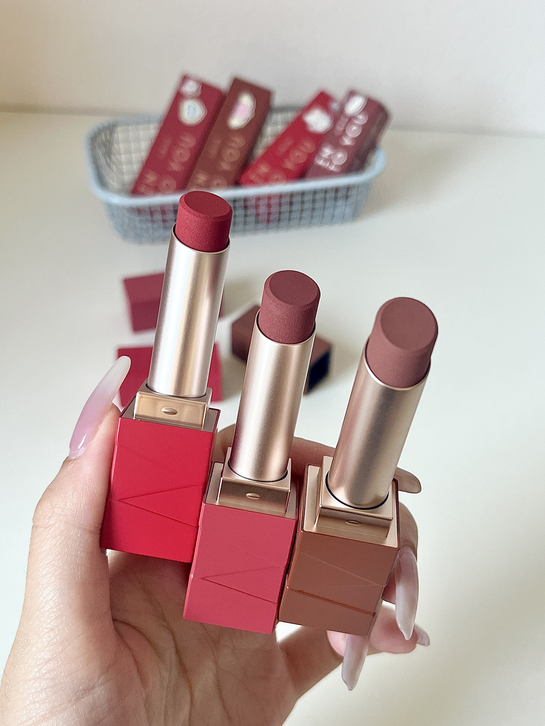 拜托!!秋冬季节尊滴会偏爱哑光口红 简约的方管外观 有种韩系的高级感! 轻薄丝滑的质地 涂着一点也不会干💧 而且显色度也hin好!素颜状态也能涂~ 这三支颜色我都好喜欢啊!! 已经开始美美期待秋冬季节的来临咯✌️