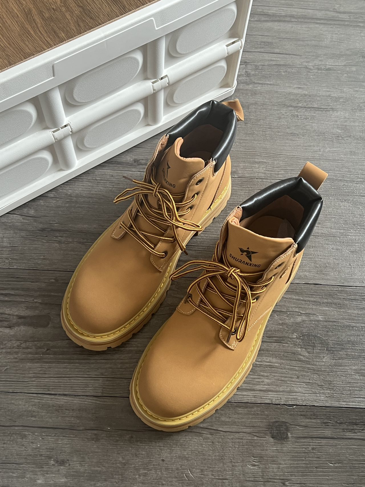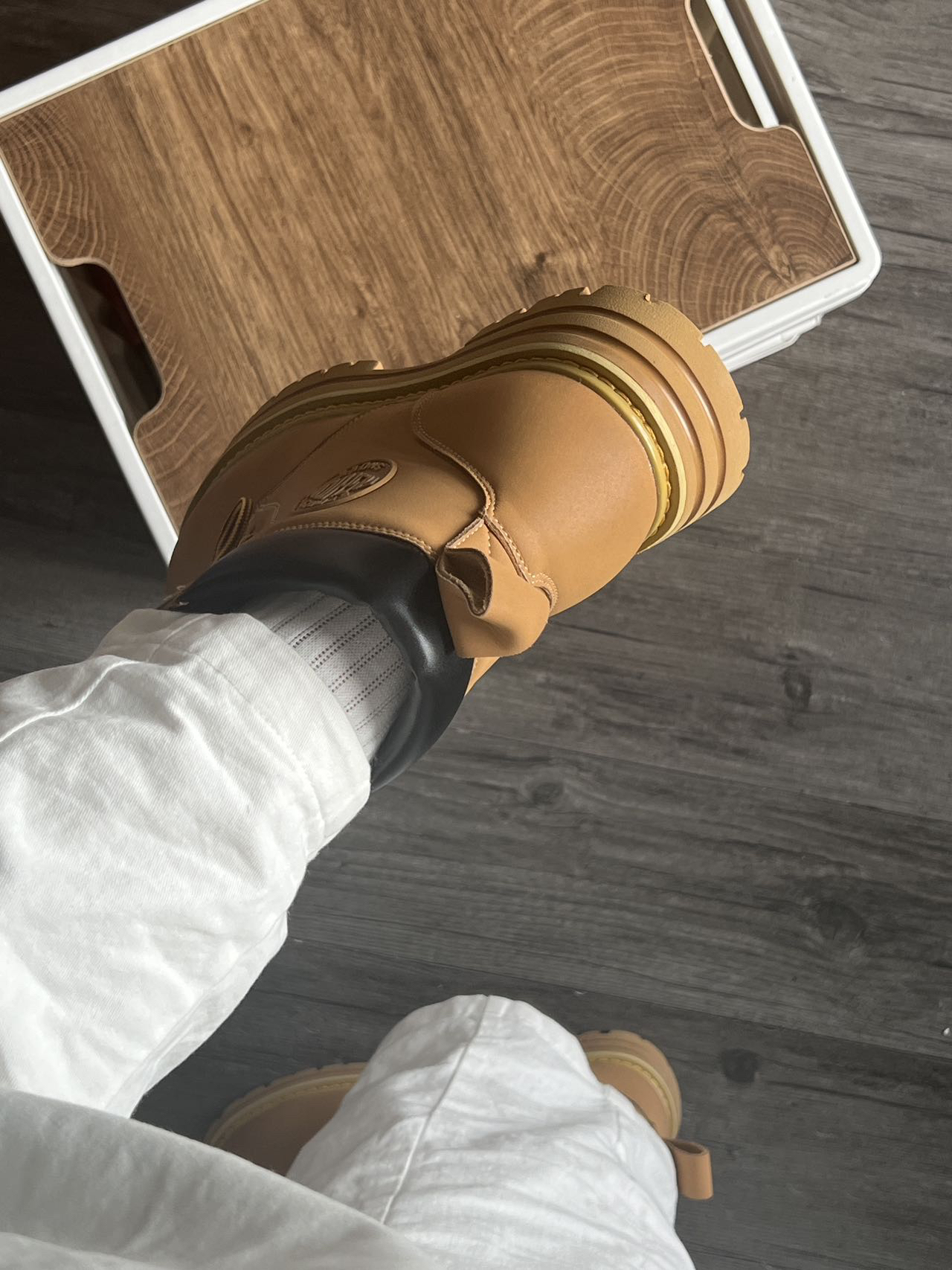 好家伙🌟谁能拒绝一双大黄靴啊❓ 上脚效果还挺满意的…很显高! 质量和版型都很nice🉑️ 搭配美式穿搭很好看啊! 秋冬天真的很需要这样一双百搭的鞋子✨ 保暖效果也很不错,不用怕冻jio了! 鞋子尺码很正,穿厚袜子可以拍大一码哦~