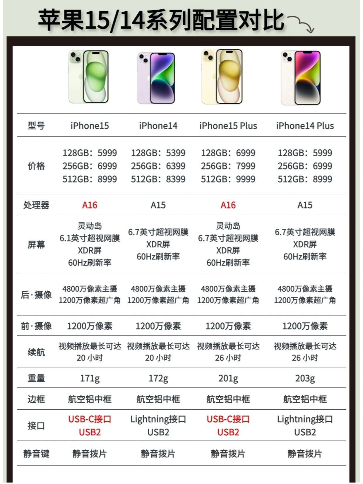 关于苹果发布会相信很多兄弟👬们都没看 既然没看,那我给大家讲讲 1、新机采用A16处理器,pro版本A17,cpu这块没的说一直都是遥遥领先,而且增加了高刷,高刷意味着更流畅更顺畅。 2、充电头改为c口,全系列通用,虽说是强制要求👿 3、拍照方面镜头4800万主摄,使用了潜望式长焦镜头。 4、全系灵动岛,如果想尝试新款又预算不够的朋友们也可以购买📱华为 Mate 60。 了解这么多相信你也不会买...