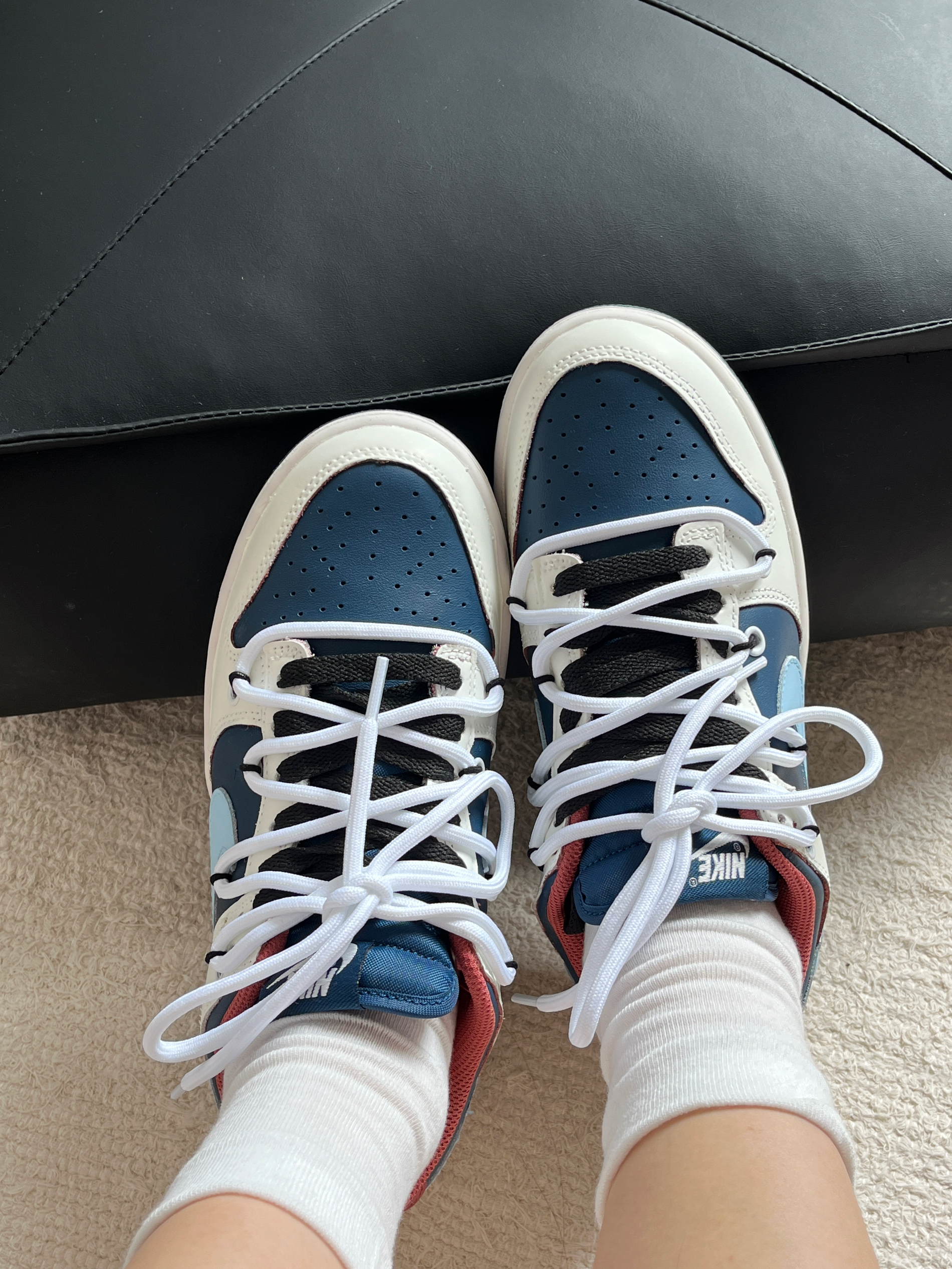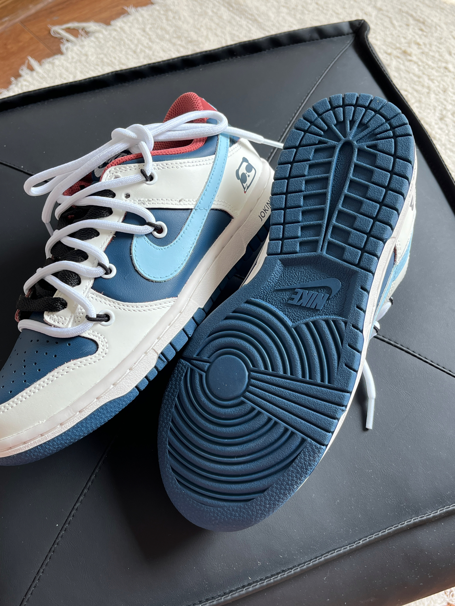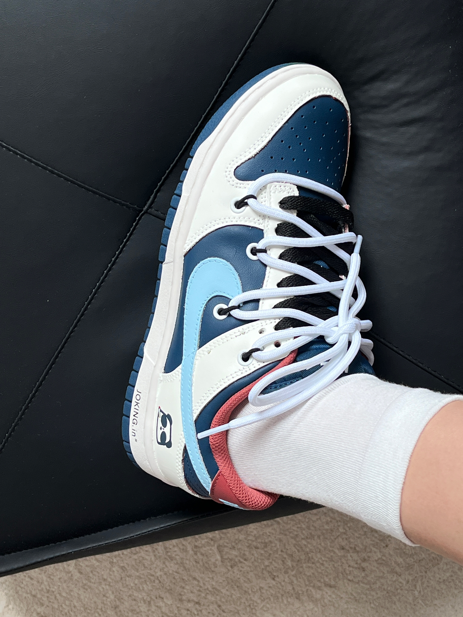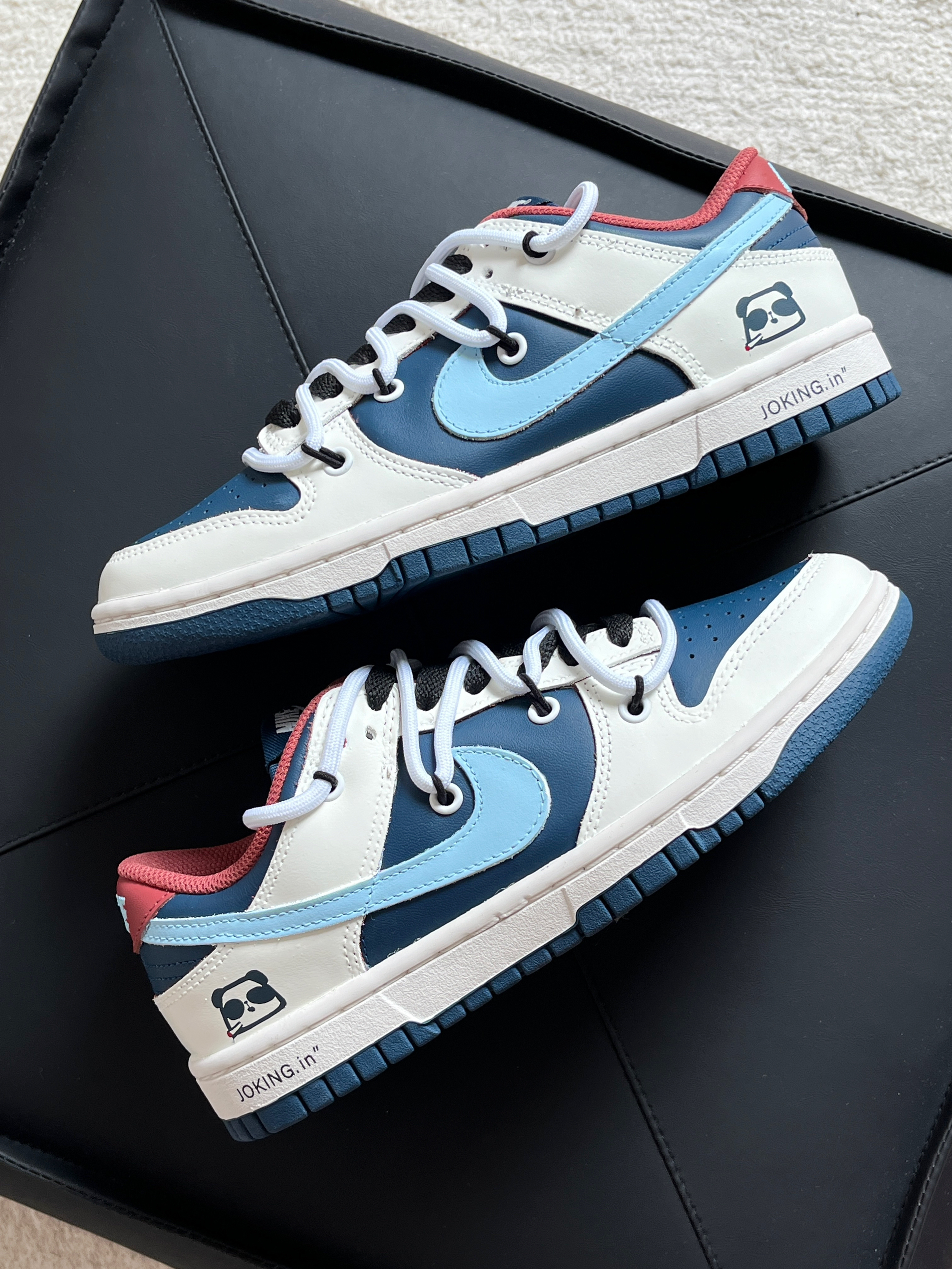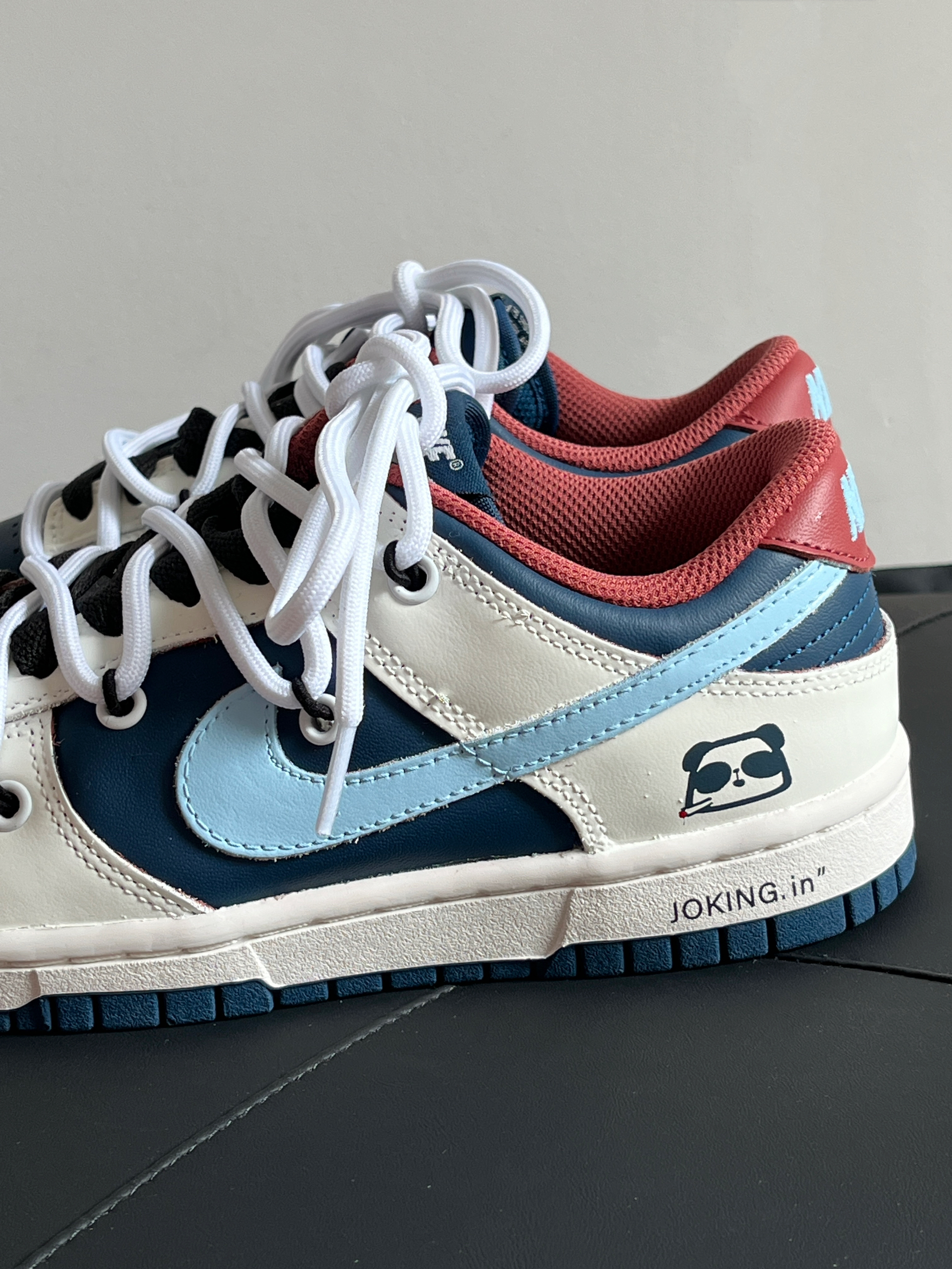 红蓝配色真的眼前一亮唉❤️💙 很有复古的感觉! 后跟的小熊猫也是亮点 上脚的感觉也还可以 不磨脚 按照正常尺码入就好!