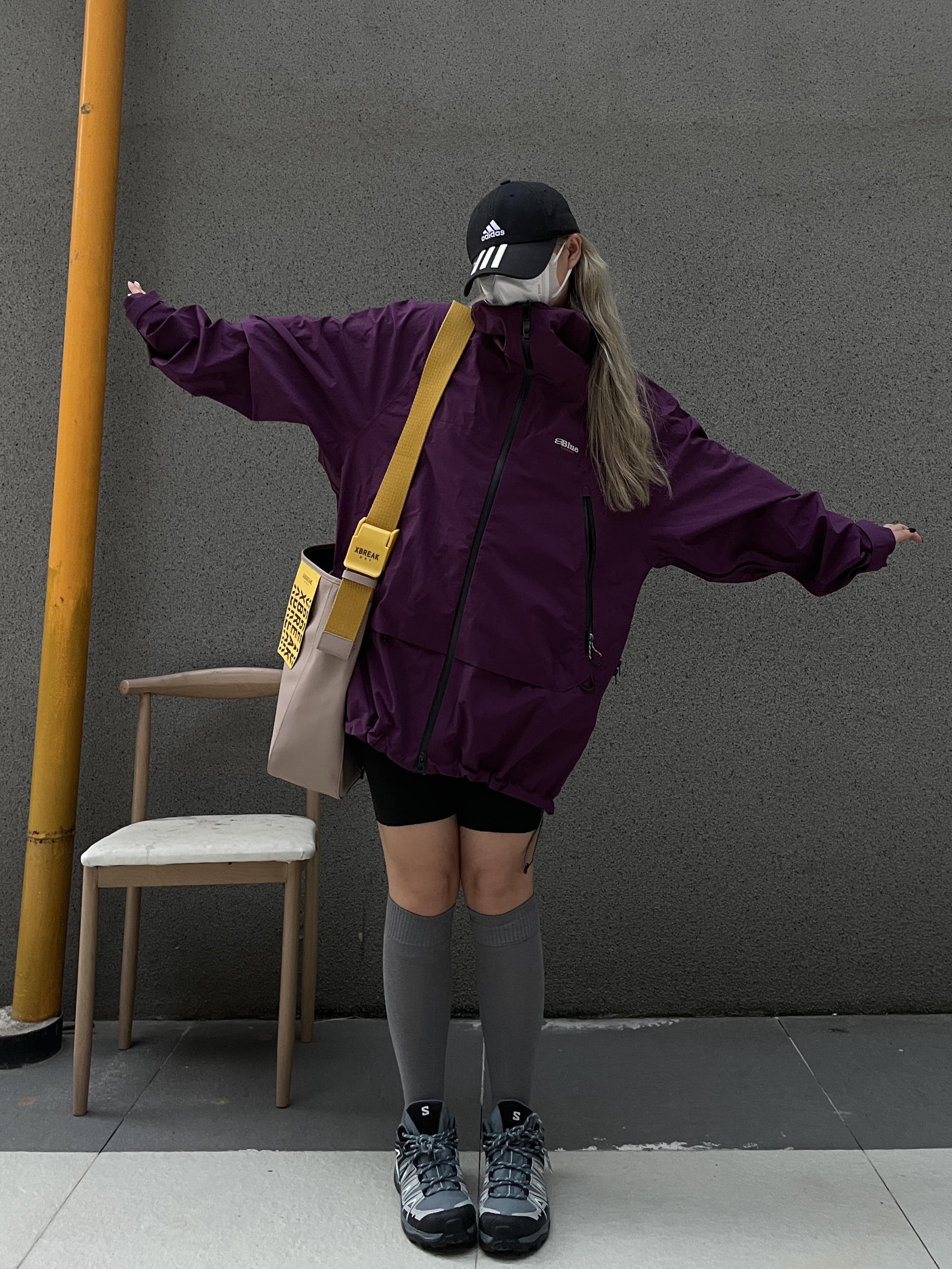 ☂️ 今年紫色真的是大🔥的颜色 各大品牌都主打紫色的单品, 又显白又显瘦又百搭谁能不爱呀! ☂️ 今天嘴子就来分享一套紫色冲锋衣穿搭。 三条杠帽子十葡萄紫连帽冲锋衣十黑色骑行裤 +灰色小腿袜十蓝绿山系跑鞋十卡其色斜挎包 山系女生的秋季低饱和多巴胺 城市户外运动穿搭就好啦~低调独特 连帽冲锋衣和包包的小撞色 使得整套都元气满满的~~~ 身高|体重:158 / 96 🧍♂️ 穿搭风格:山系户...