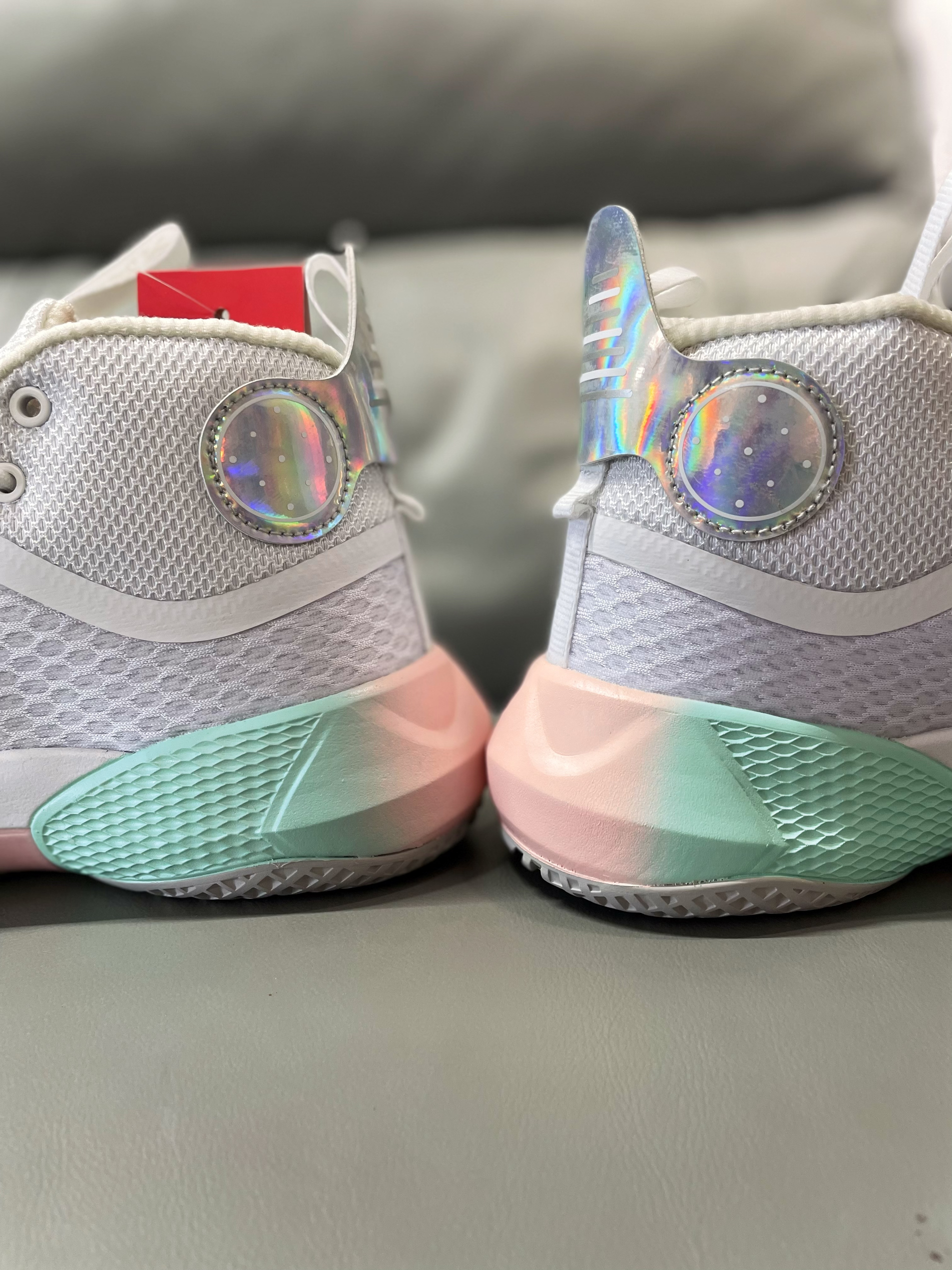 匹克也是有很多明星球员代言的产品,还出了很多价格极低的一些不错的篮球鞋,无论颜值样式,还是价格性能,都是不错的。这款也同样不错。 💖高邦鞋型,鞋面采用了针织物材质,多处热熔胶覆面,透气性不错。足弓处硬质TPU材质,有一定的抗扭效果。泡绵中低,后脚掌采用魔弹科技缓震,回弹性能不错。橡胶外底,多纹路造型,有蝙蝠和蝴蝶花色。白色主色,配合粉绿,冰激淋配色,非常好看。 💞性价比还是不错的,很适合外场的...