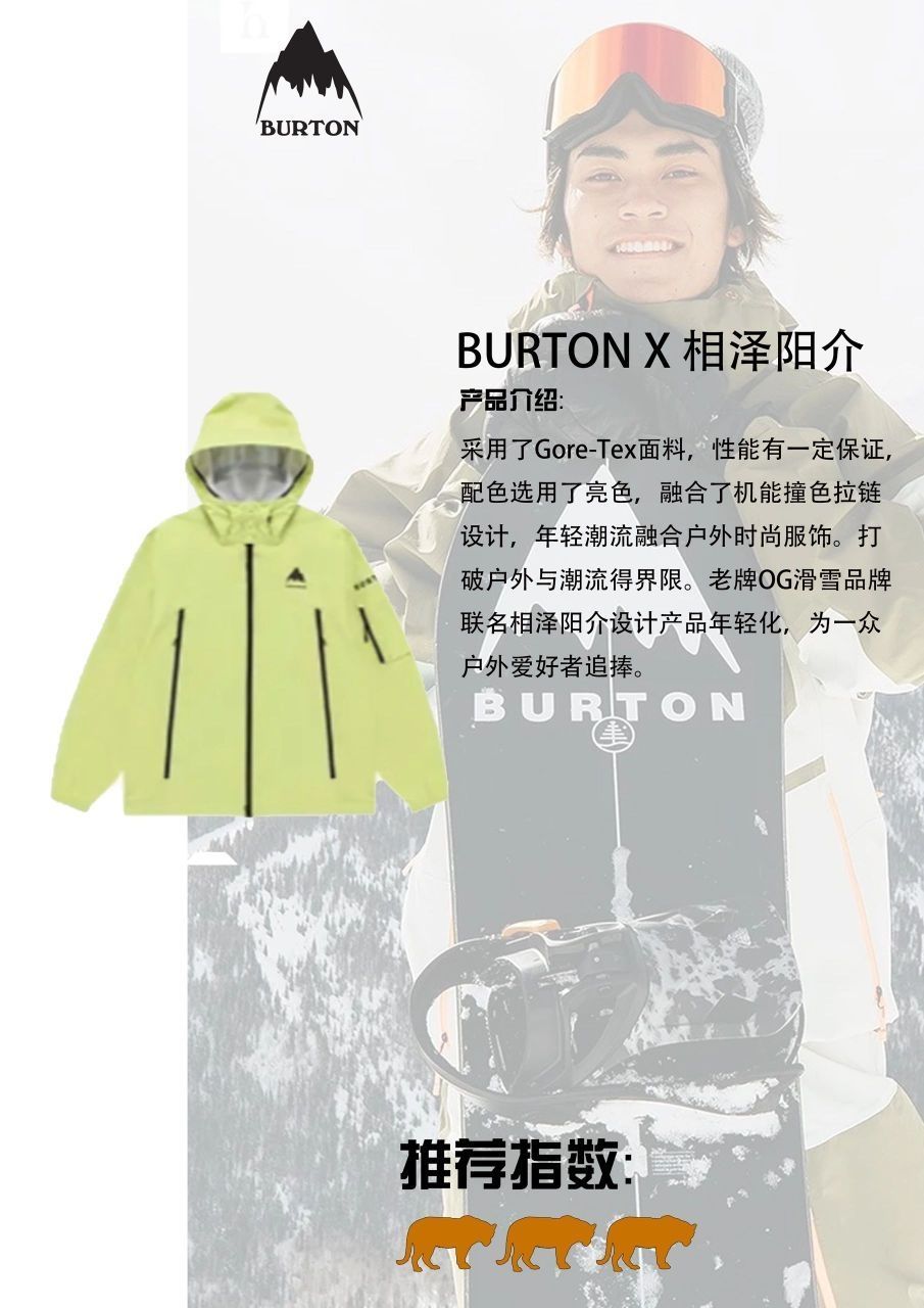 采用了Gore-Tex面料,性能有一定保证,配色选用了亮色,打破户外与潮流得界限。老牌OG滑雪品牌联名相泽阳介设计产品年轻化,为一众户外爱好者追捧。