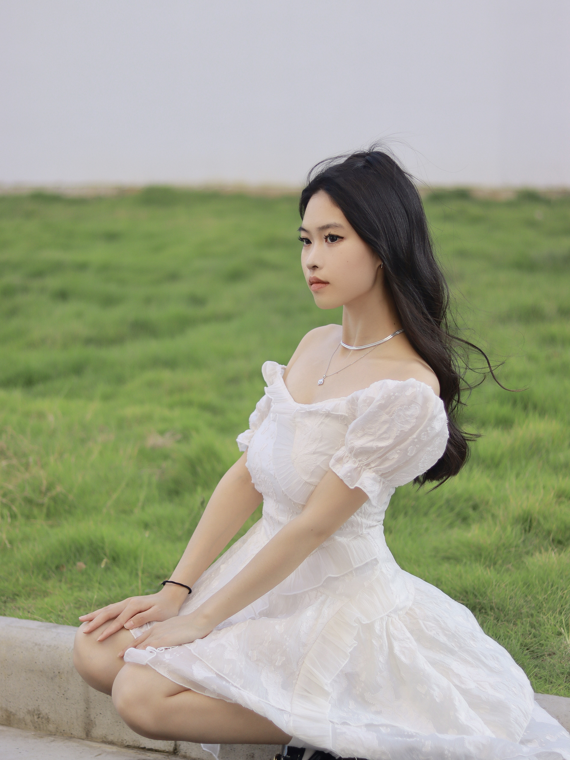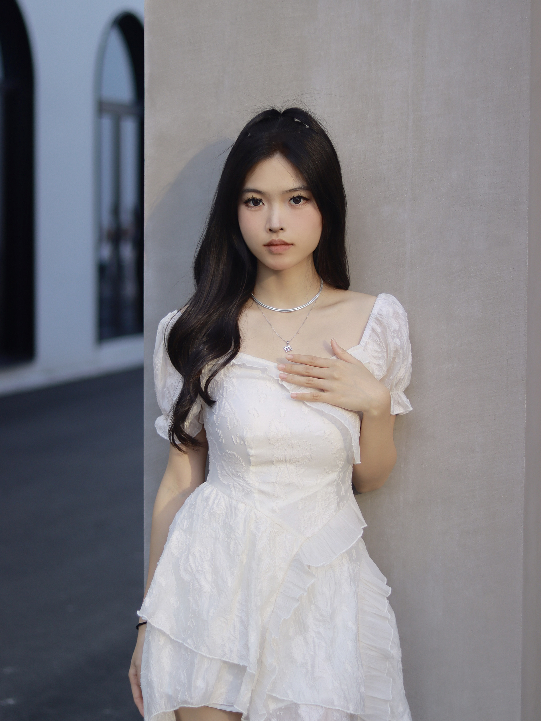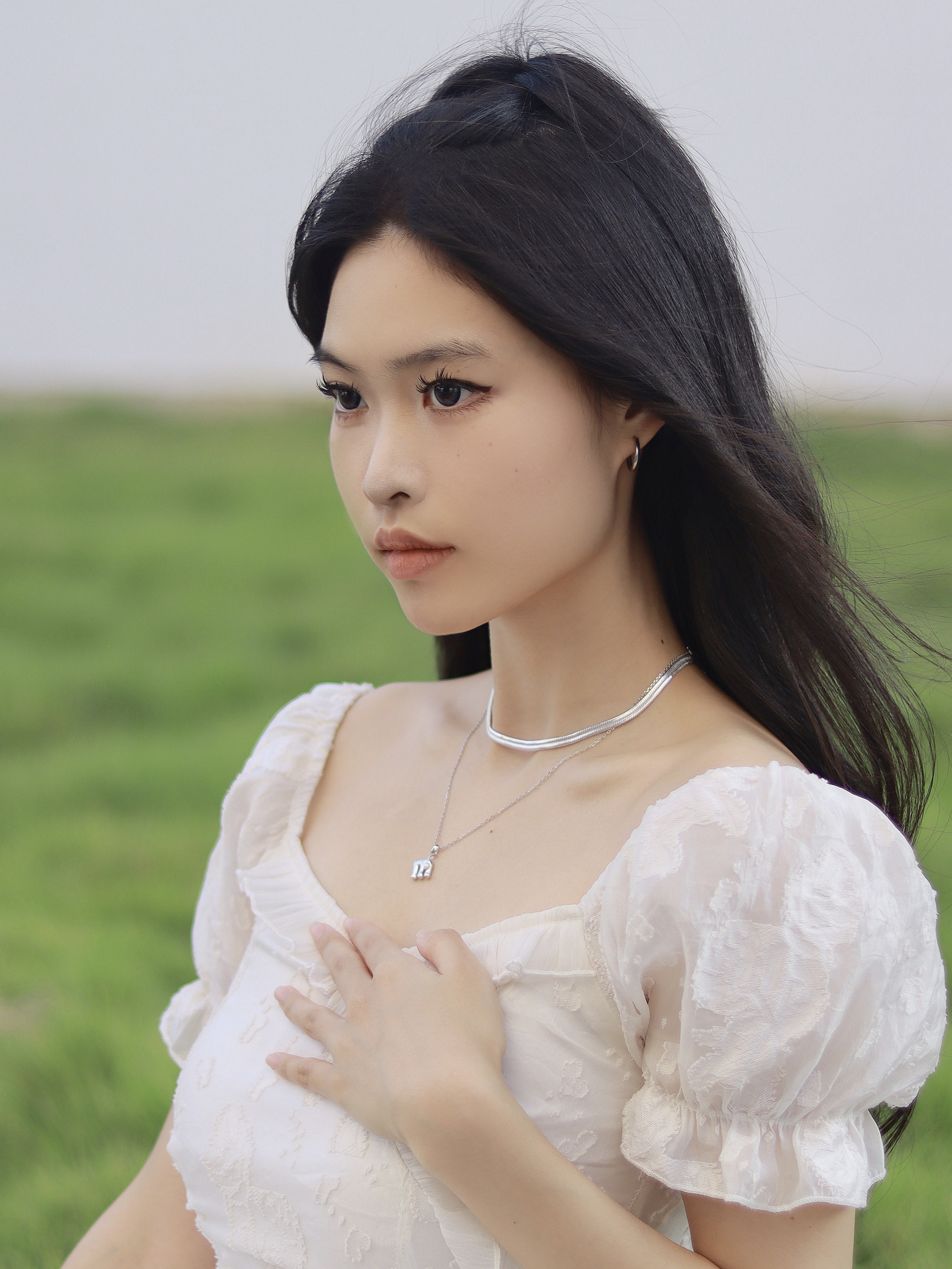 这声白色系穿搭也很适合入秋穿呢~ 搭配了白色的连衣裙,不要太适合秋天啦,不过低领会让脖子上看起来空空的~搭配了一条ARSIS的项链,给穿搭加分! 我选择的是印记系列26字母项链当中的字母M,26个字母总有一个字母是最特别的。小众设计师品牌不易撞款,高级又有辨识度。每一个字母都镶嵌了一颗小巧的贝珠,设计感很棒!