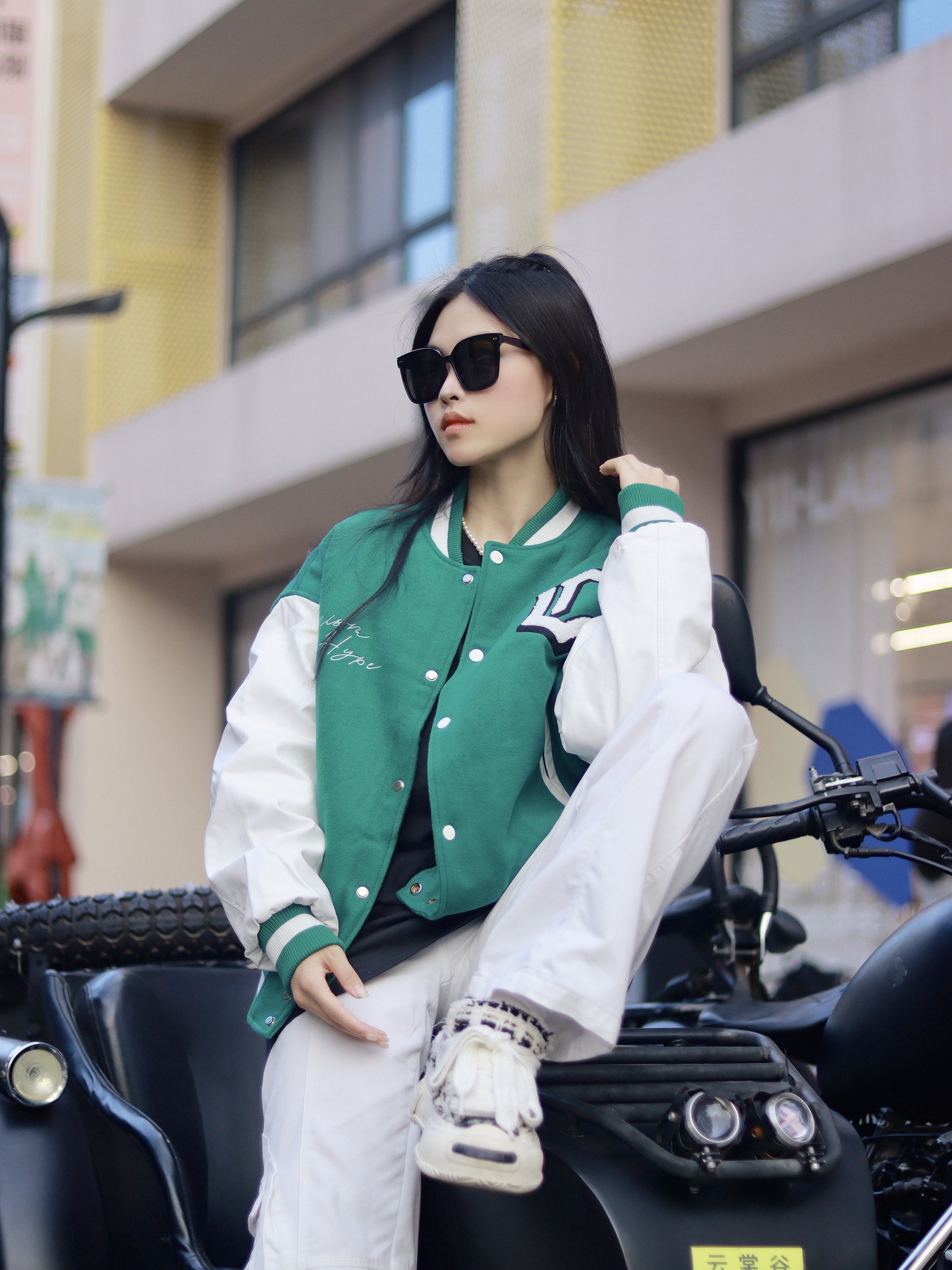 这身休闲运动感的穿搭也太帅了吧! 上衣搭配了ch的外套,绿色的棒球服⚾️真的是初秋帅气的单品,又酷又保暖!搭配了白色工装裤让整个风格更加运动咯! 最后搭配了CLARKIA FLOWER的墨镜🕶️,方形框真的很显脸小,黑框不要太成熟显酷啦!镜腿设计的也很有质感,出门防晒和凹造型都是很不错的选择~