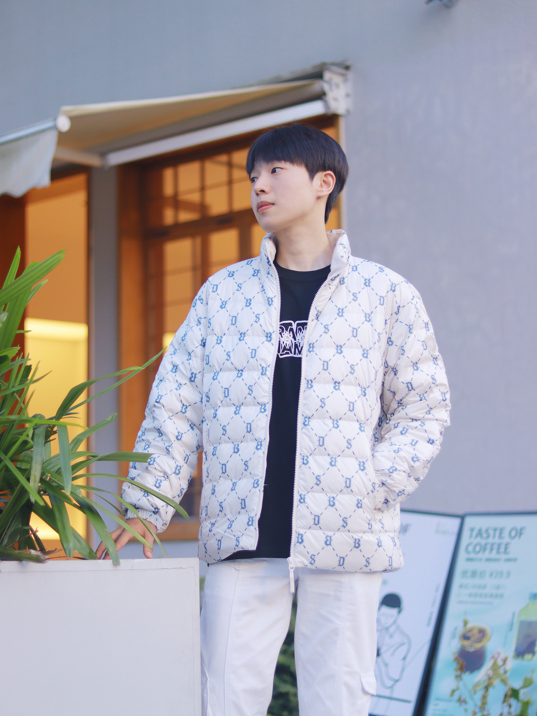 初秋我就喜欢这种简约配色的叠穿,清爽配色+简约设计,真的很有氛围感! - 今天选的这件外套是经典轻薄羽绒服的设计。 宽松的外套版型加上立领拉链设计,穿起来挺利落的。 而且它做了满印logo设计,上身不会很单调,而且软乎乎的很舒服,属于秋冬的保暖百搭单品啦。 - 搭配的话可以撞色叠穿,配上白色系的休闲长裤,基本就可以搞定出街穿搭啦。 - 👔:波司登 👟:aj4