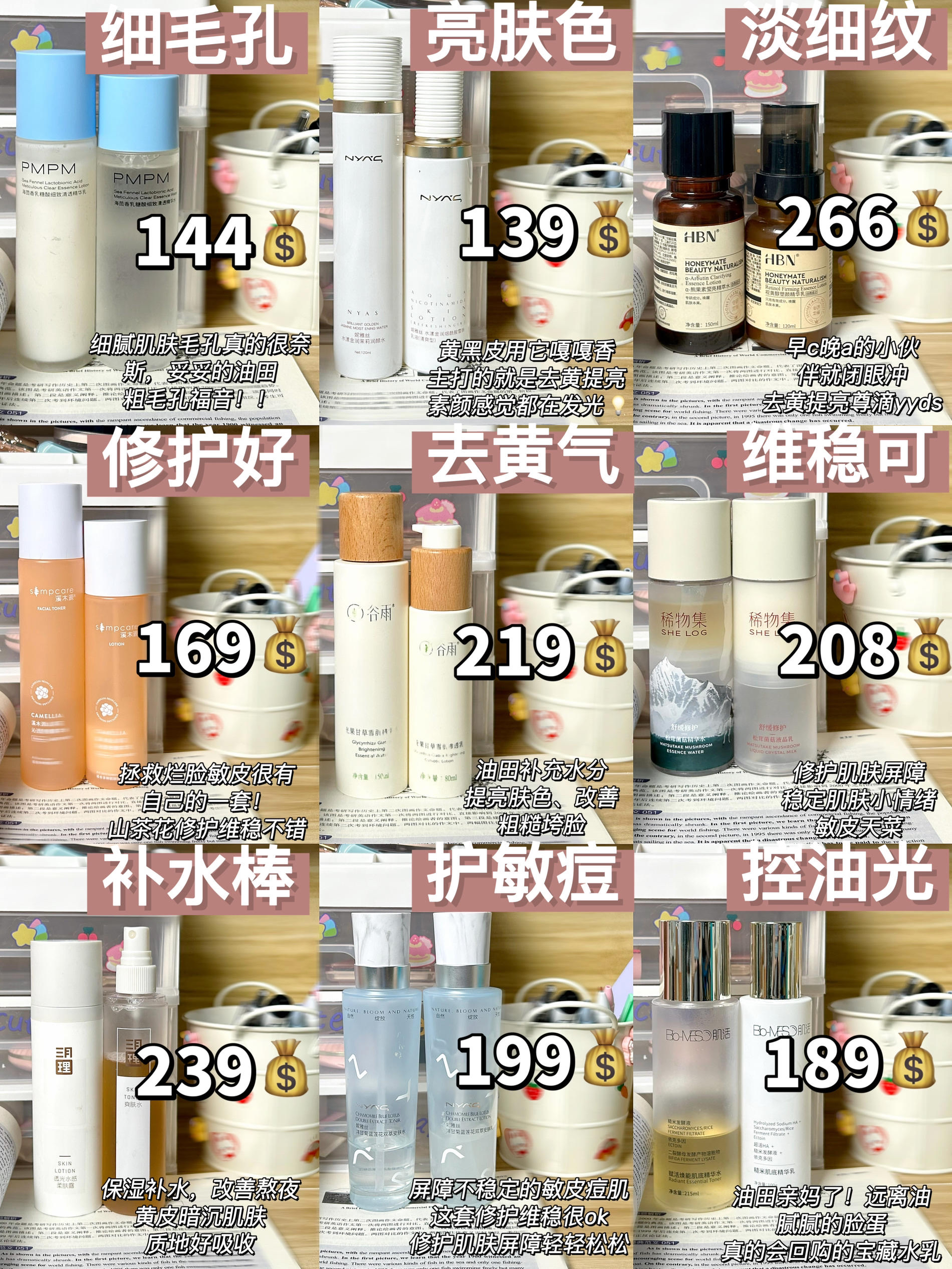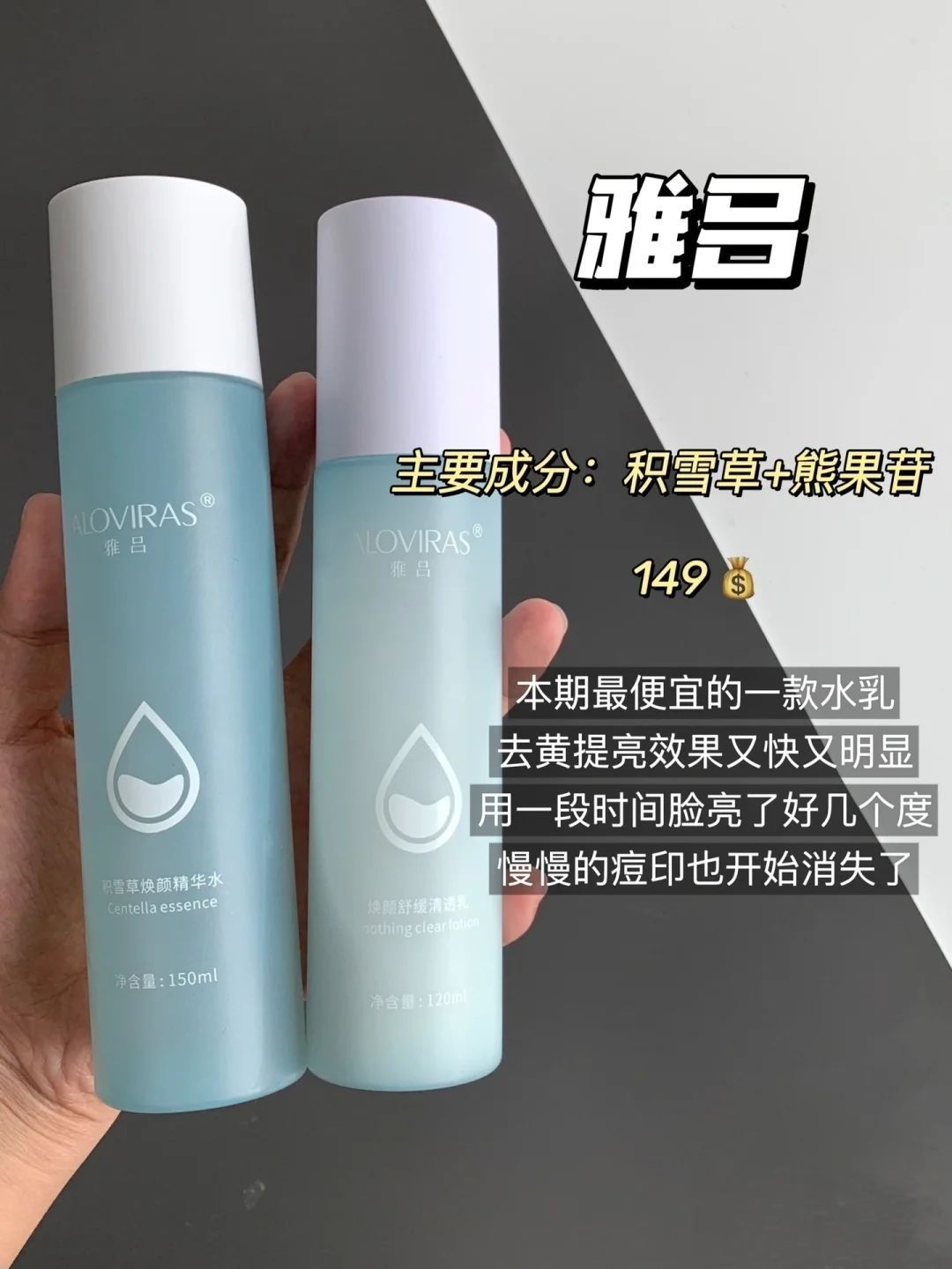 以前护肤不会做功课,谁风大就买谁,踩了好多坑! 为了让大家不要走我的老路,认认真真整理了几个功效型水乳,都是做过功课自己也试用过的,确实没踩雷而且还便宜! 适合预算不多的学生党,有需要的兄弟可以参考参考~ 1.雅吕积雪草水乳6149 √主要成分:积雪草+熊果苷 本期最便宜的一款水乳,学生党可以无脑冲!去黄提亮效果杠杠滴,熬夜之后先拿保湿水湿敷几分钟,凉丝丝的肤感滋润到每一个毛孔,积雪草精华渗透到肌...