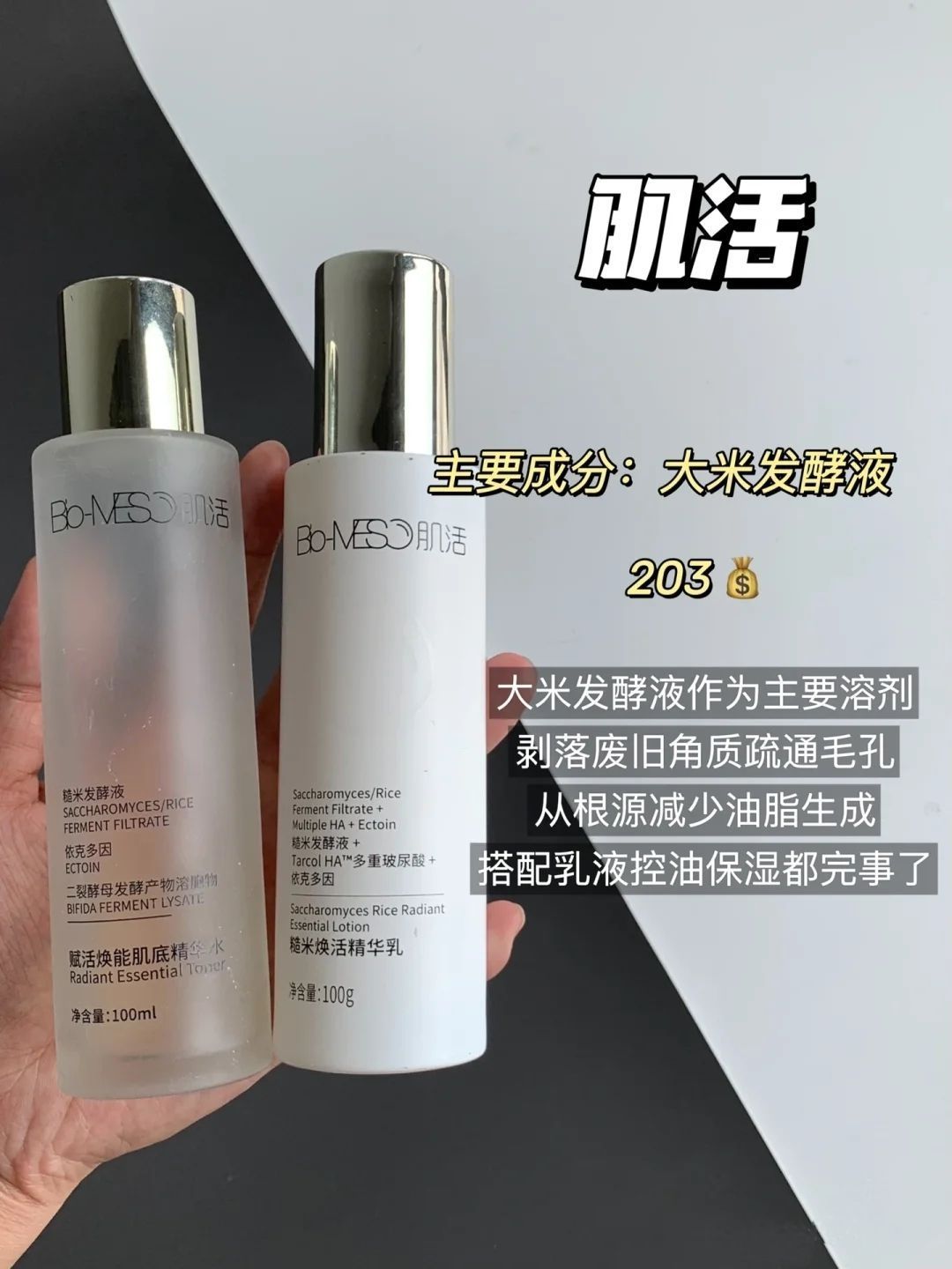 本篇笔记关联了Bio-meso/肌活 糙米护肤套装【水+乳】 提亮抗氧舒缓控油保湿修护 精华水100ml+精华乳100g、雅吕 积雪草提亮补水控油护肤套装 精华水150ML+乳液120ML等商品,为用户提供真实的使用体验和购买参考。