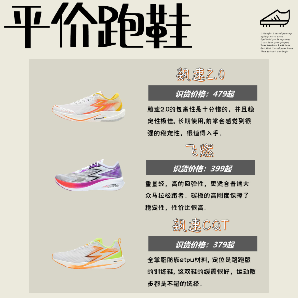 361发展的很是迅猛,👌👌不仅仅是篮球鞋,跑鞋科技也是研制了不少,今天小编就按照不同的跑鞋分类进行了整理,来看看吧👀👀 🌼碳板飞飙 全掌碳板与全新中底科技的组合, 飞飚Future碳板刚性的加强和足弓处加强筋的效果。整体舒适透气,性能很强。 🌼飞飙Future 这一款是飞飚“进化”而来的顶级竞速碳板跑鞋,它内部搭载的最大的碳板,最新的性能跑鞋。 🌼E韧 雨屏 可以防雨,冬天穿最佳,中底的脚感也是软...