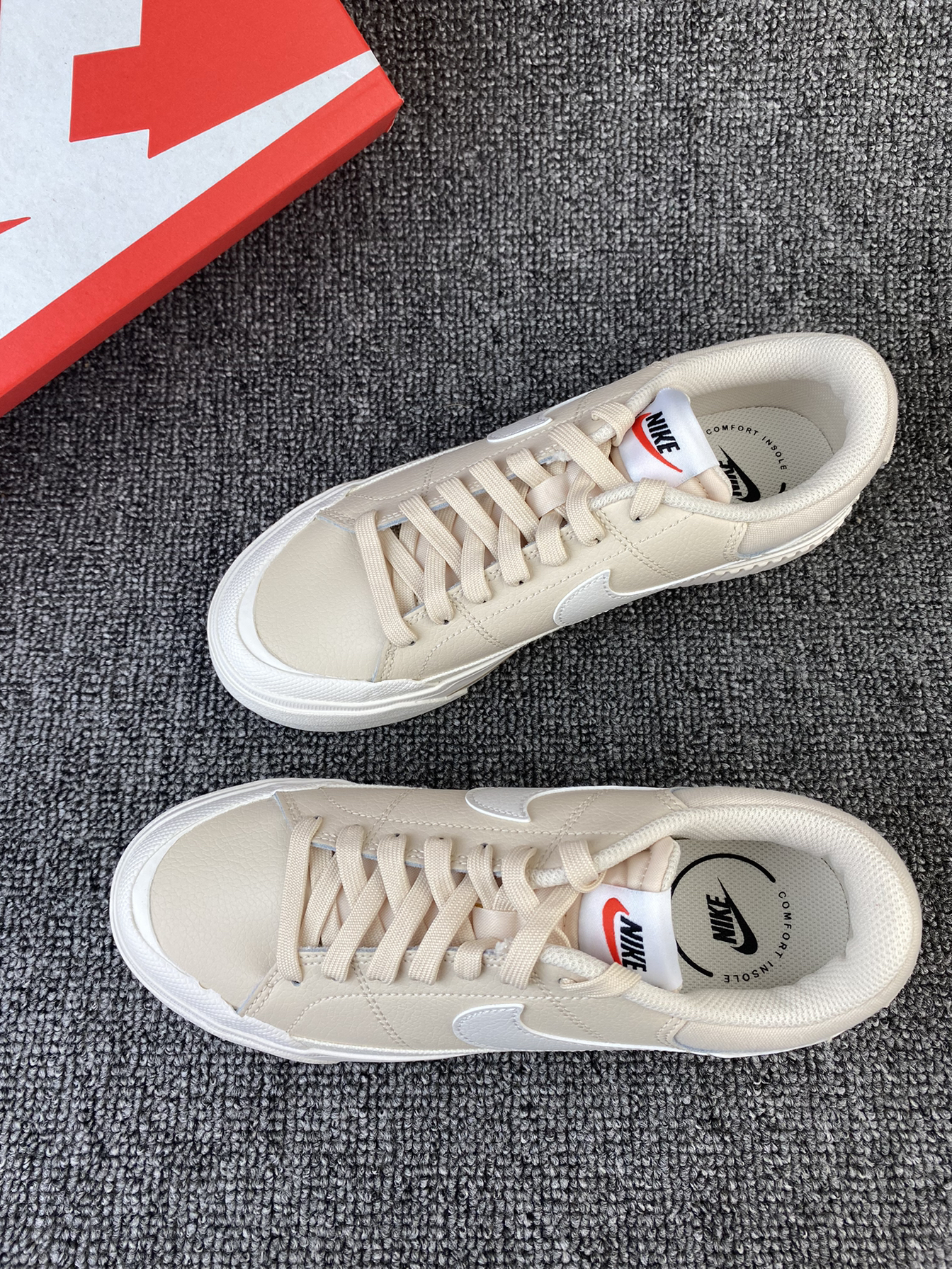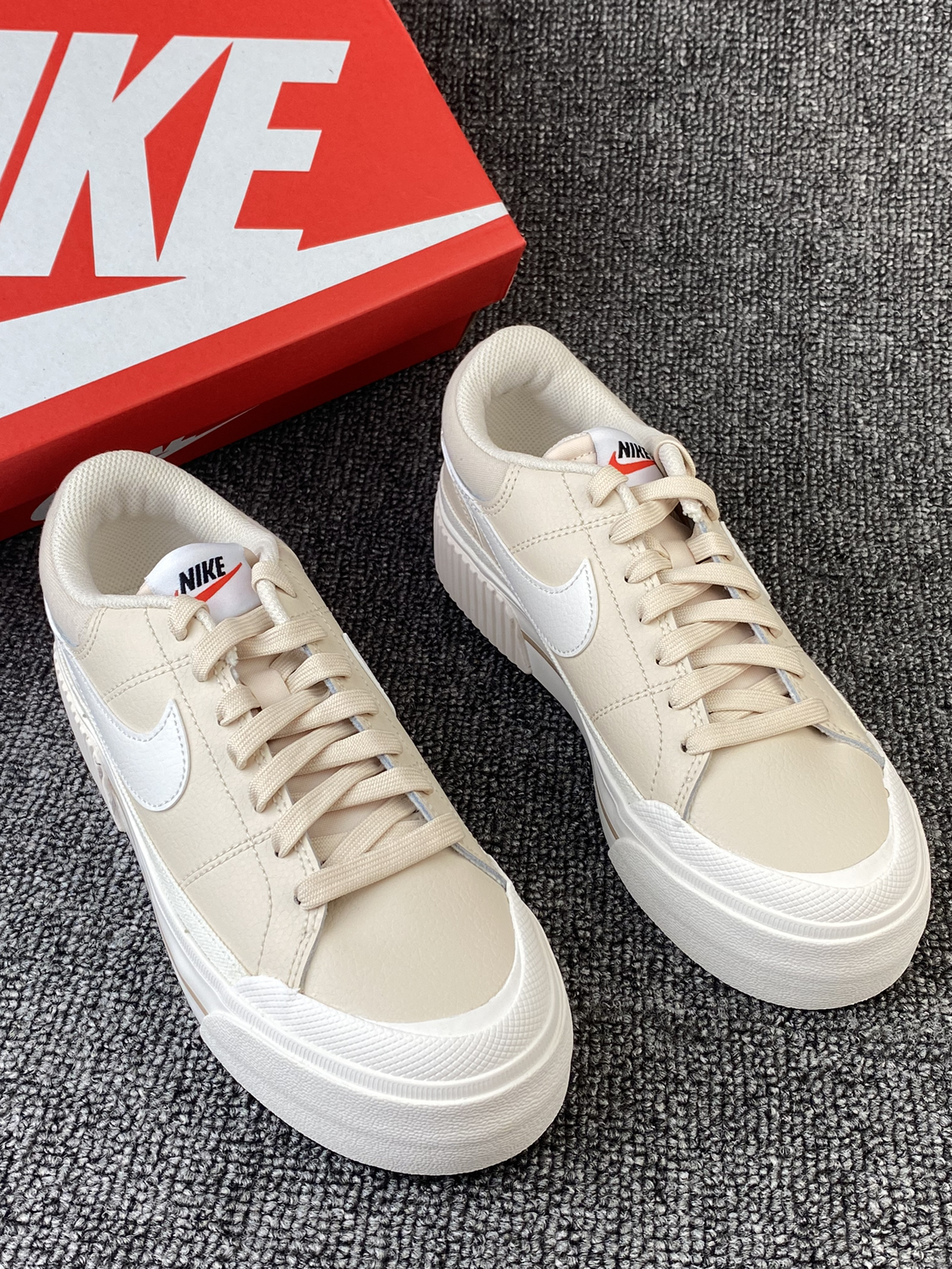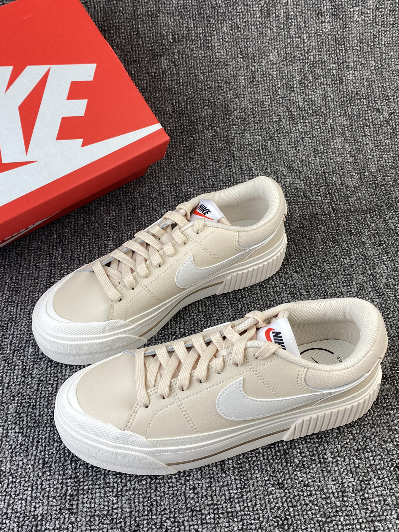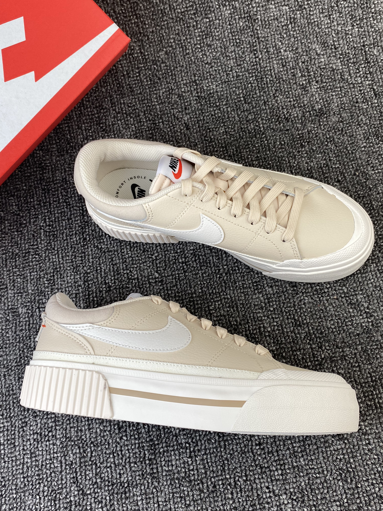 👟Nike Court 厚底板鞋 😎Nike的这款小板鞋又出新配色啦!粉粉嫩嫩的很有少女感!鞋子整体是浅棕色的,中底是奶白色的感觉,加上厚底的后跟,奶呼呼的像一块小蛋糕! 🌸鞋面为皮革材质,皮质柔软且细腻同时也是比较好打理的。中底部分有4cm左右的增高,对小个子很友好。大底是橡胶材质的,很耐磨。 ✨好看又好穿的小板鞋很难不爱!尺码方面没有偏码,我是按平常穿的选择的,刚好~