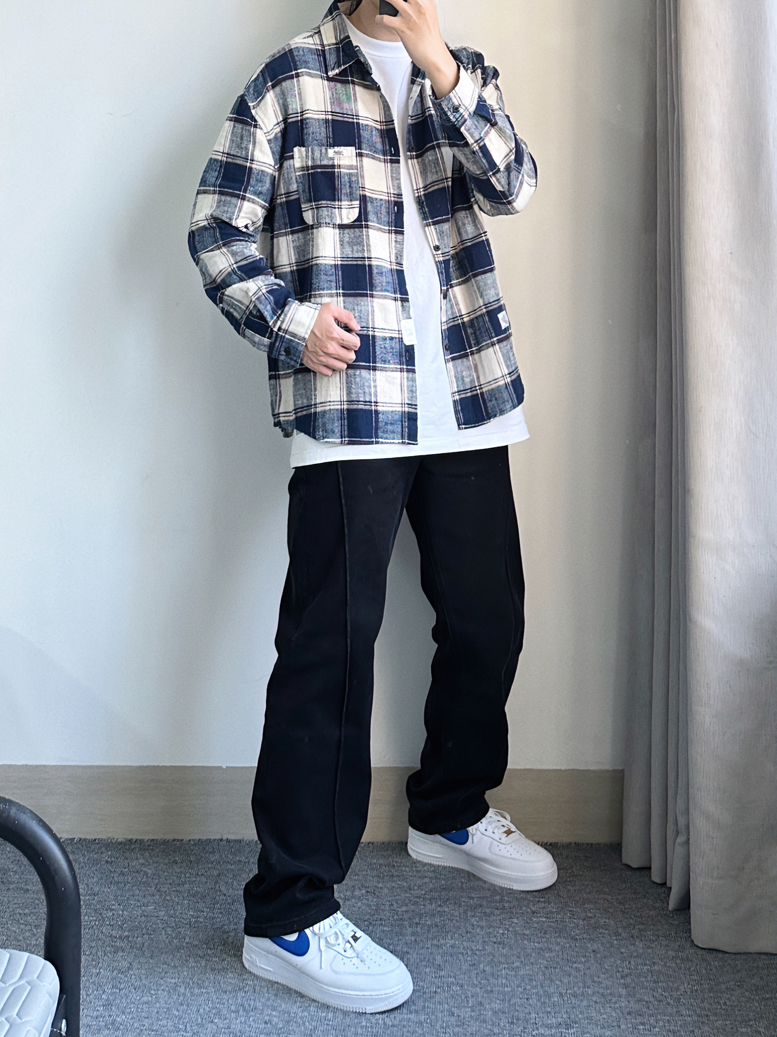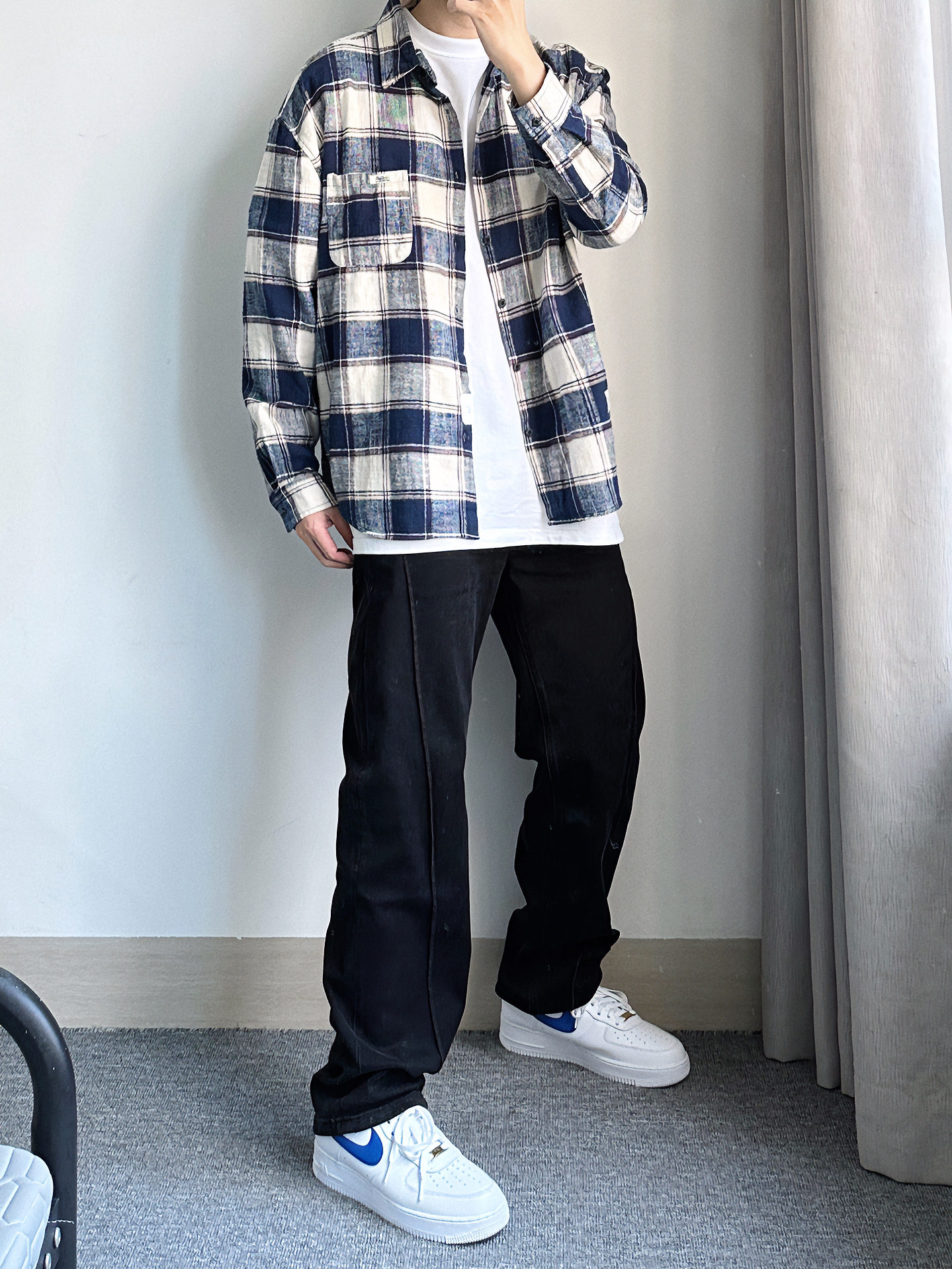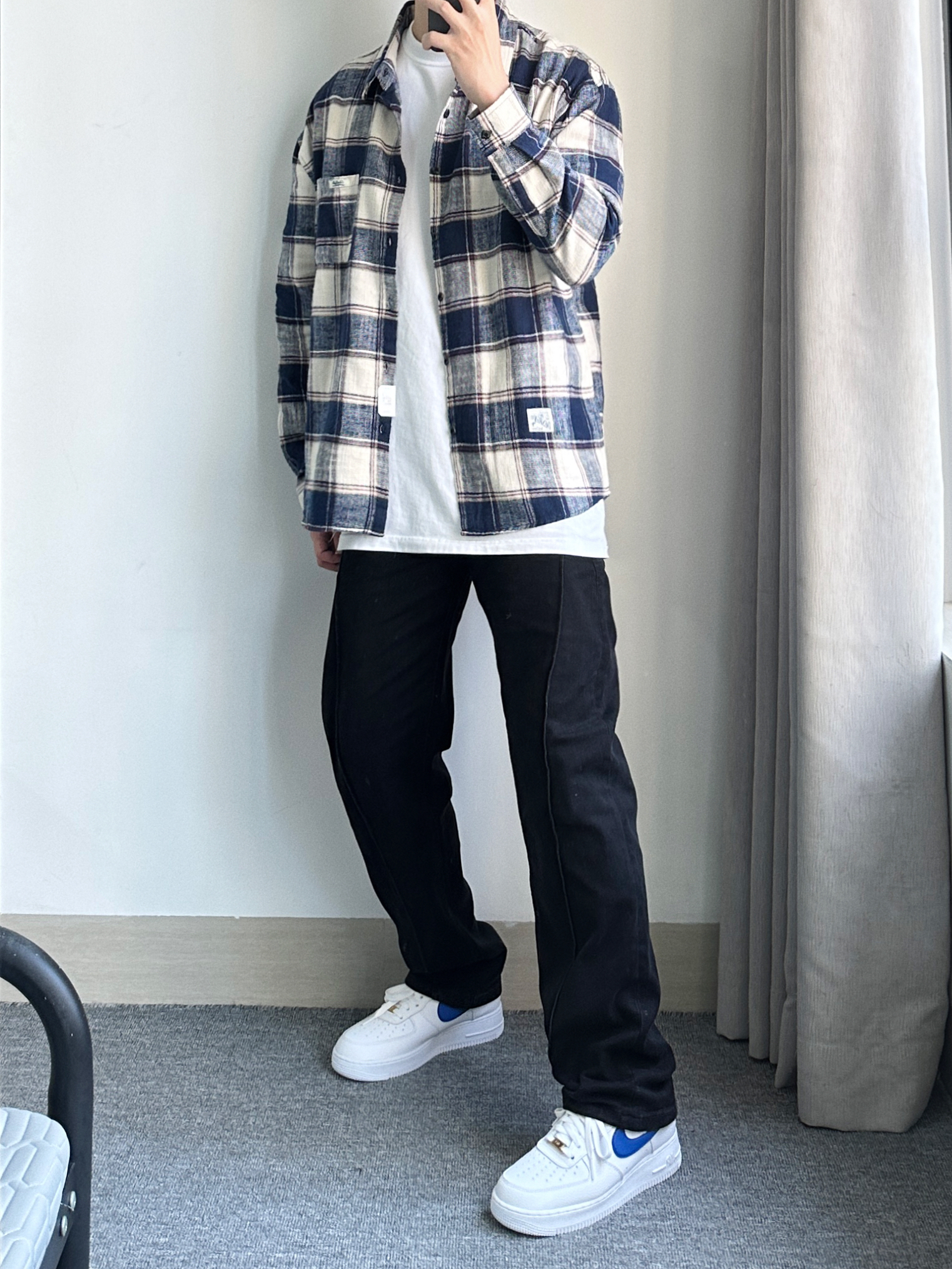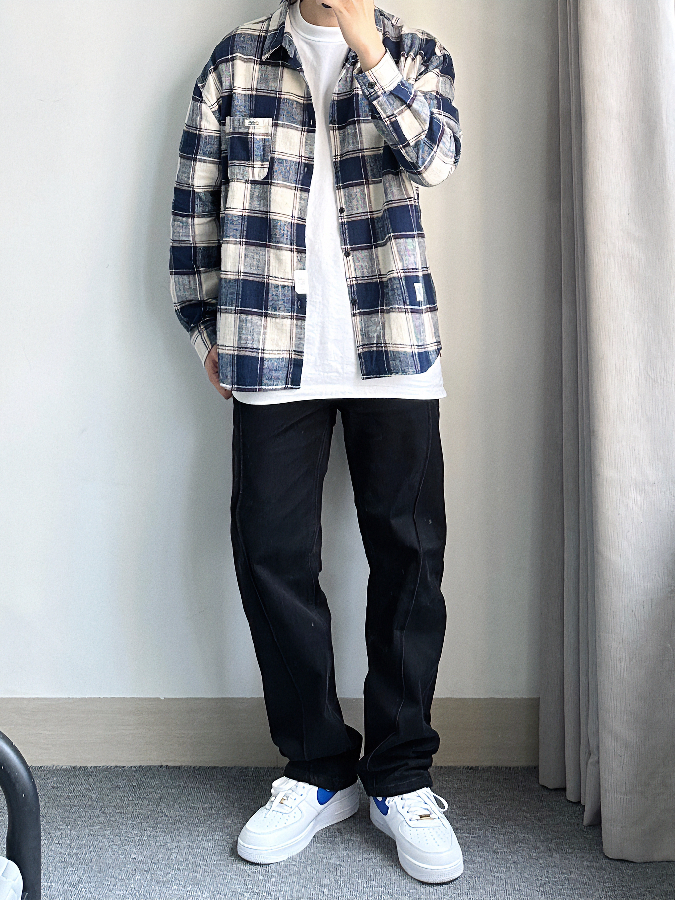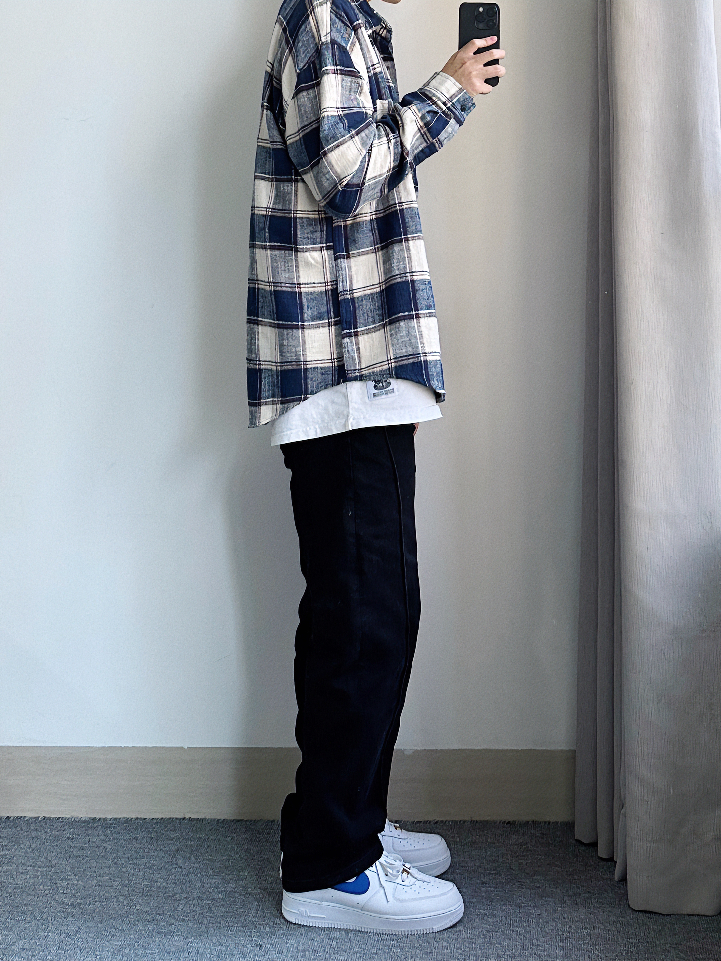 今天分享一条初秋休闲搭配,格子衬衫真的超级适合秋季穿搭!上身就很有美式休闲风格,纯棉面料也好好穿,搭配黑色直筒牛仔裤真的很利落帅气!这条裤子版型视觉上身真的显瘦腿!面料是那种有弹性的,腿粗也不怕!裤子线条设计感也很酷,秋季这样穿也太帅啦~ 裤子/rstay17