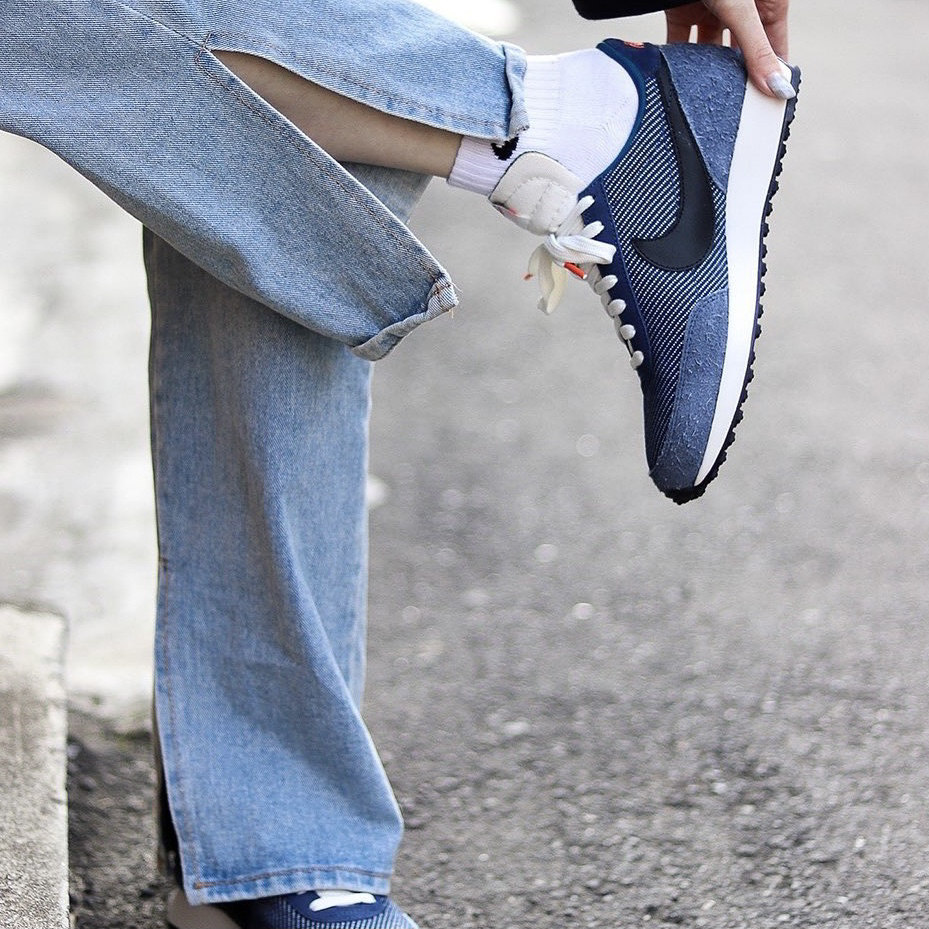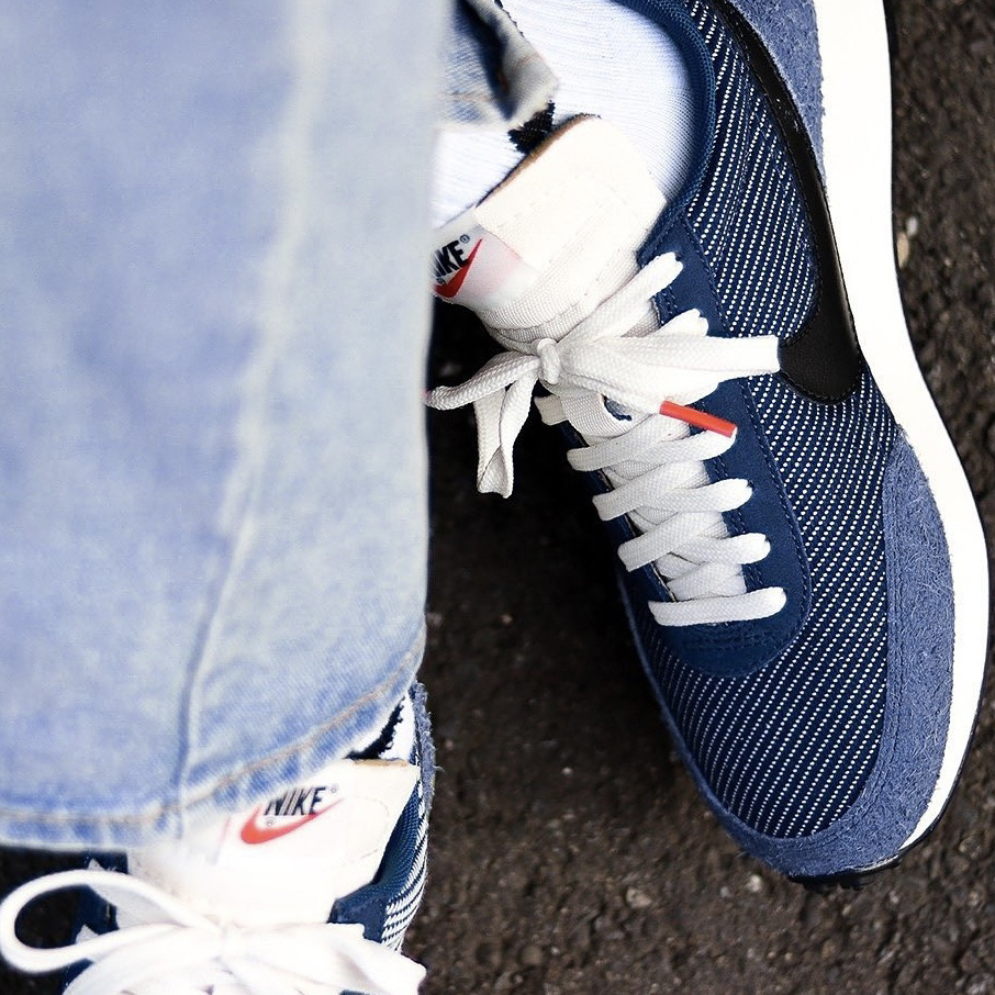 鞋名:Air Tailwind 79 牛仔蓝 外观及细节: 首先这双鞋子的外观还是蛮复古的,造型上有点像是华夫鞋的感觉,其次它的鞋面材料使用了比较特殊的斜纹牛仔布和蓝色麂皮叠加组合,所以质感是相当不错,而且鞋舌是解构的设计,又有时尚感,大底的黑色的华夫格大底,又很好的增加了鞋子复古的感觉。