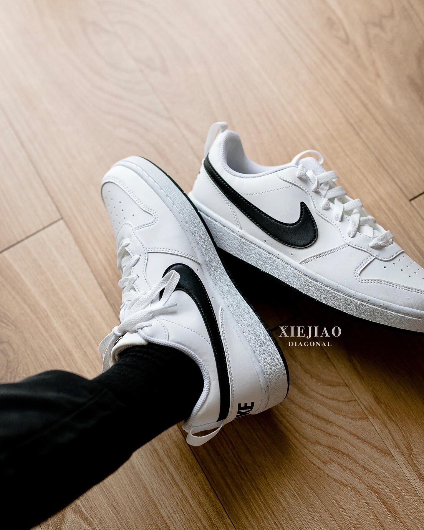 耐克推出的Court borough 板鞋一直都比较受欢迎,尤其是配色简约的款式,更是受到追捧,这款黑白配色款有就其实中的百搭款之一,白色的皮革鞋面柔软,搭配上黑色的钩子,就有熊猫配色的感觉,织物型的鞋舌,能够保证基础的舒适感,只是整体的脚感确实很一般,不过可以更换柔软的鞋垫来解决脚感问题。