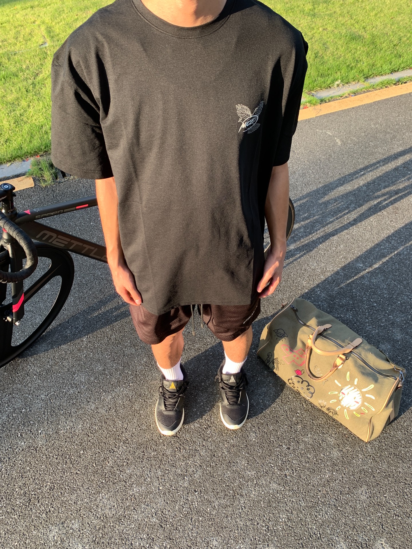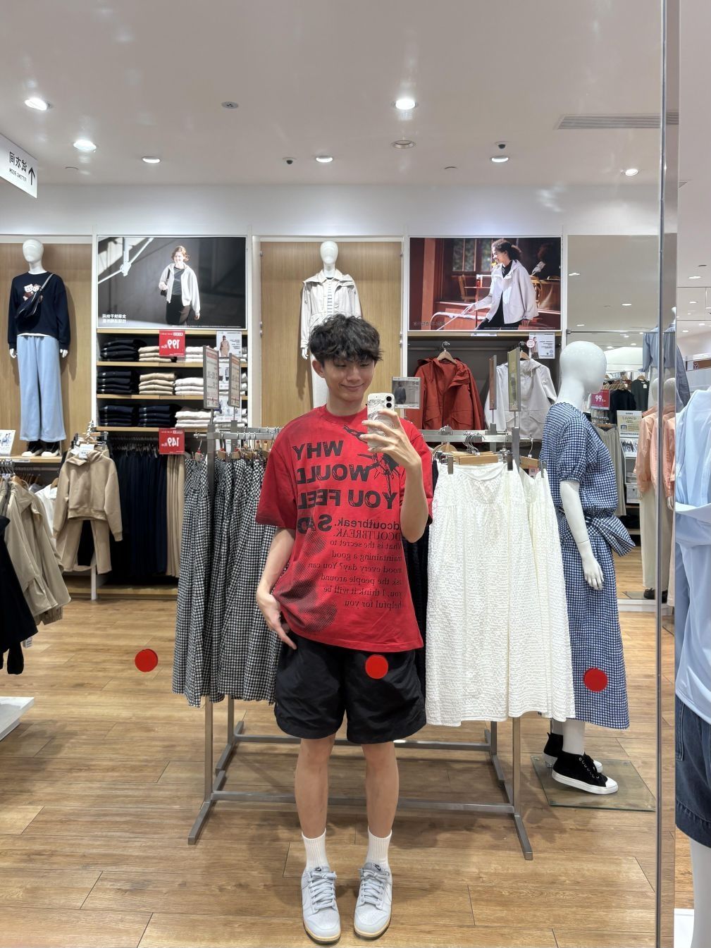 一般我们穿搭讲究“三色原则” 全身上下最好不要超过三种颜色 注重色彩上的呼应,这样让人看起来才会舒服 这件美式复古红半高领套头短袖T恤 可以说是黄黑皮首选,它不是那种鲜艳明朗的大红 上身可能会略显俗气,采用的低饱和度的黑色 衬肤显白,加上印刷工艺的字母数码印花的点缀 - 把复古少年感拉满,不会穿搭的学起来! 搭配耳机、棒球帽都是不错的选择 XDFM