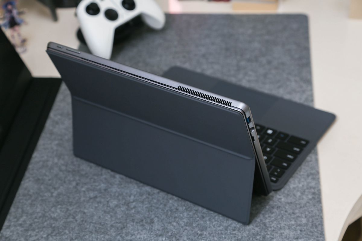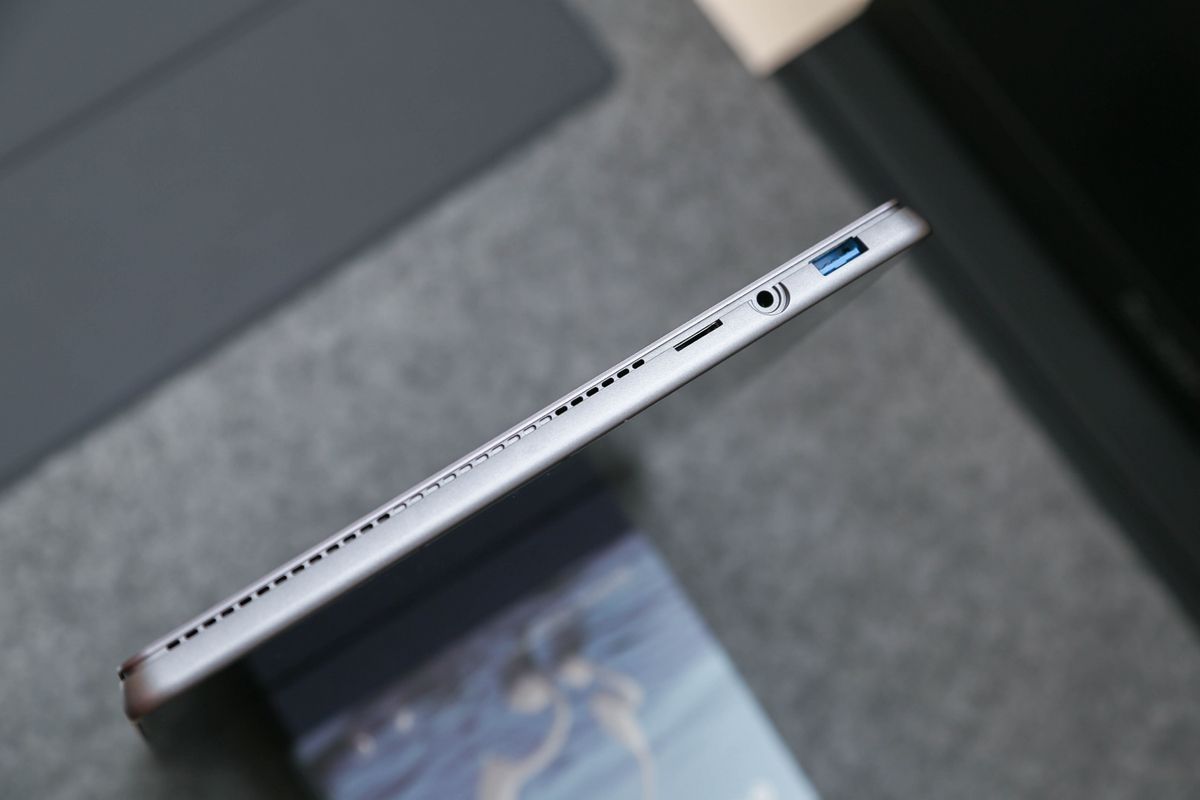 搭配键盘巧妙的设计,酷比魔方iWork GT 12瞬间变为了我们工作中的办公神器。虽然这款二合一平板比较薄,但是依然为我们准备了Type-C、USB3.0、TF卡槽及音频接口,通过这些接口我们可以很方便的使用U盘、鼠标、网卡等一些外接设备,非常的方便。