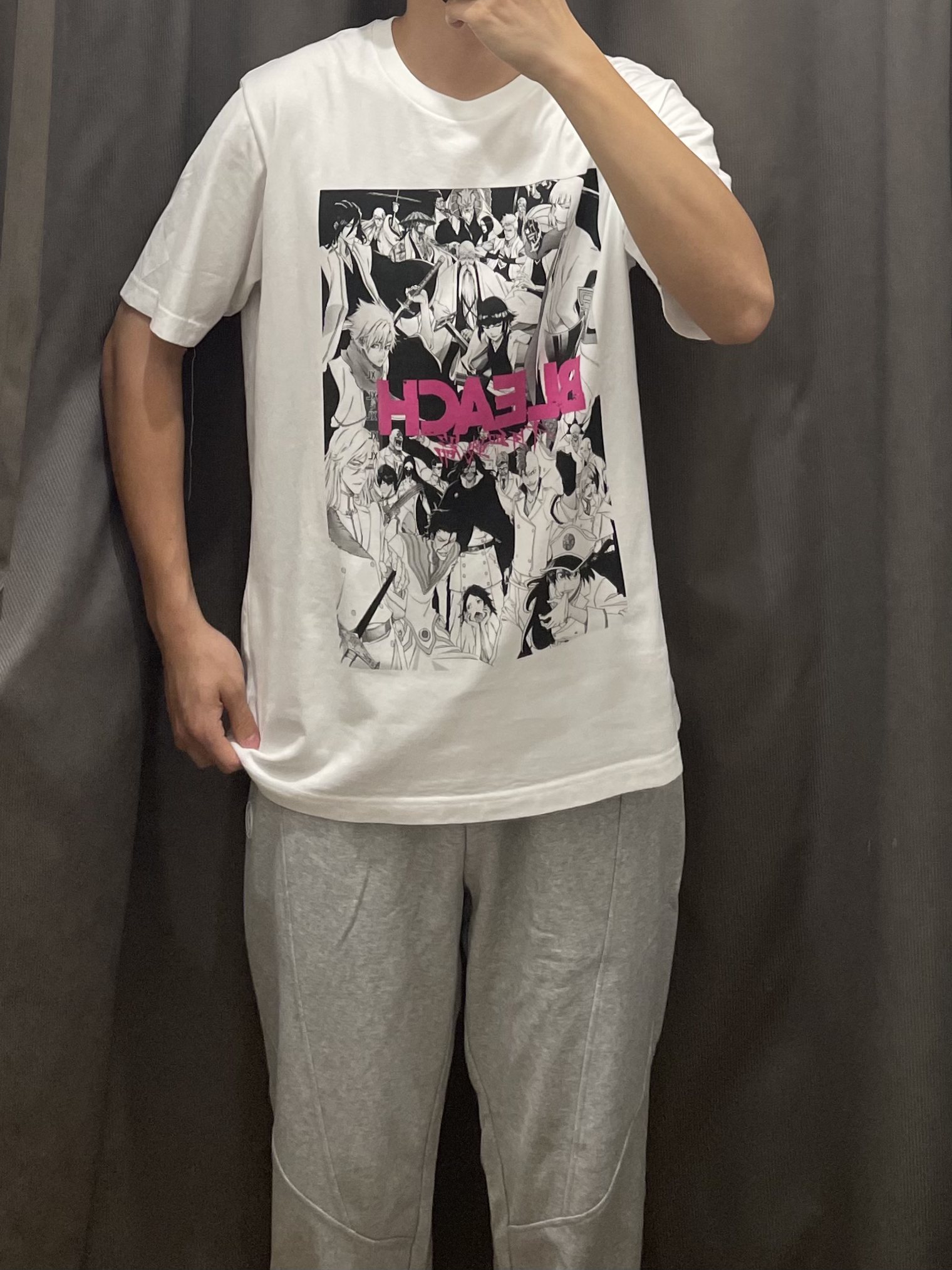 真的太喜欢这样的花灰色休闲运动裤啦!!直筒宽松版型 真的好穿诶 而且运动健身穿起来也很舒服 很亲肤诶 好绝诶 上身搭配优衣库的海贼王联名短袖 不得不说 爱死了