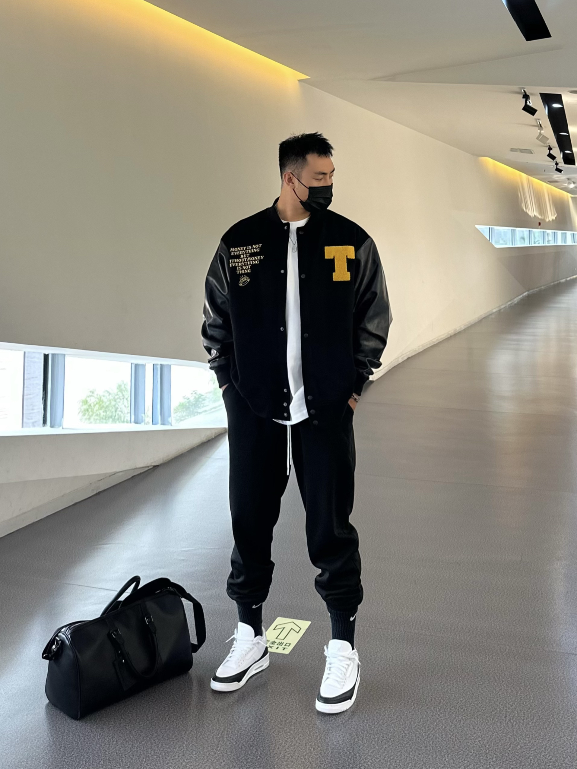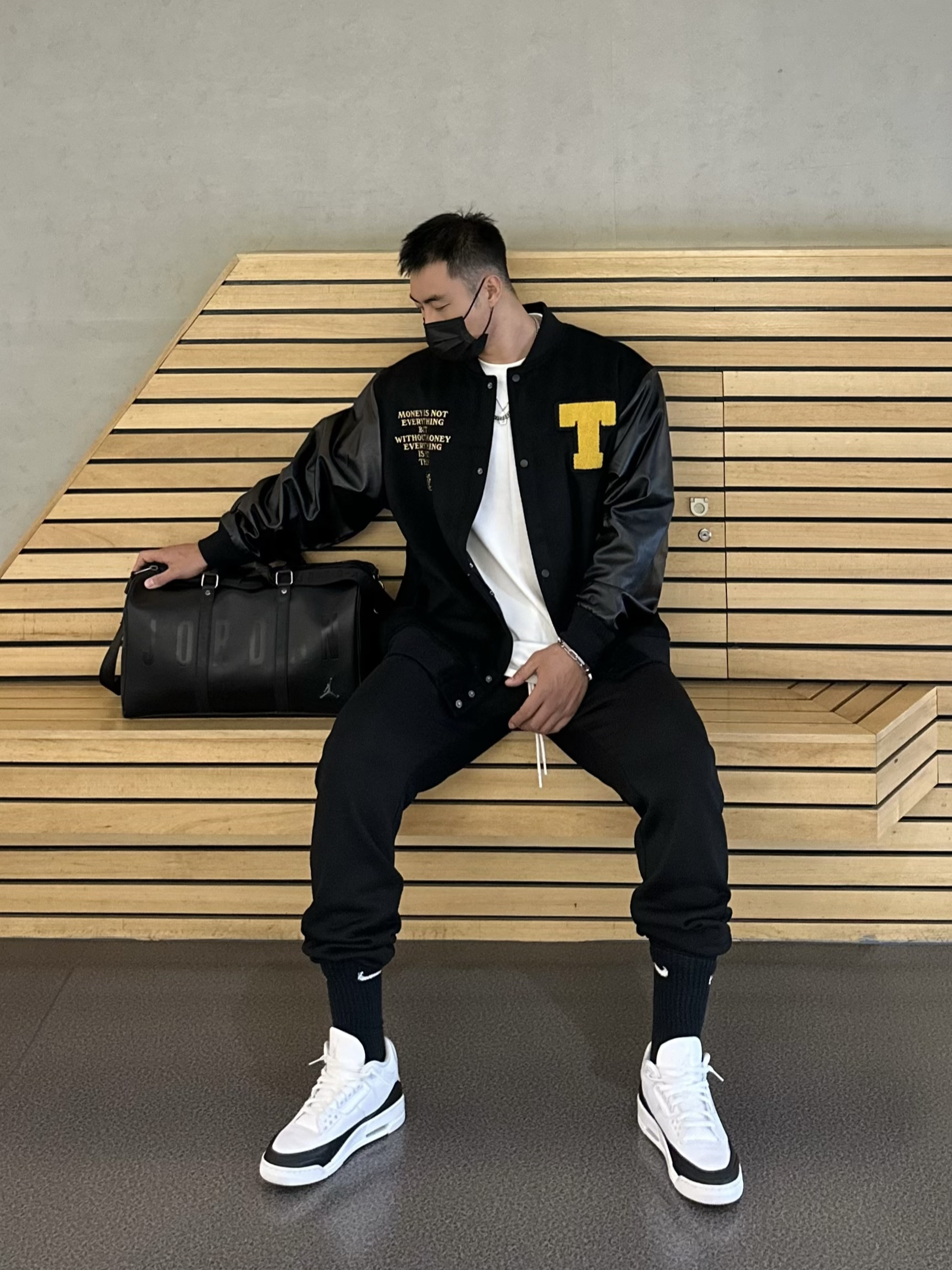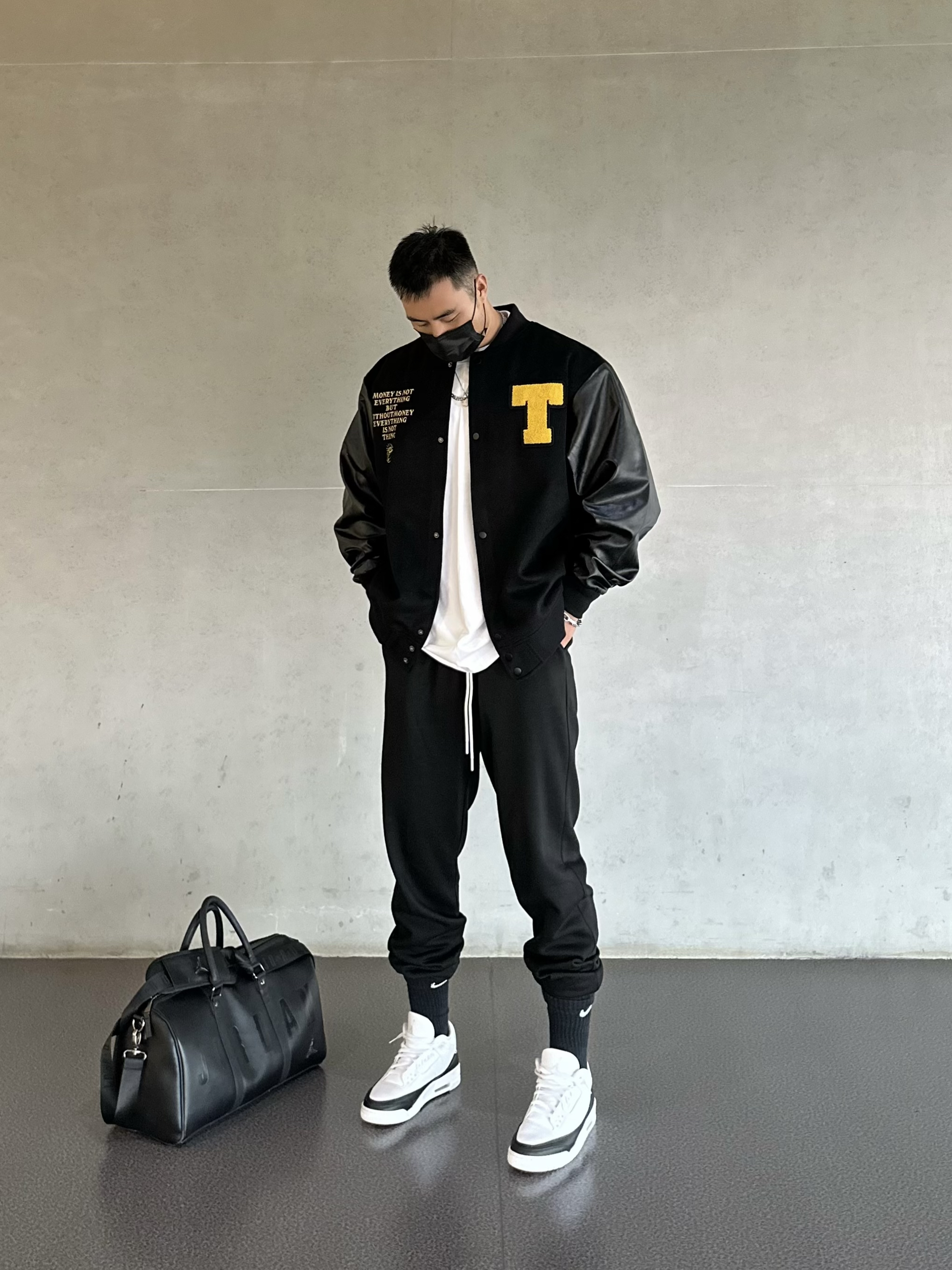 183/85 今天穿什么 哈喽大家🫡今天是秋季穿搭必备之棒球服夹克look 👔 Toos毛呢刺绣棒球服,整体的面料是毛呢拼接荔枝皮,视觉上更有层次感,宽松版型上身挺括显身材 黑黄配色搭配精细的刺绣,潮流质感拿捏,秋冬棒球夹克就是既百搭又实穿💯 183/85 上身xl 👖 黑色束脚卫裤,高克重面料上身很硬挺,宽松的版型秋冬穿也很舒适百搭 👟 AJ3藤原浩,黑白陪色很基础百搭,皮质也和上身棒球服做了呼...