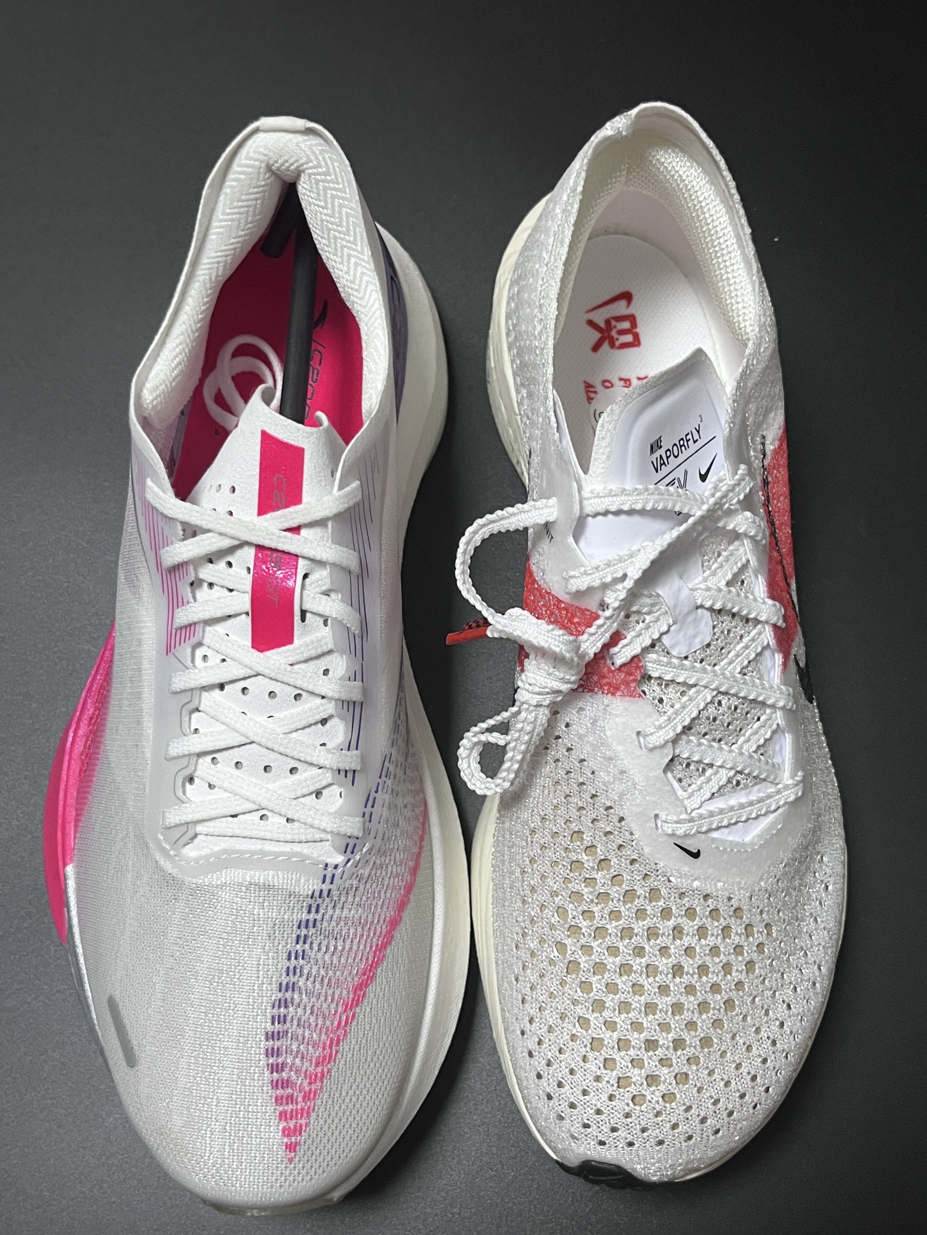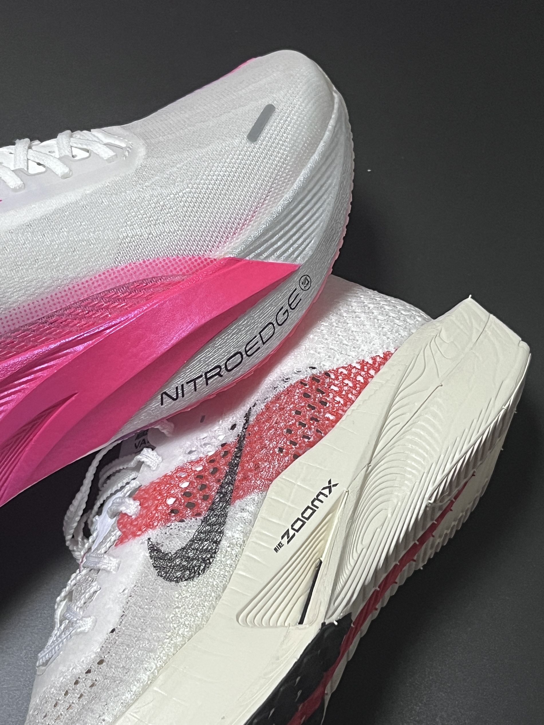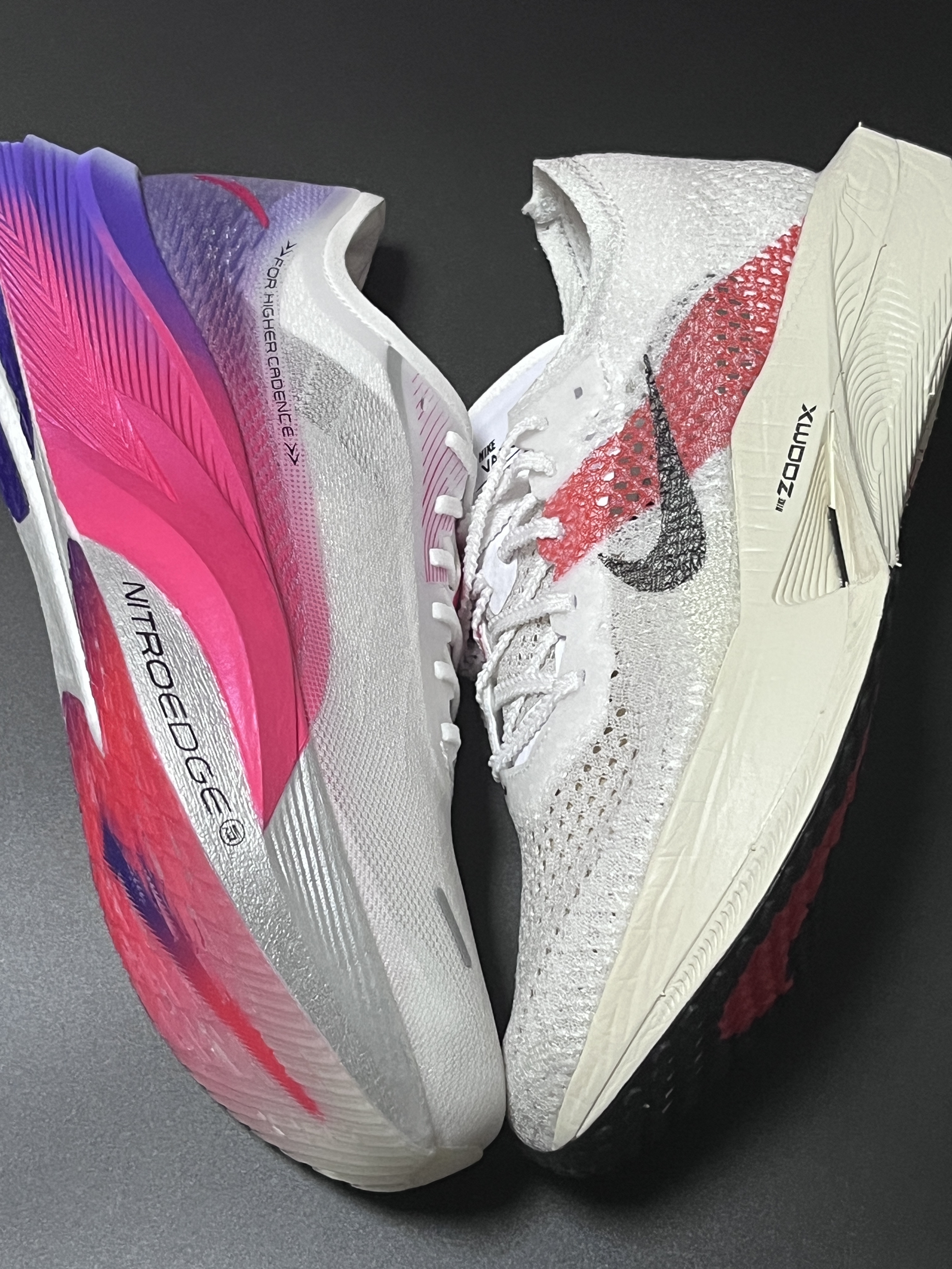 halo 阿迪来了,本期带来两双两双实战跑鞋!没错就是这双来自安踏的C202 5GT 和这双Zoomx Vaporfly Next%3! 话不多说,我们就来分别看看吧! 首先,我们先来说说这双安踏的C202 5gt,整双鞋以白色为主色调,搭配玫红、紫色渐变真的非常好看! 鞋子采用半透明镂空的MONO纱,集透气、强韧于一身! 另外鞋子中底采用的是上下双密度中底材料,内嵌一块全掌碳板,这样的设计也是...