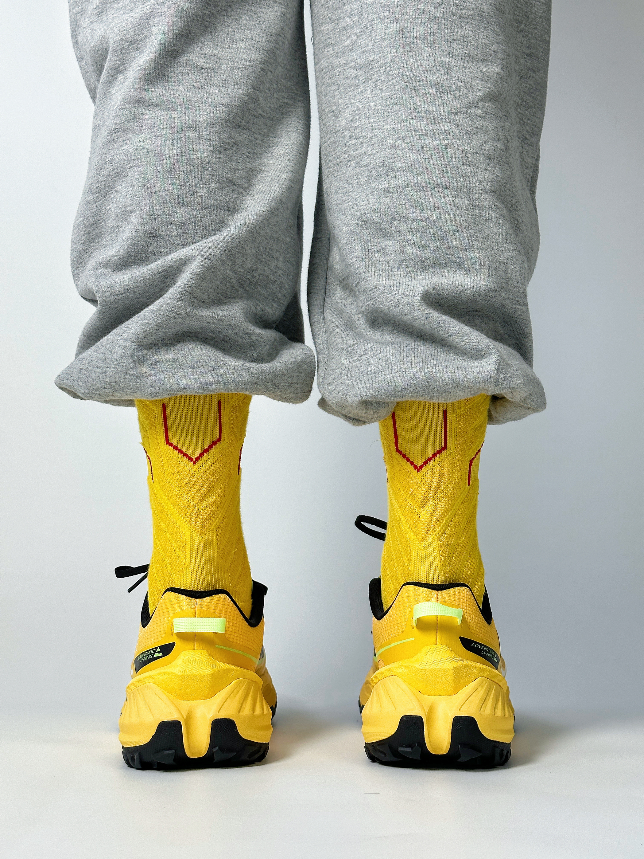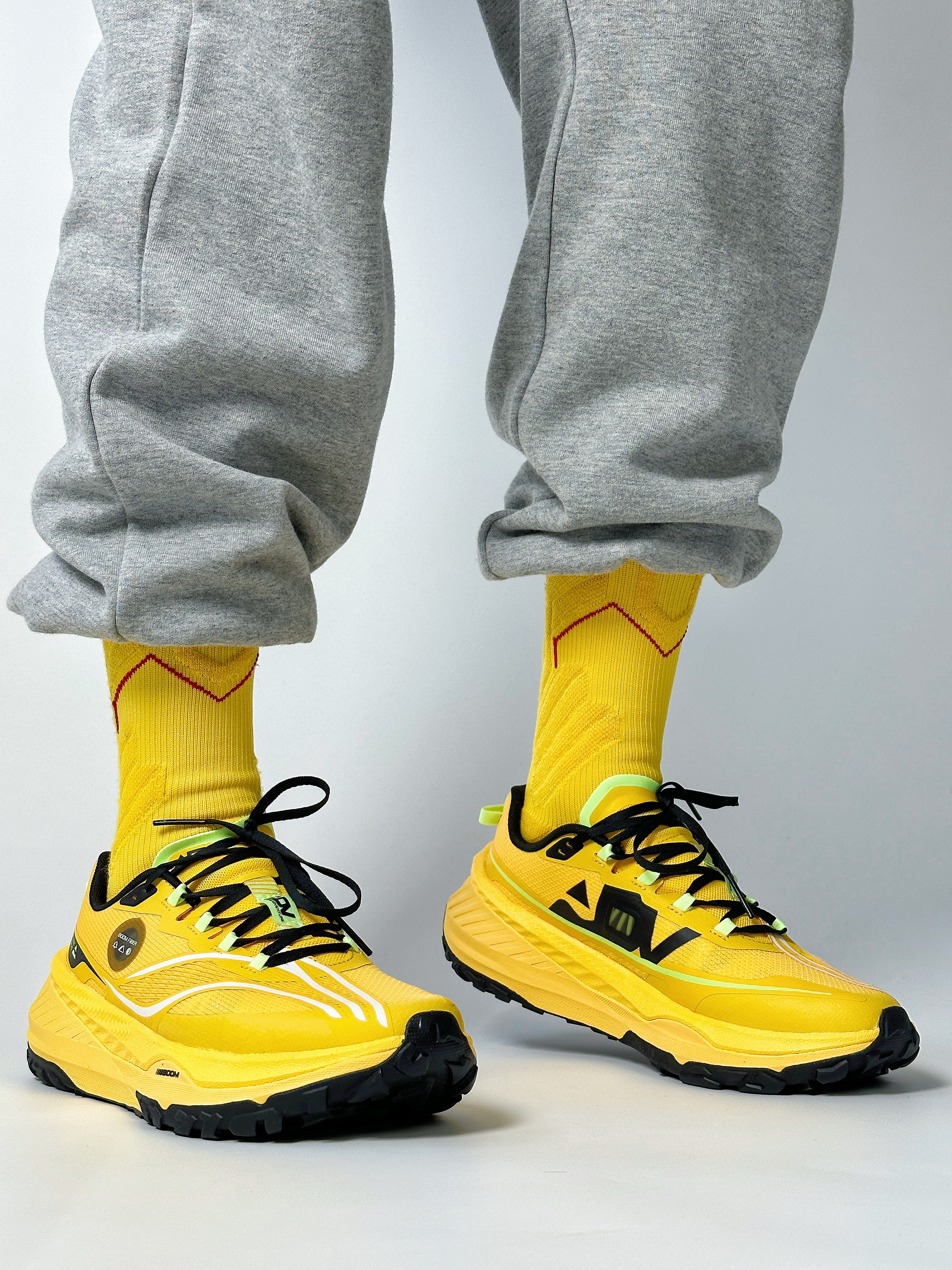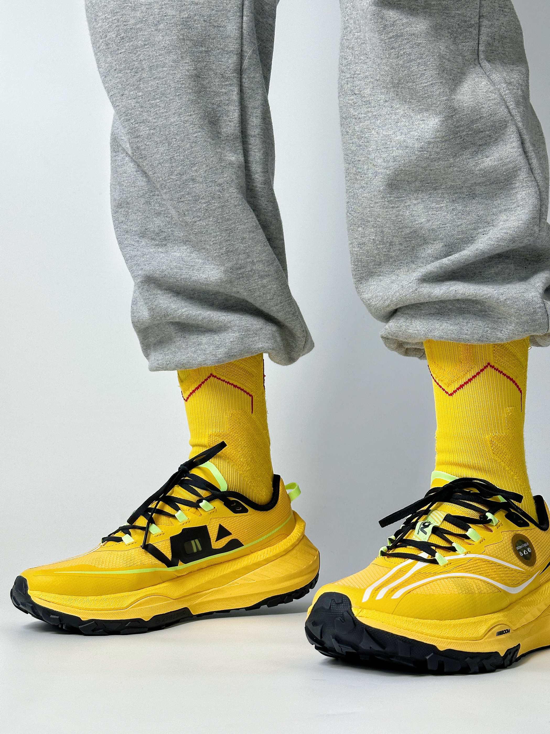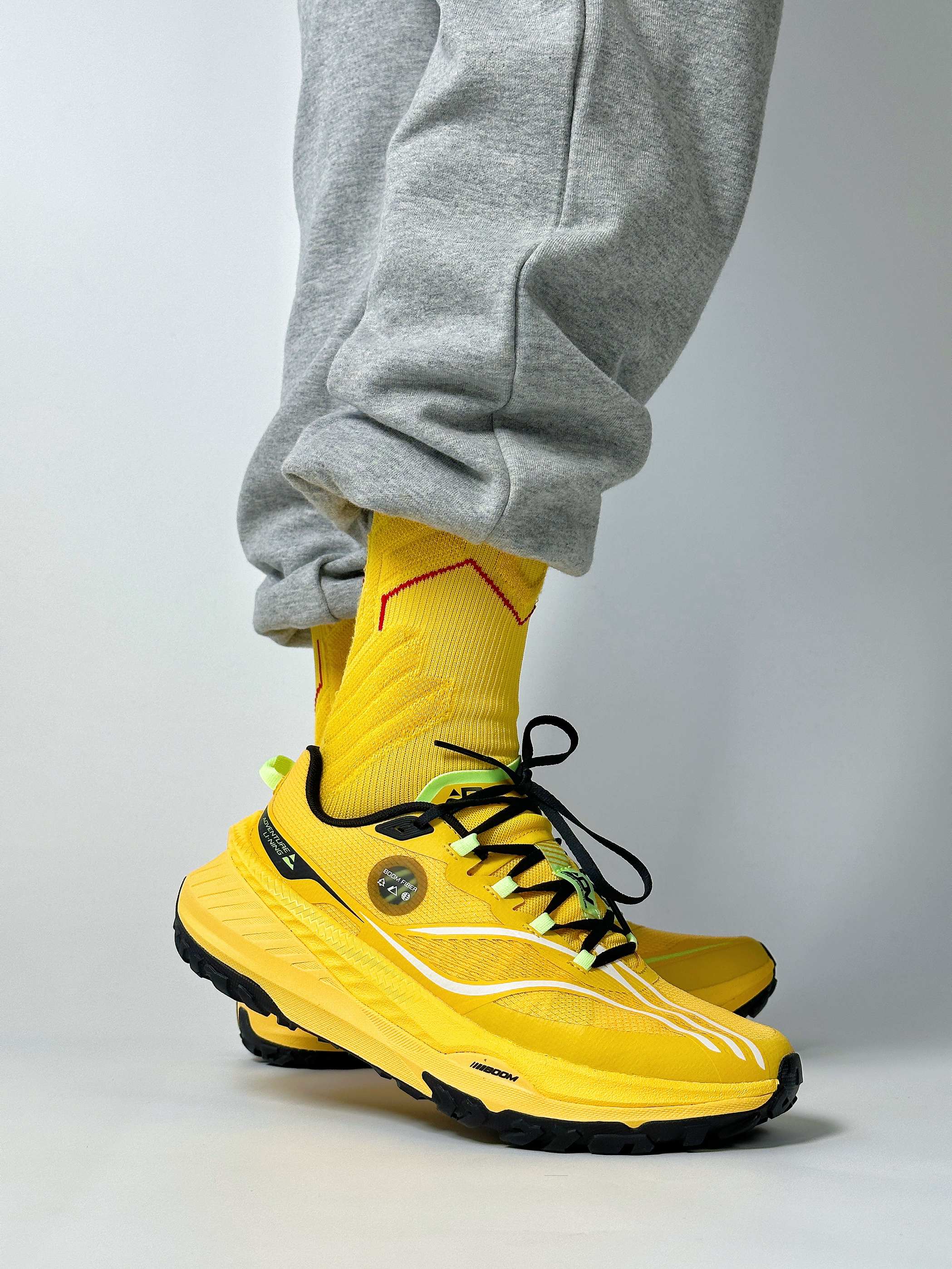 🏃👟:李宁 的卢 越野跑鞋 黄色 鞋身整体采用黄色为主色调搭配荧光绿和黑色点缀,整体的颜值我个人是非常的喜欢且亮眼的,作为李宁首款推出的越野型跑鞋,大底采用了非常突出的GCU止滑耐磨橡胶纹路,耐磨方面随便造就完了! 跑鞋配置 䨻丝鞋面搭配大面积热贴➕上层全掌䨻轻弹科技搭配下层全掌Light Foam Ultra科技中底➕足弓Tpu抗扭片➕GCU耐磨止滑橡胶材质大底。