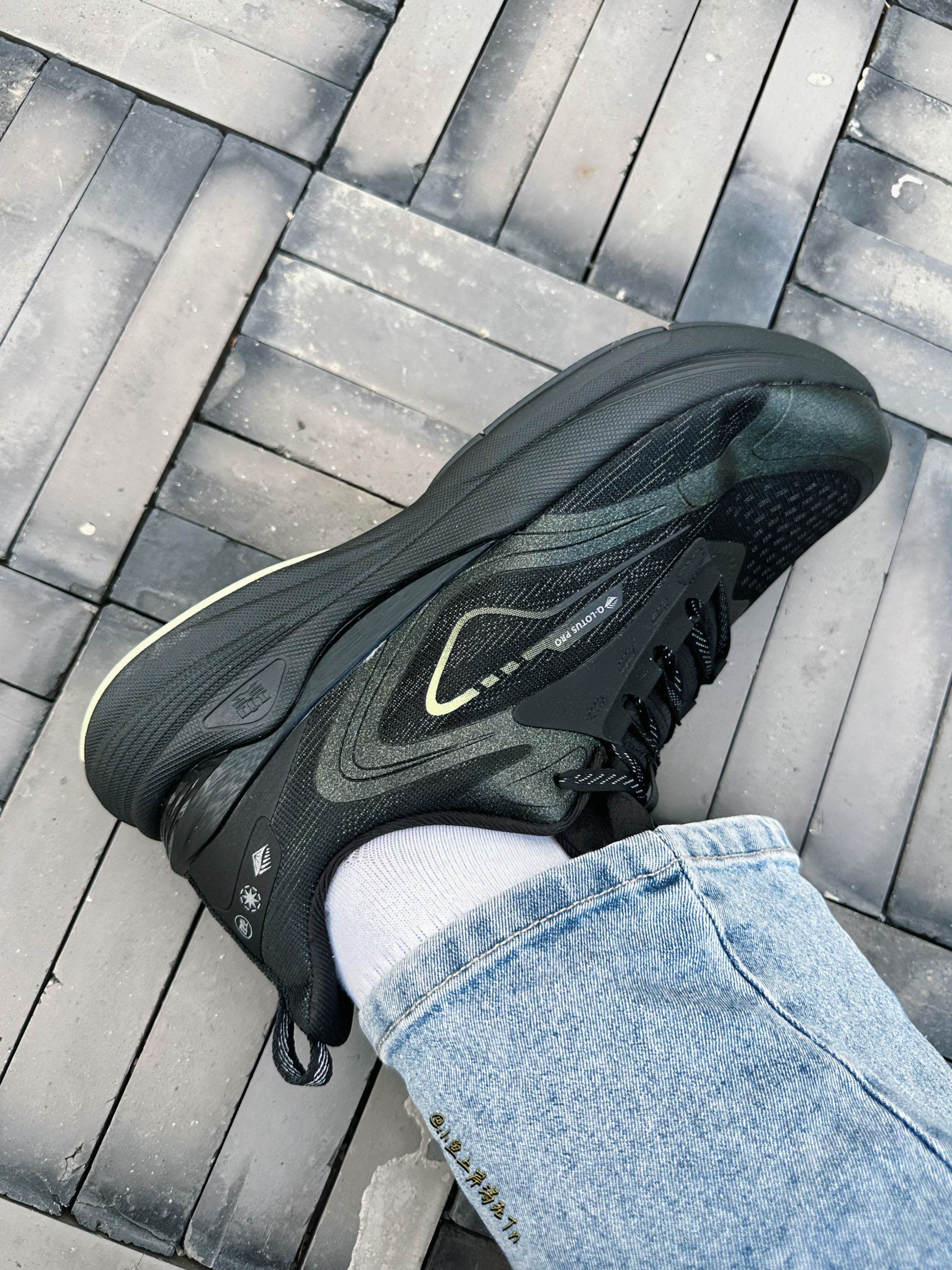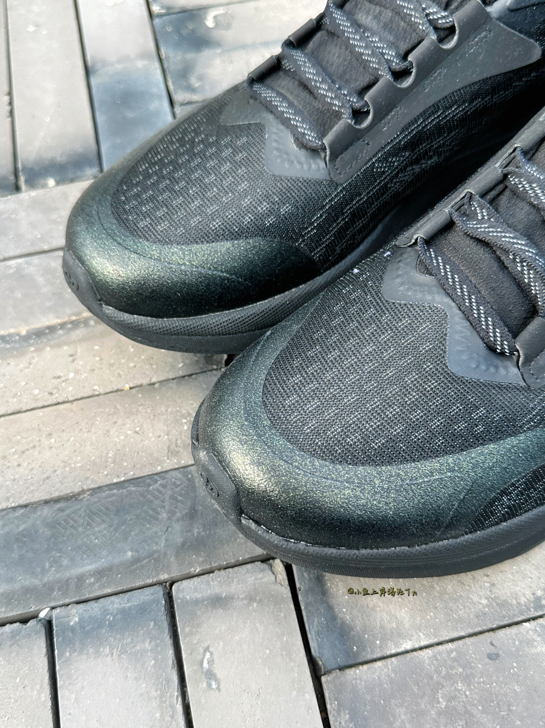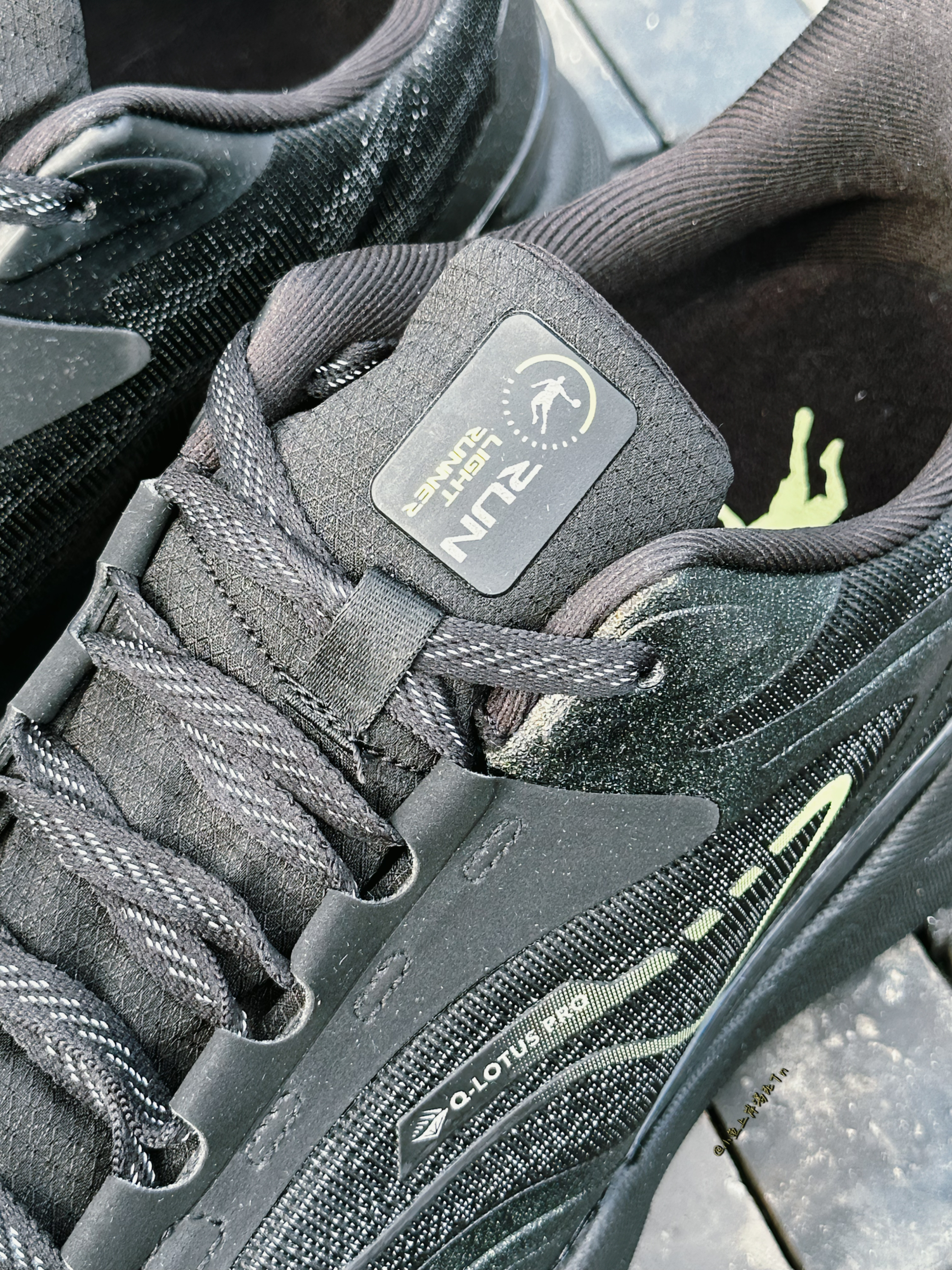 哈喽 小鱼🐟来喽! 今天给大家推荐分享这款乔丹 兩燕3.0防水防雨 跑鞋 鞋面采用“荷御防水科技”纳米透气鞋面 防水防雨的 同时 透气性我个人觉得也还是挺不错的 鞋身整体黑色主色调 绿色点缀还是挺百搭耐看的 中底巭Light科技 脚感缓震都是蛮优秀的