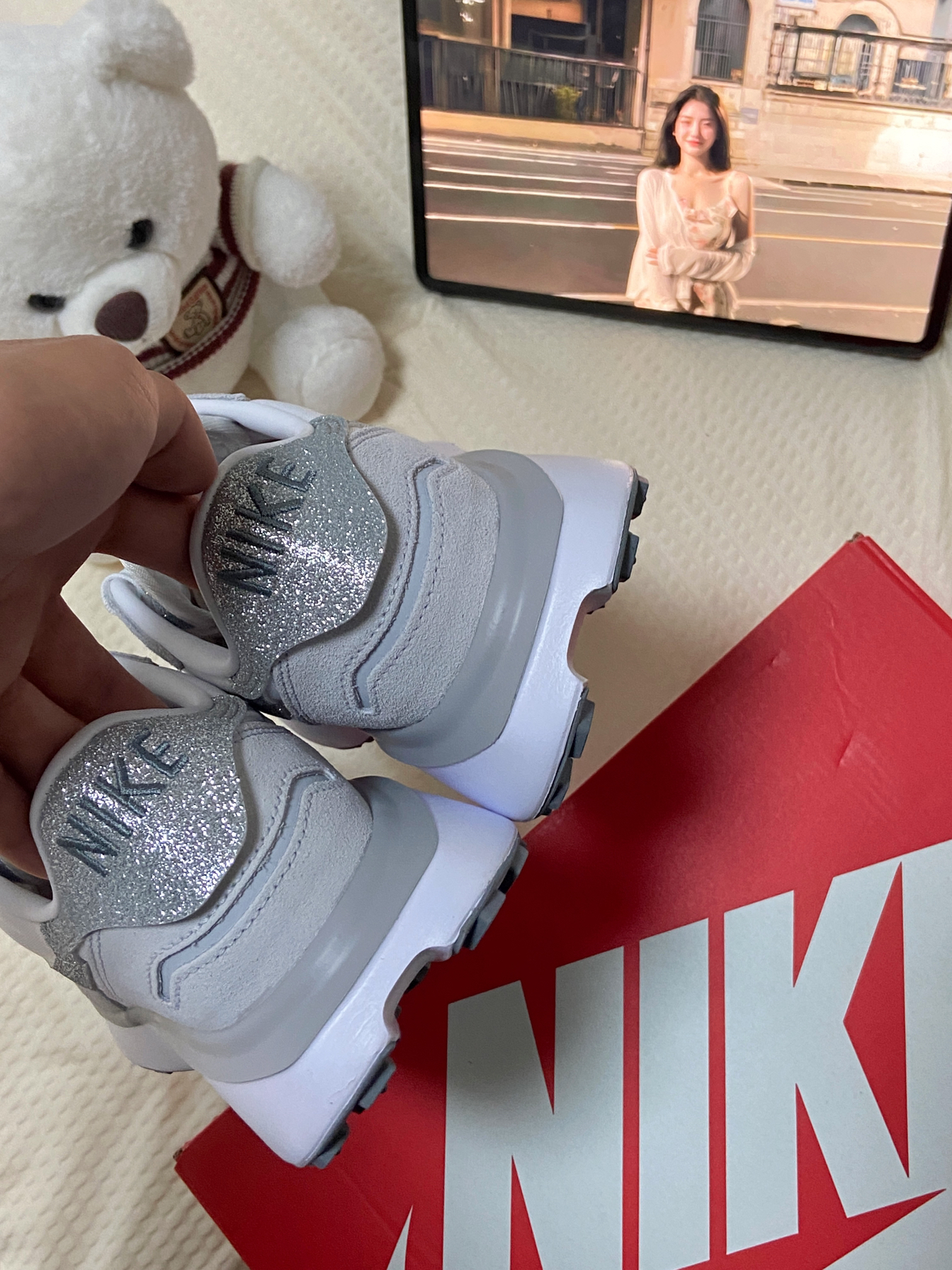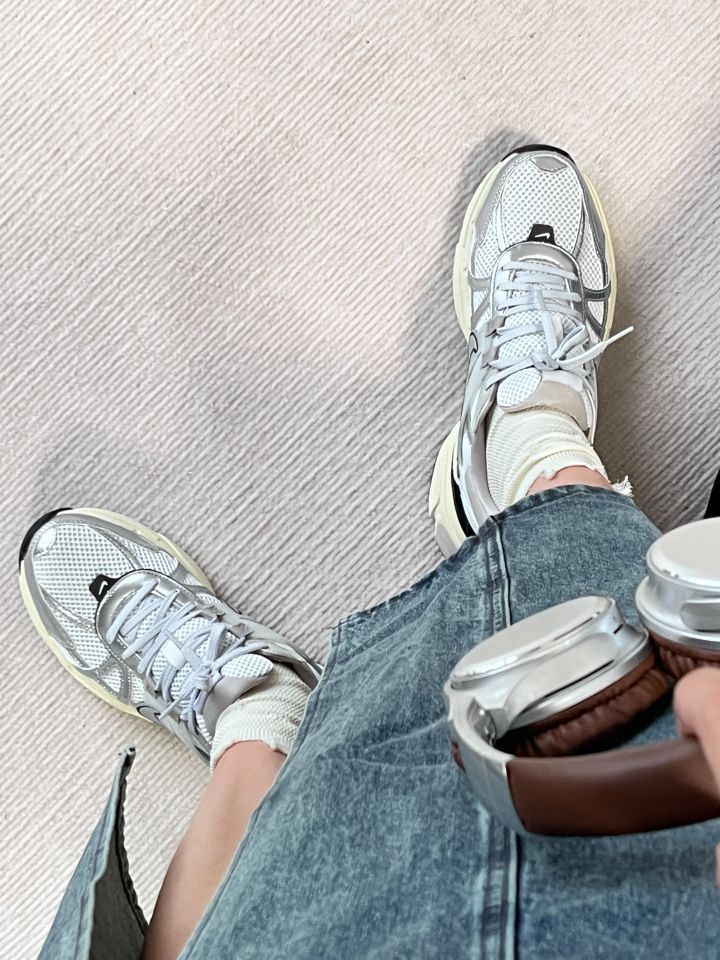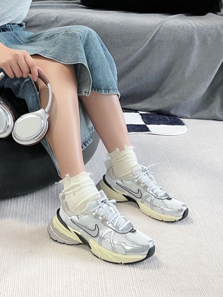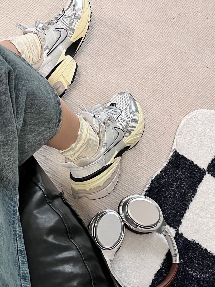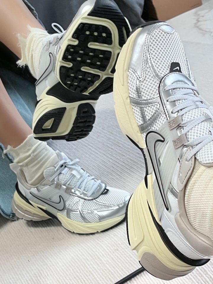 好看!NIKE v2k🎧银色真的好白搭 #Nike 这双v2k 银色配米色果真是百搭公式🤘 上脚率很高配什么裙子裤子都好看 鞋底很软很弹 运动啥的完全不担心👟 鞋面略扁 我喜欢大半码的脚感 码数:平时穿38,这双38.5很舒服#实穿女鞋怎么选 #今日好鞋分享 #耐克V2k