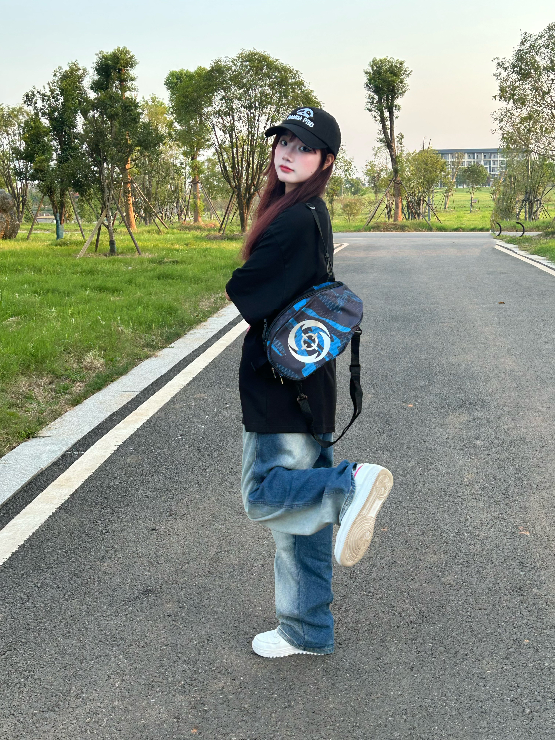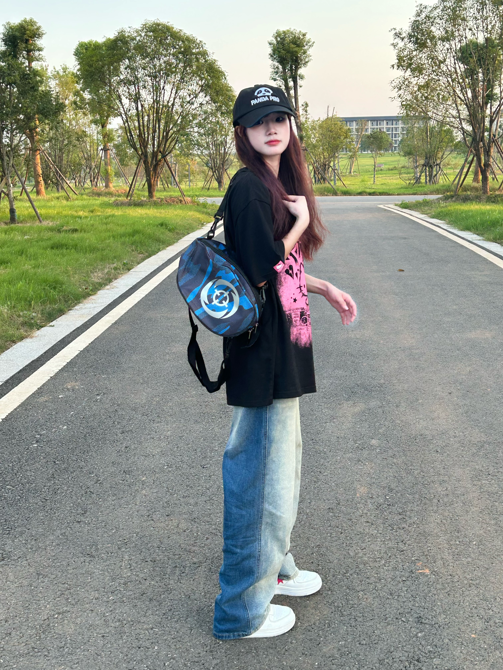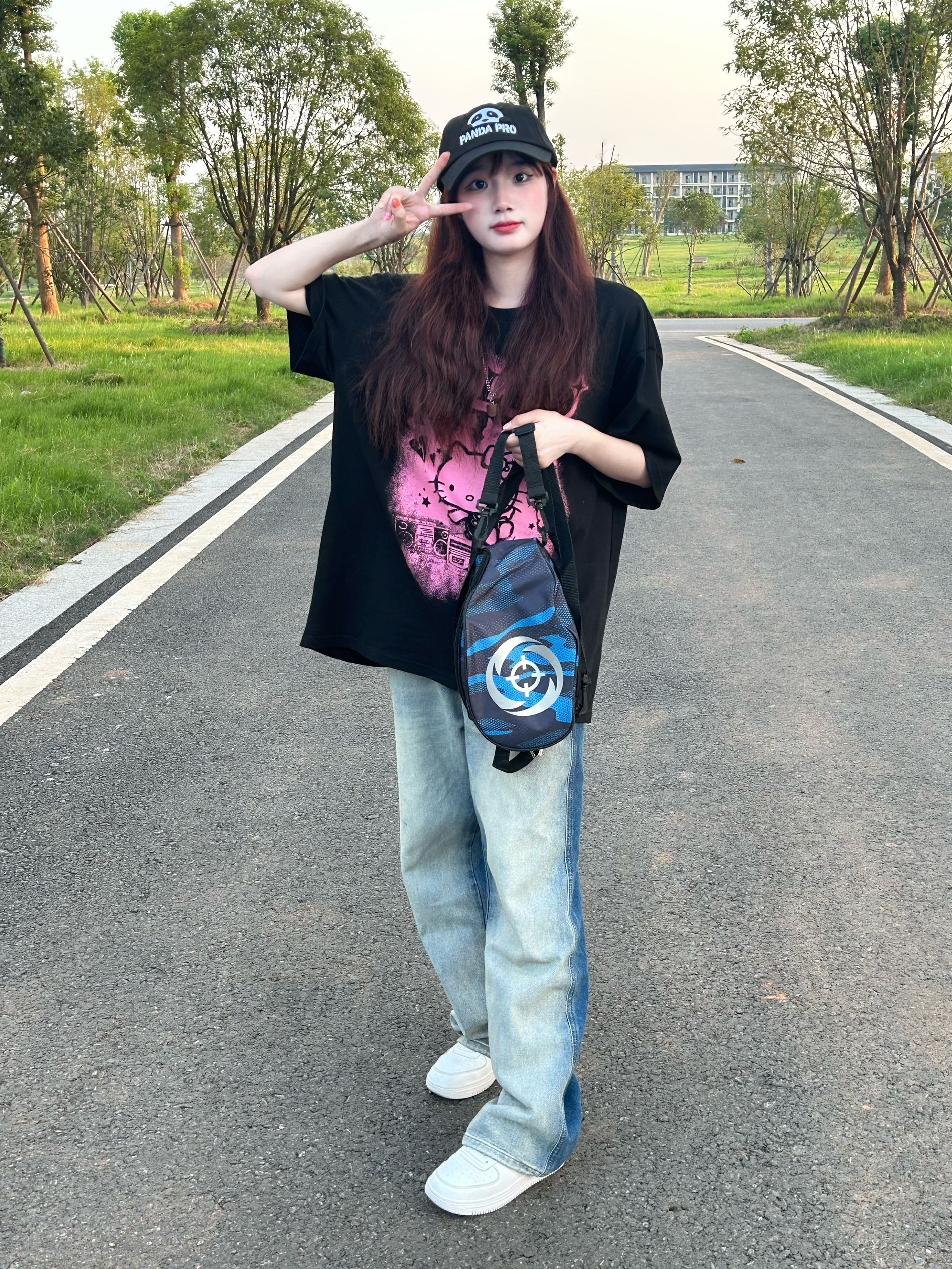 今天穿什么 今天穿 黑色卡通短袖 ➕ 蓝色牛仔裤 ➕ 黑色棒球帽 ➕ 准者🌟RIGORER 旋风🌀系列 这款篮球包真的泰酷啦 款式还是 彩色印花 一整个时尚感满满呀 双侧网兜➕拉链式 真的泰适合运动背啦 运动背什么 就背这款包包
