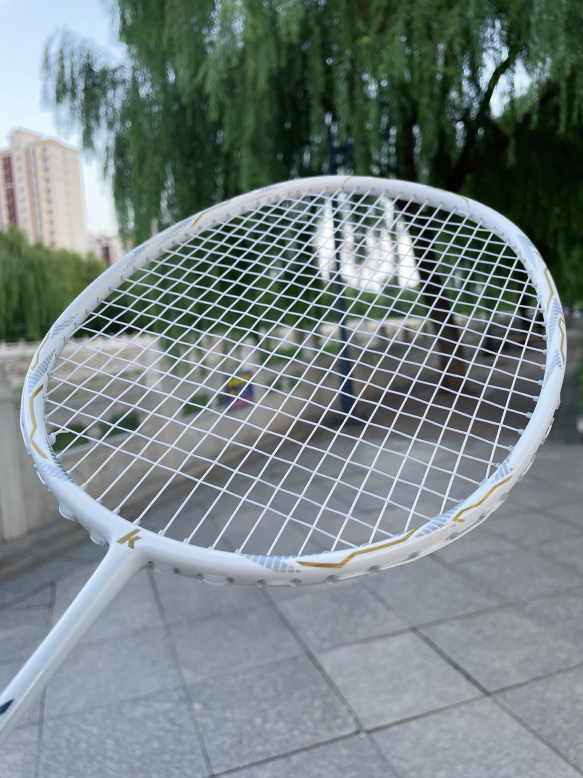 拉着女朋友入了羽毛球坑,练了几天,球技没咋长,光让我给她买装备了😂 这不,刚给她买了这支川崎的利刃5U,她高兴的不得了,白金配色确实很漂亮,看起来高端大气 拍子很轻,很适合新手,百来块的价格也不高,喜欢的朋友可以入了😃
