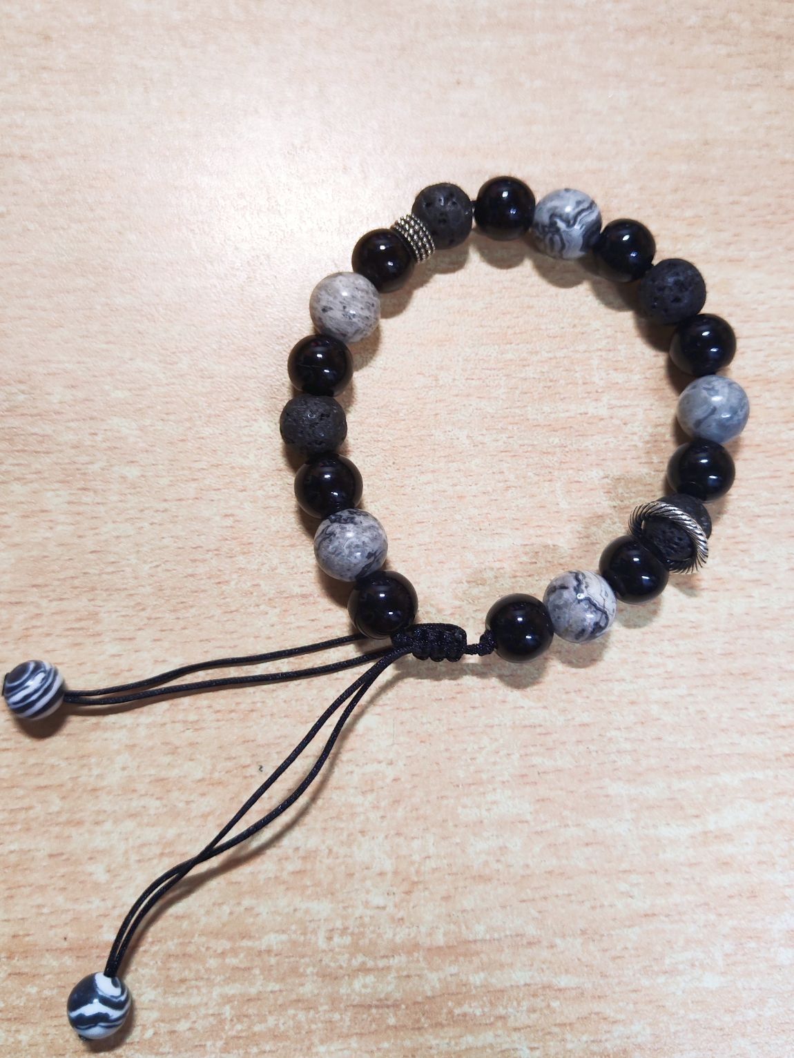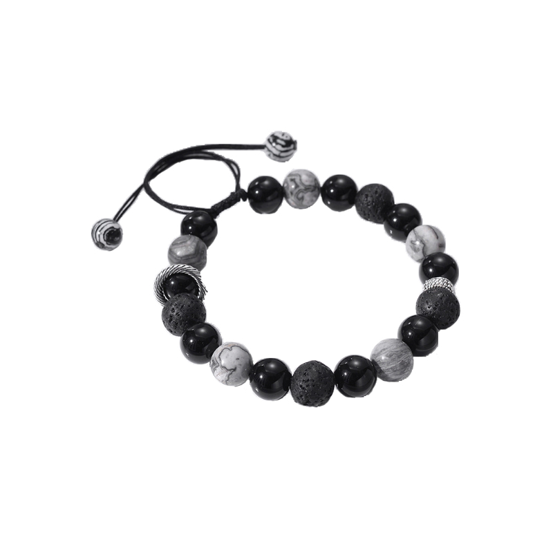 有一种黑莲花的感觉 很喜欢酷中又带点清冷的感觉 火山石搭配星球和黑曜石也不会单调