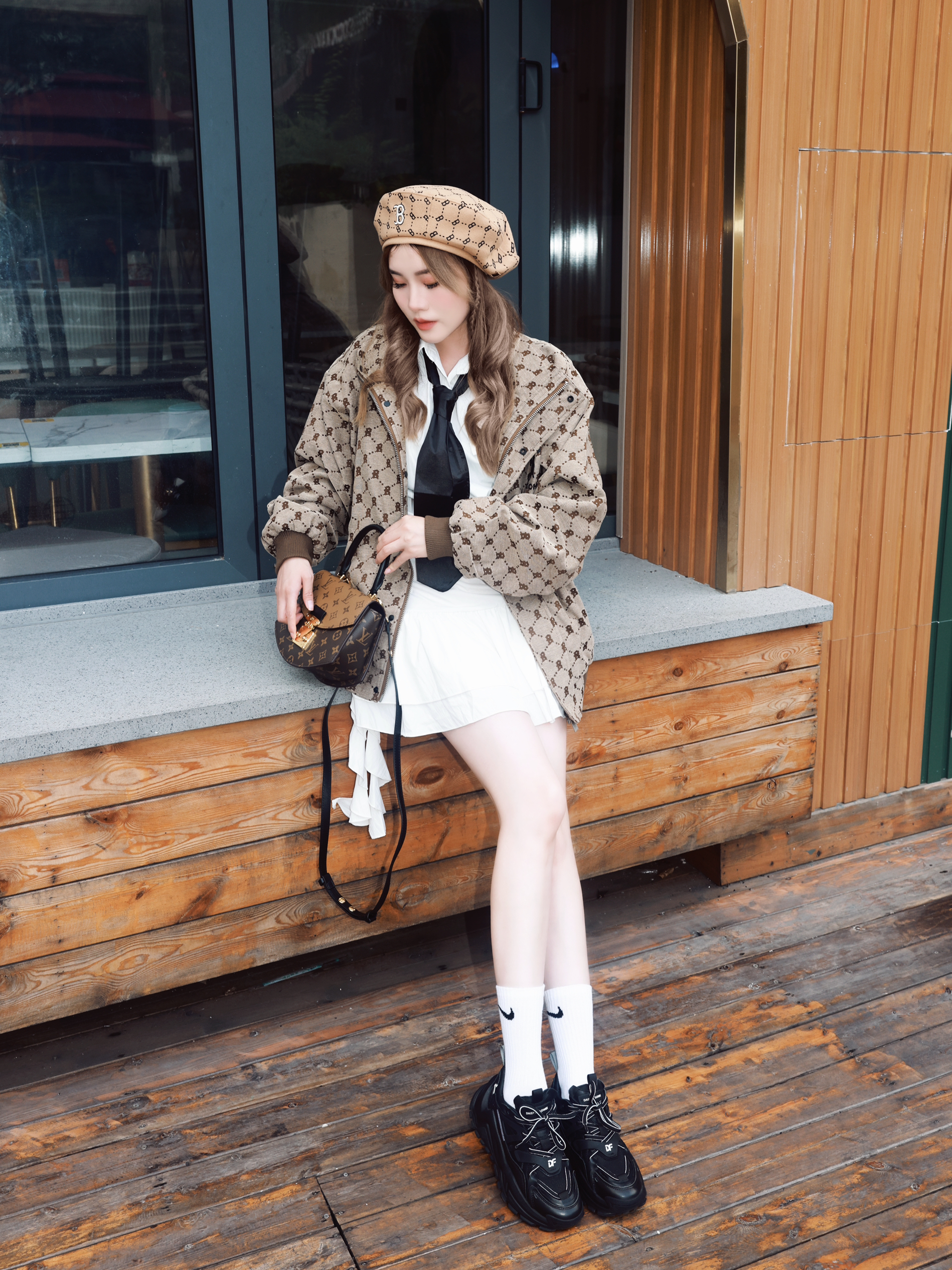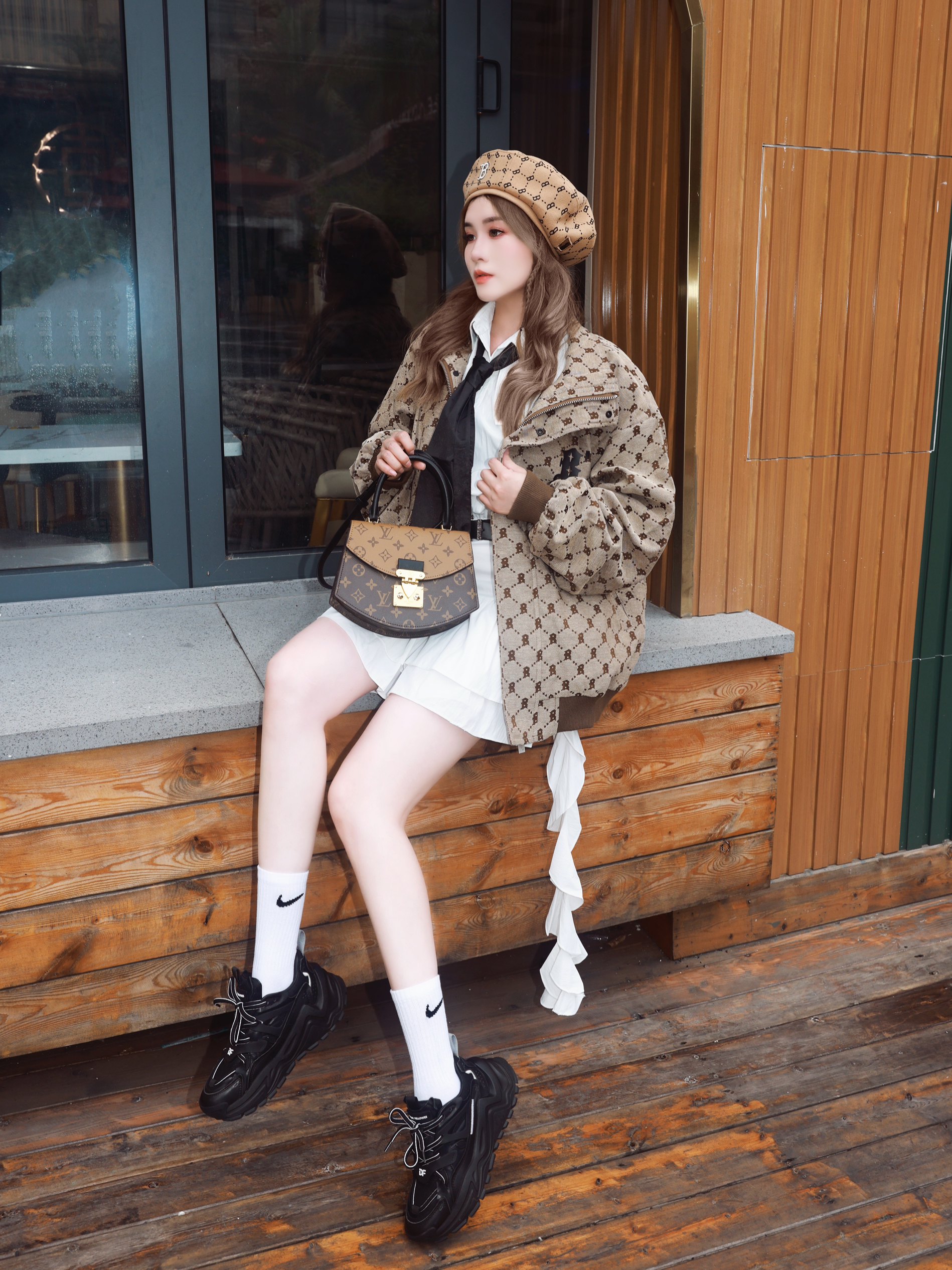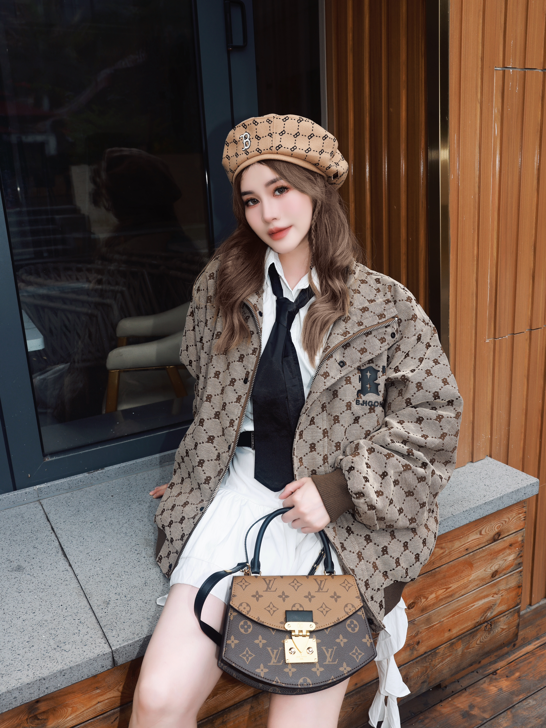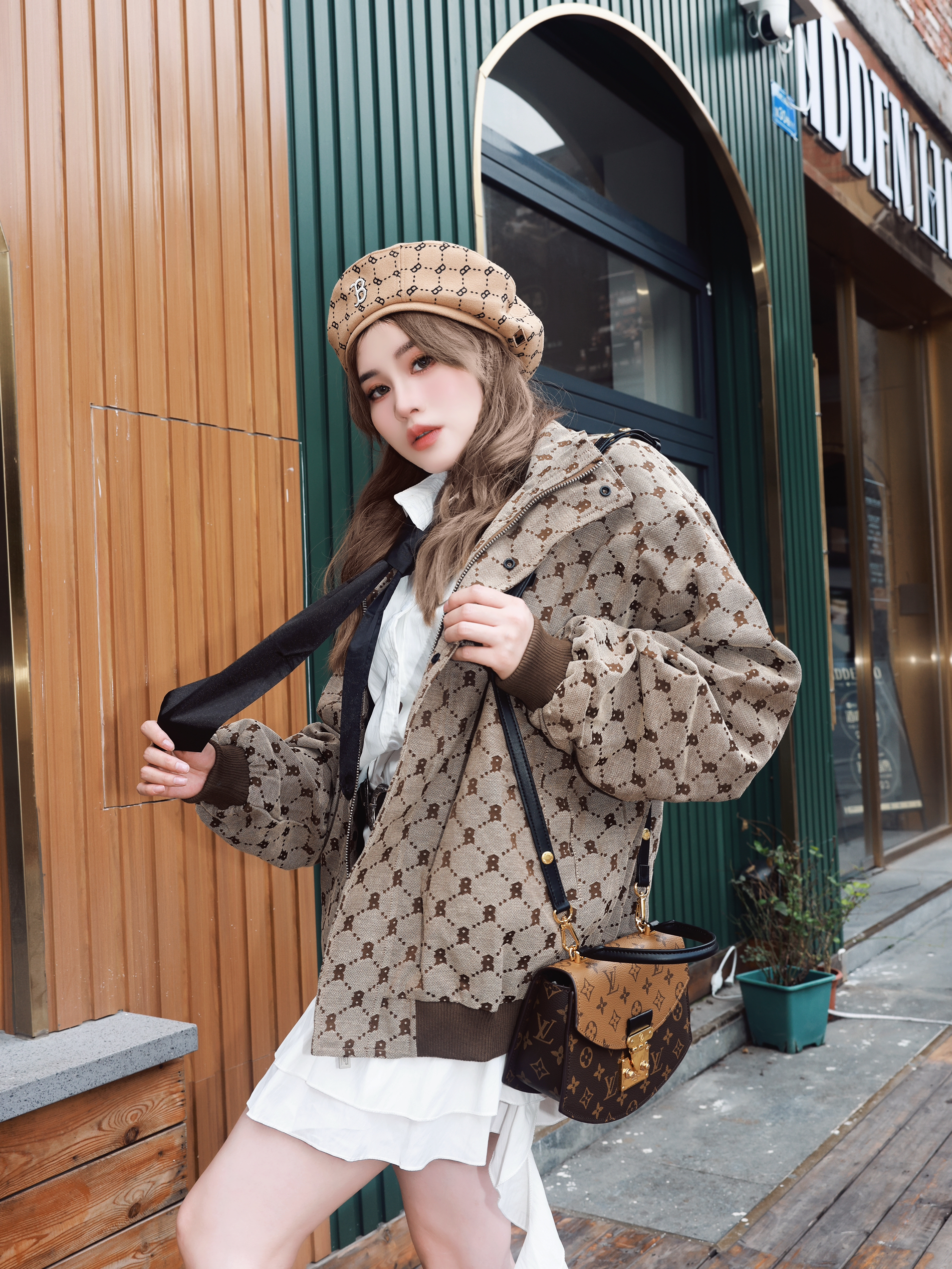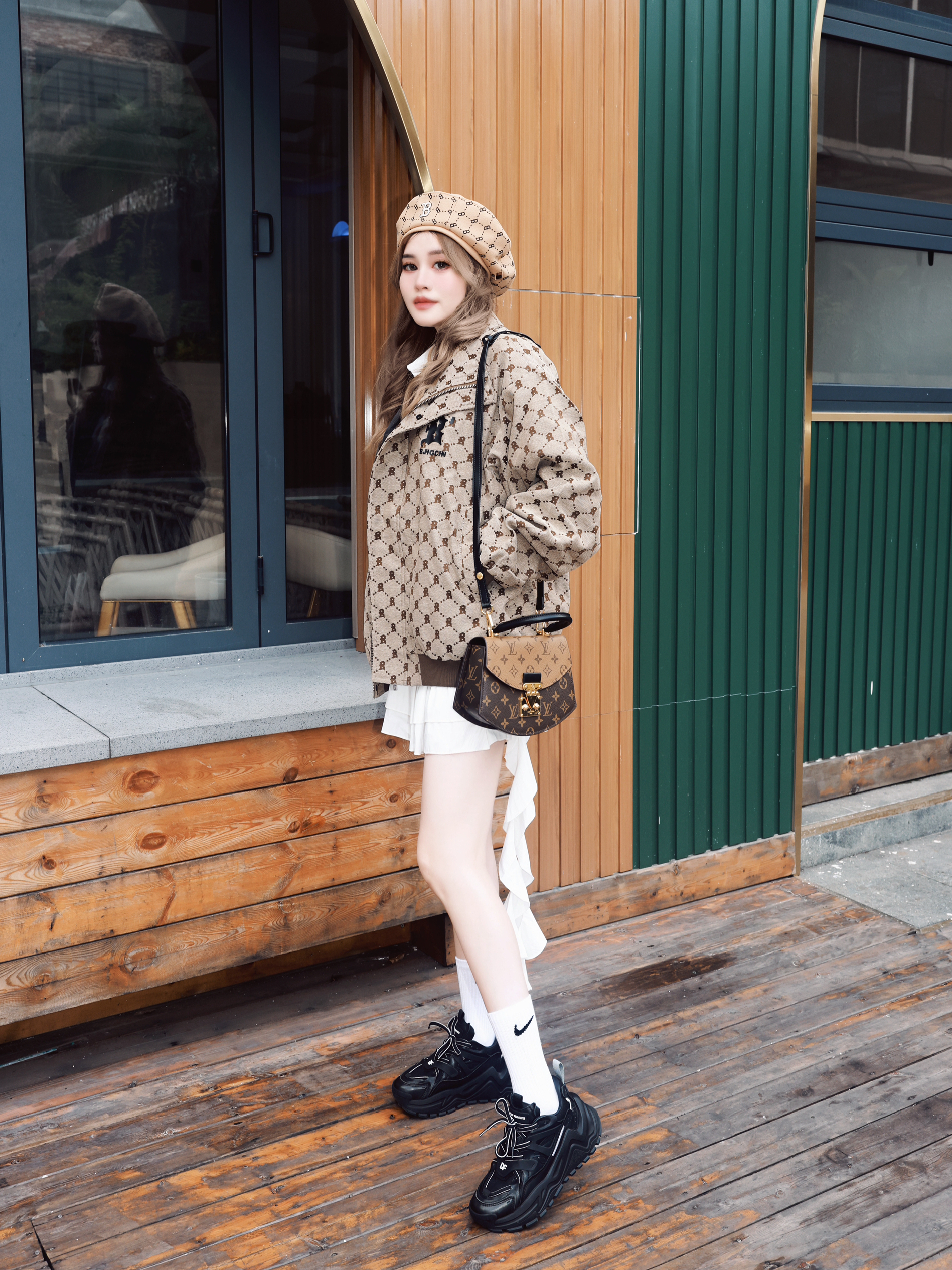 以棕咖色为主色调的穿搭 才是枯燥秋日的亮点呀! - 复古老钱风的外套做了满是印花的设计 融合了精致的刺绣 加上棕咖调的配色 上身叠穿时尚高级感真的巨足! - 同色系的贝雷帽是秋日的气质单品 经典logo印花点缀辨识度超高的 佩戴起来一秒修饰脸型 轻松get超浓郁的秋日氛围哦。 - 最后就是我休闲运动潮鞋和老花包啦 纯黑简约风的厚底鞋百搭性超强的 日常驾驭起来适配度很高! 满是印花的包包就比较精致小...
