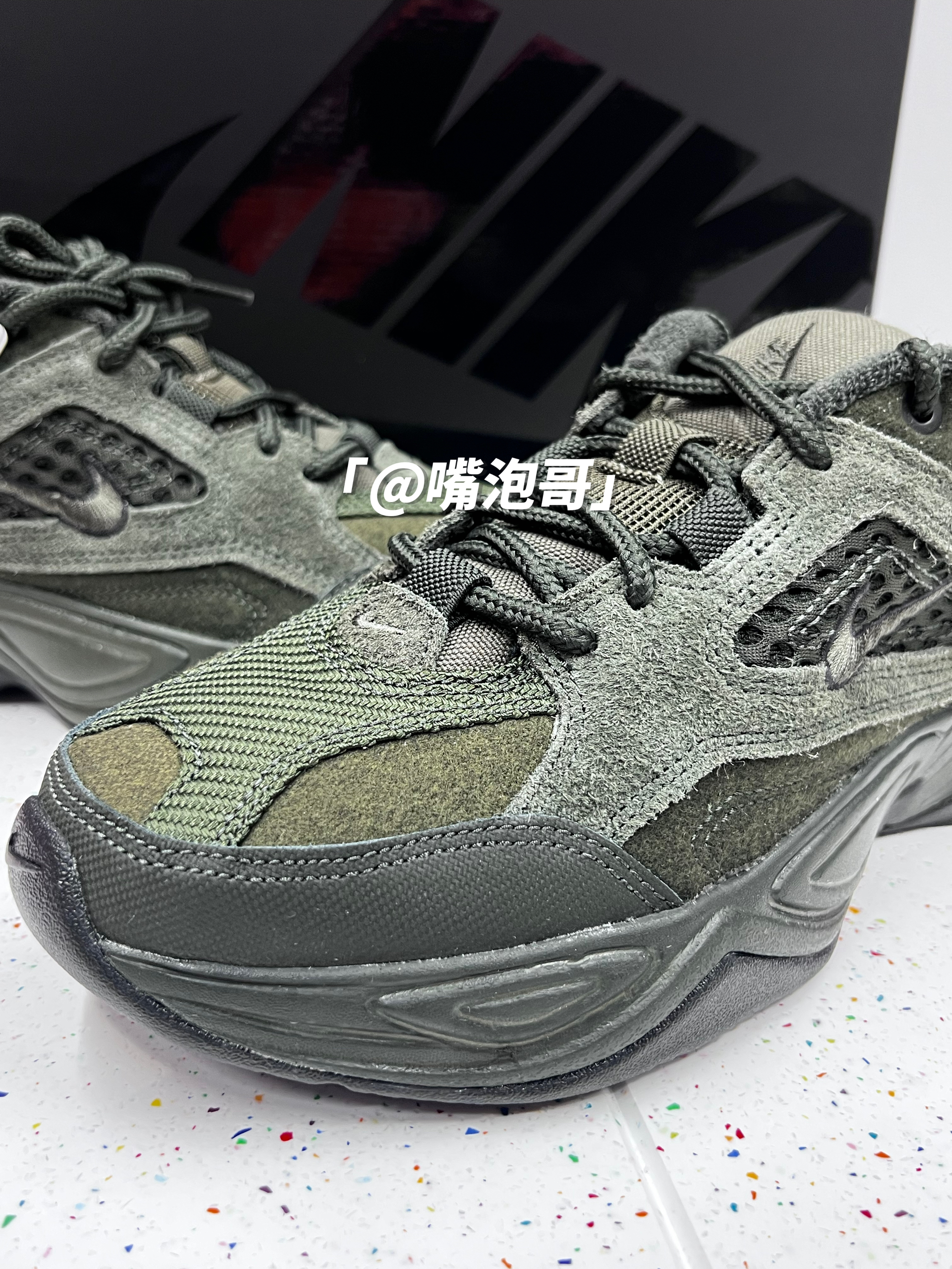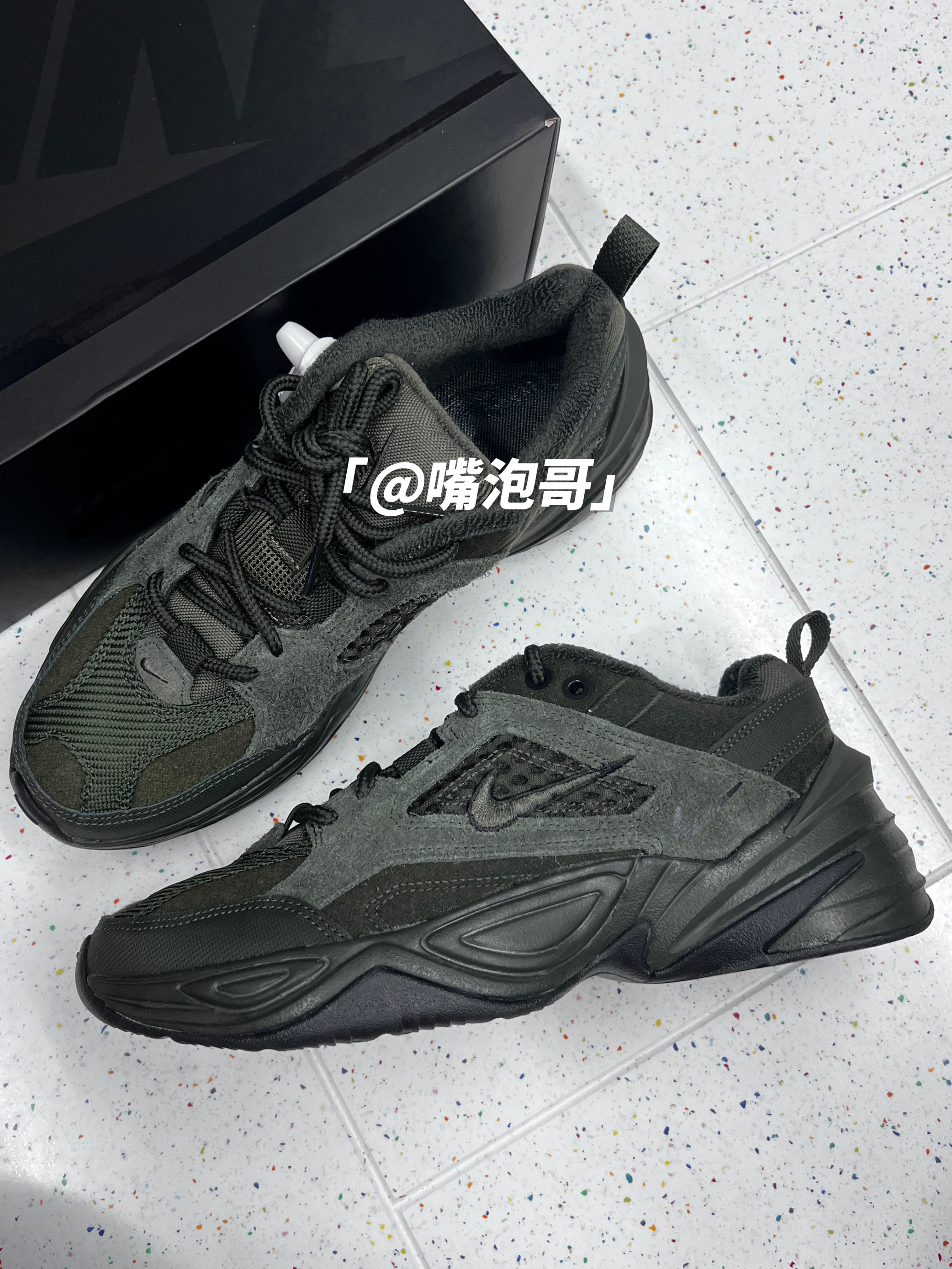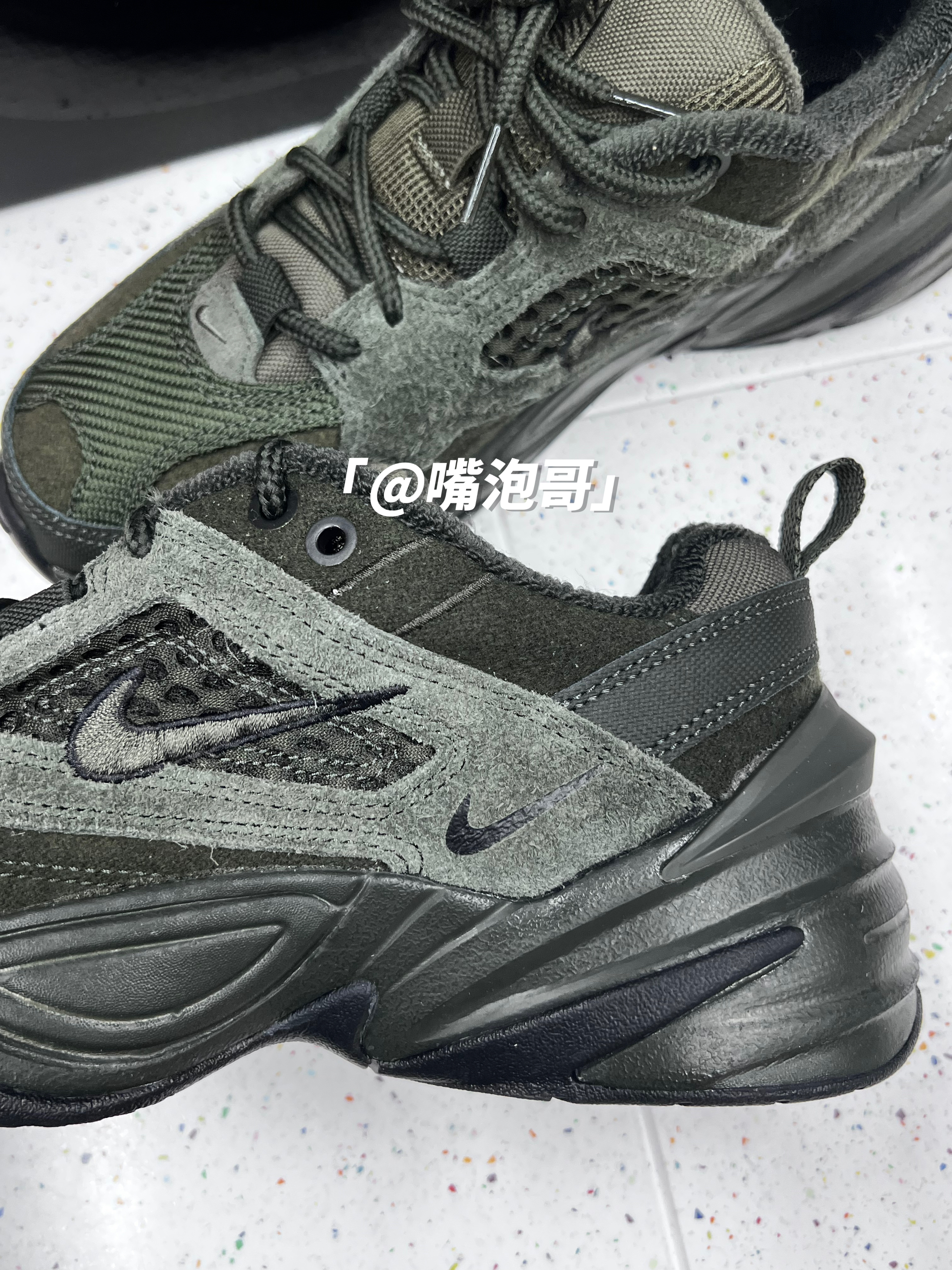 👟:M2K Tekno SP Sequoia 橄榄绿 简介: 这款是比较受欢迎的M2K 老爹鞋,鞋子还是比较适合秋冬季的穿搭,此款选用了橄榄绿来做为主色调,外型上依旧延续了老爹鞋的宽大设计,同时还具备4公分左右的增高效果。 细节: 鞋面选用了工程帆布、麂皮以及织物材料拼接而成,鞋面具有较好的耐磨性及质感,两侧装饰了军绿色车线的swoosh刺绣标志,鞋舌及后跟内里均加厚填充,并且用毛巾布...