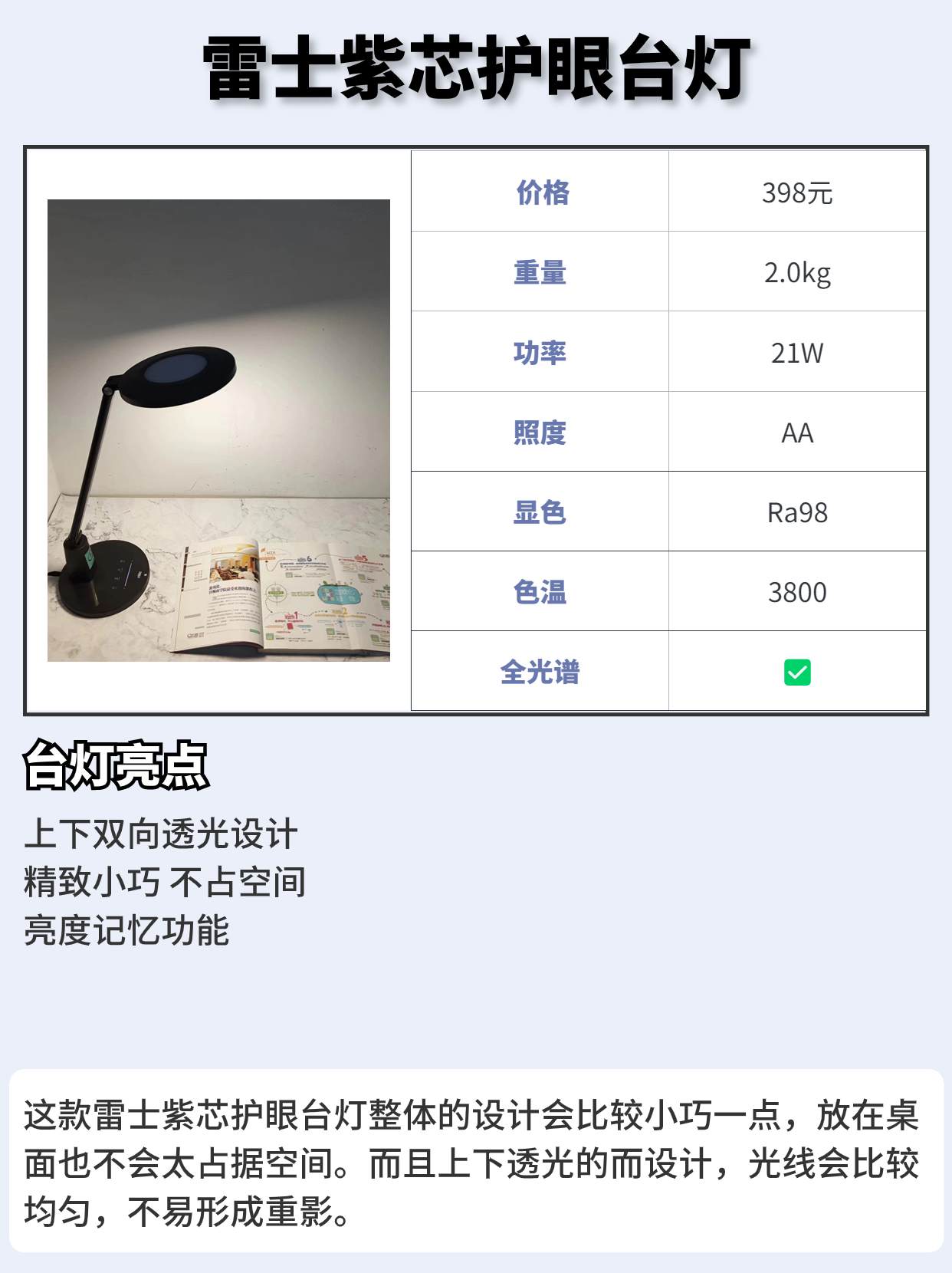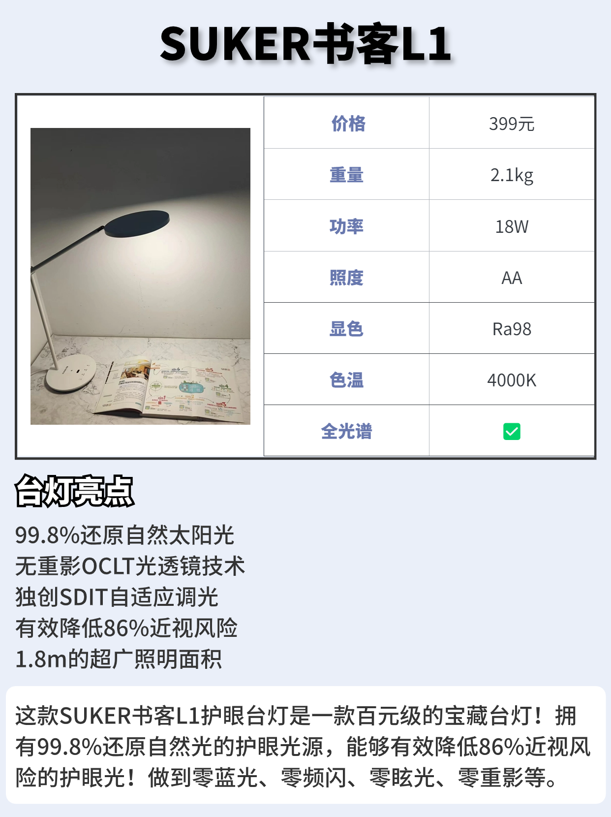 随着开学的到来,学生们又开始进入更高一阶段的学习,学业压力无疑是越来越重的。 为了避免学生在学习的同时,视力健康下降,给孩子提供一个良好的学习用光环境是很重要的! 因此也有很多家长们会选择给孩子购买护眼台灯,不过市面上的护眼台灯种类繁多,想要挑选一款好的护眼台灯也不简单,我总结了几点挑选时的技巧: 🟠1、照度和均匀度 要选择国A或者国AA级别的照度,很多台灯就是因为照度不符合标准要求,所以...