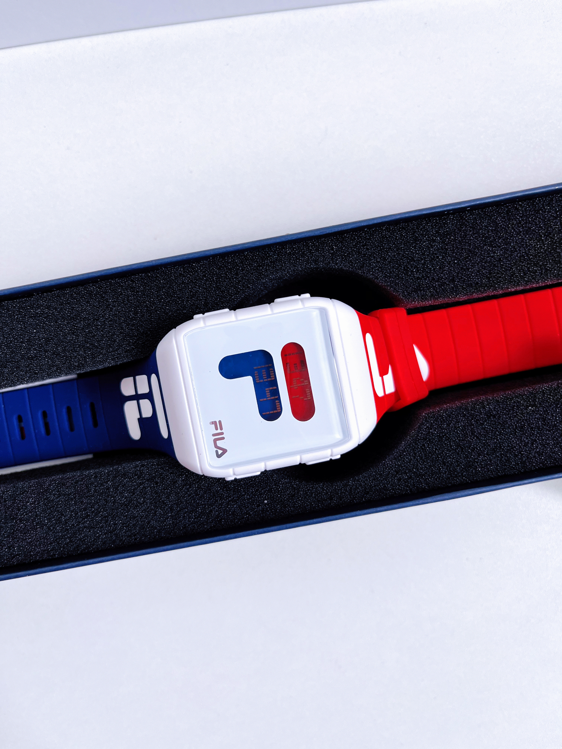 本篇笔记关联了FILA/斐乐 36mm 多时区显示欧美潮流运动防水橡胶表带电子机芯石英男女同款手表 红蓝 FL38-105-005等商品,为用户提供真实的使用体验和购买参考。