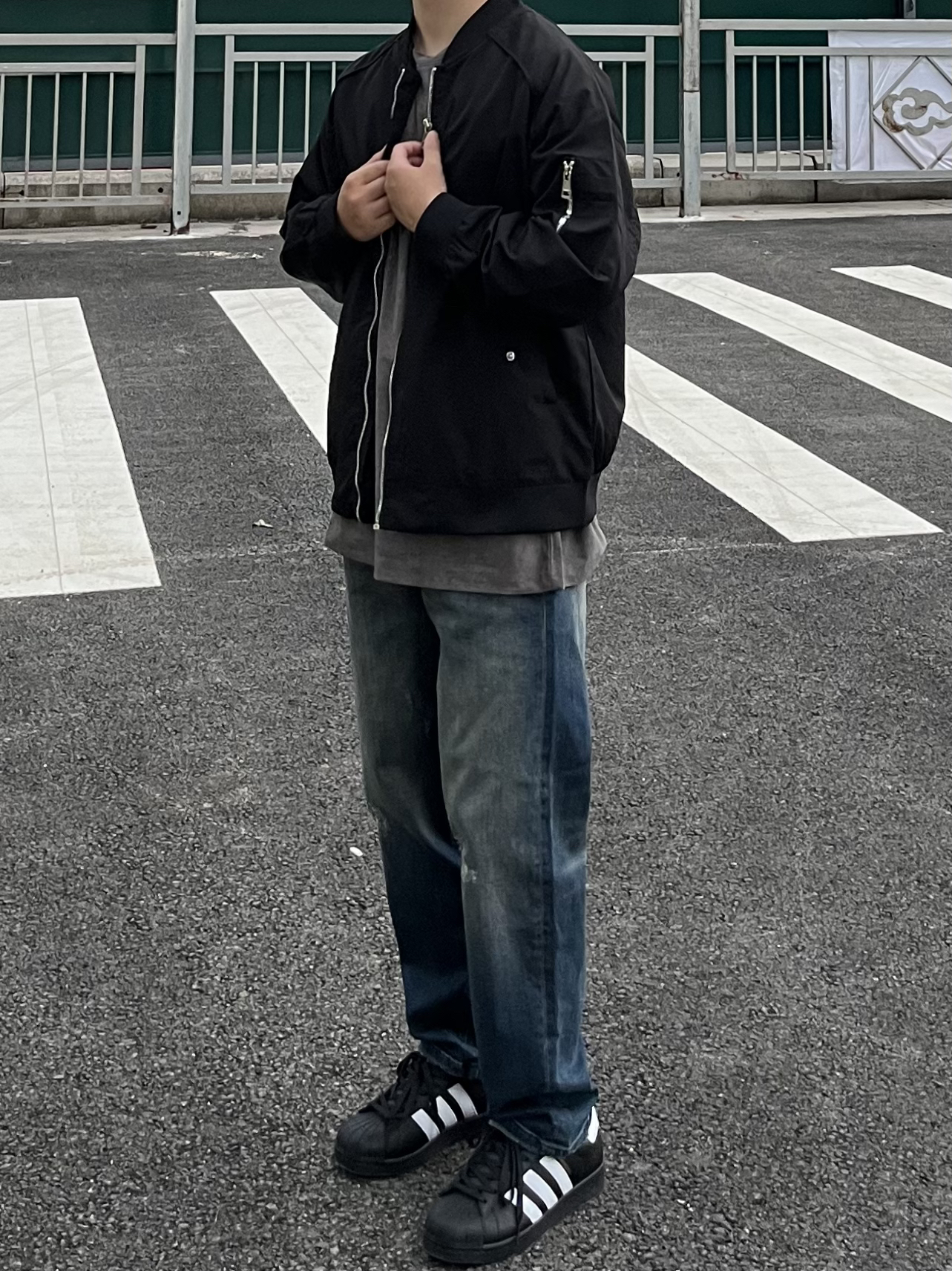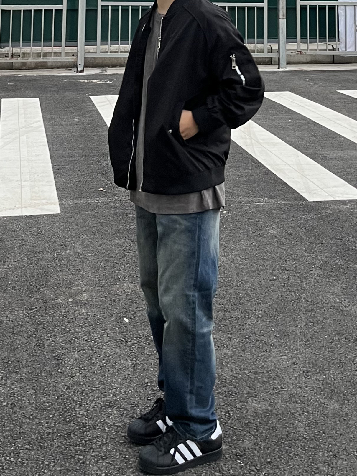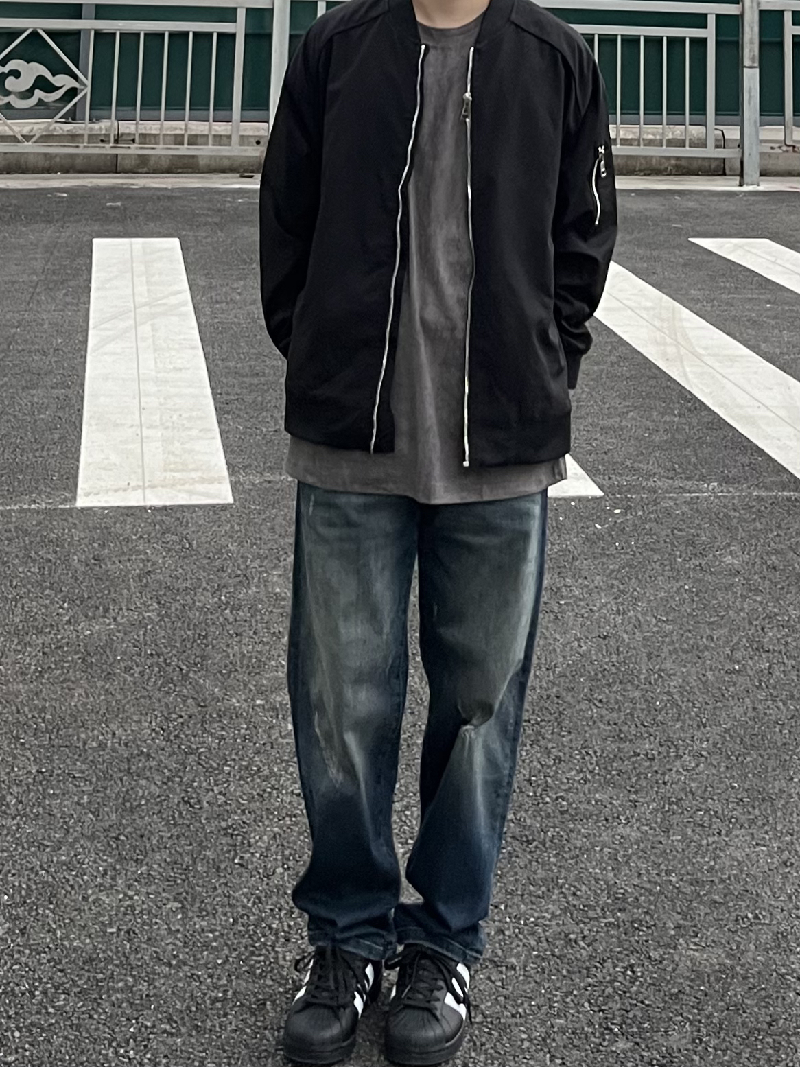 -今日穿搭分享🤓 ——————————— 🙋🏻♂️:170/ 110 · 👔:igoi夹克🥷🏻 · 👖:23r复古小破洞阔腿牛仔裤✔️又挖到复古宝藏牛啦!这次颜色更加美式复古一点,到手真的很有质感👋🏻很上镜!恰到好处的破洞设计真的很🆒!日常不浮夸✌🏻直筒宽松的版型修饰🦵腿型很绝😀复古美式风谁穿谁好看! · 👟:adidas黑贝壳🐚 ———————————— -以上都是个人观点🥝欢迎讨论