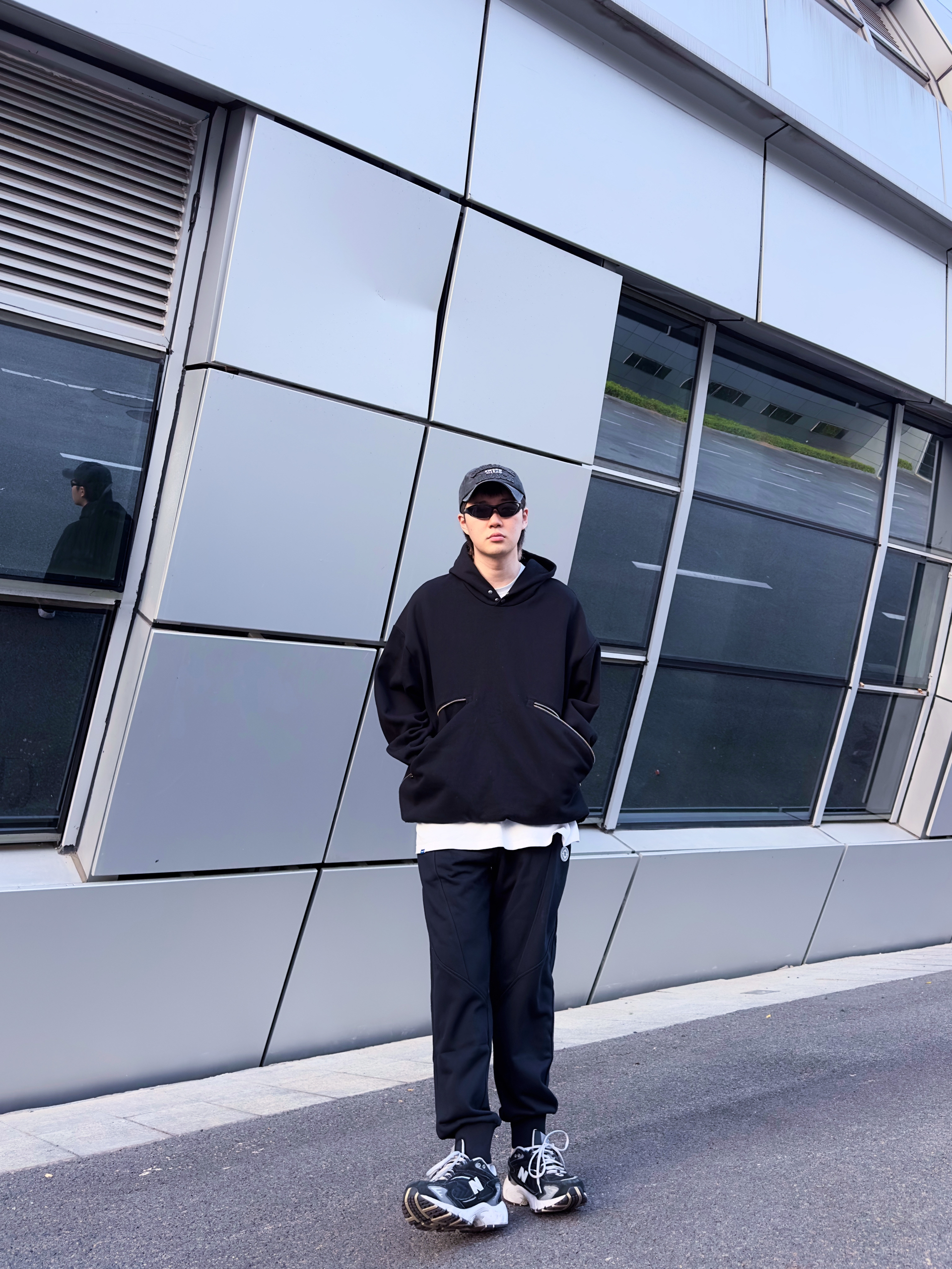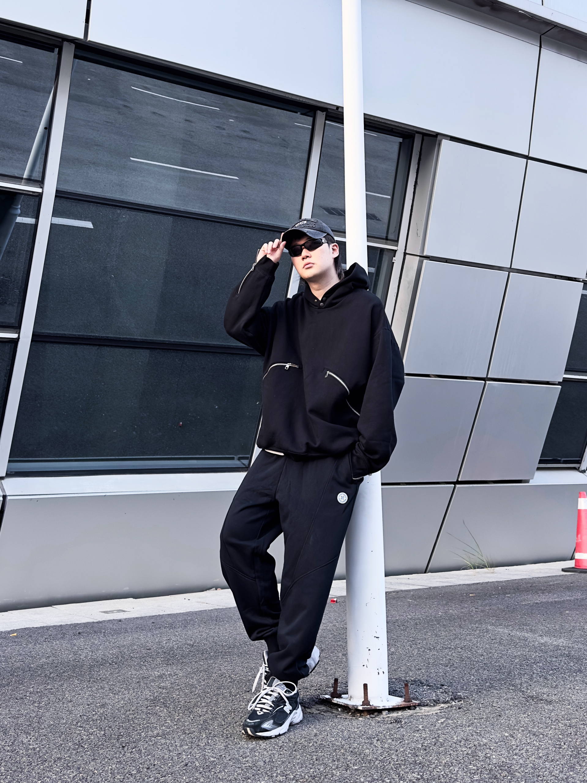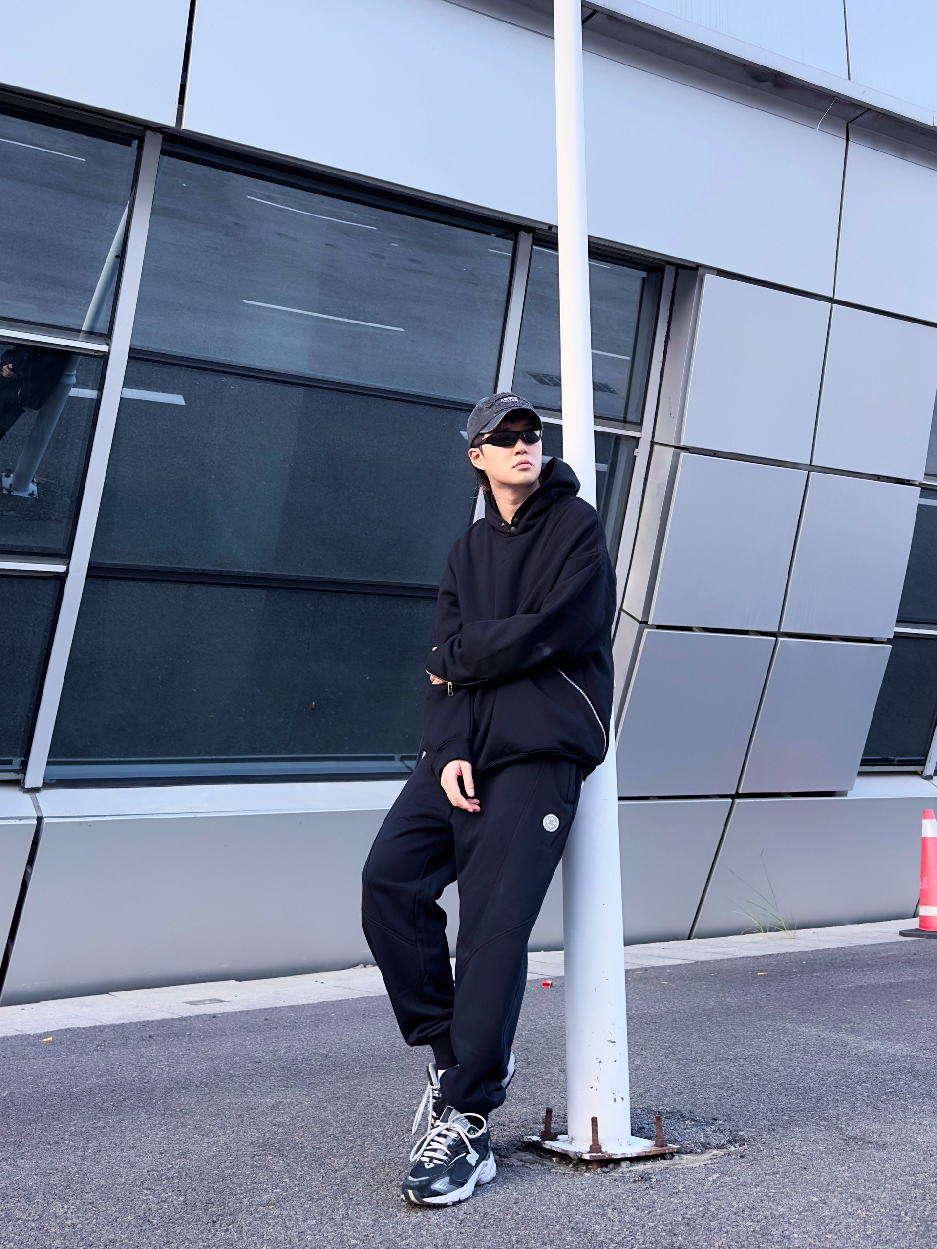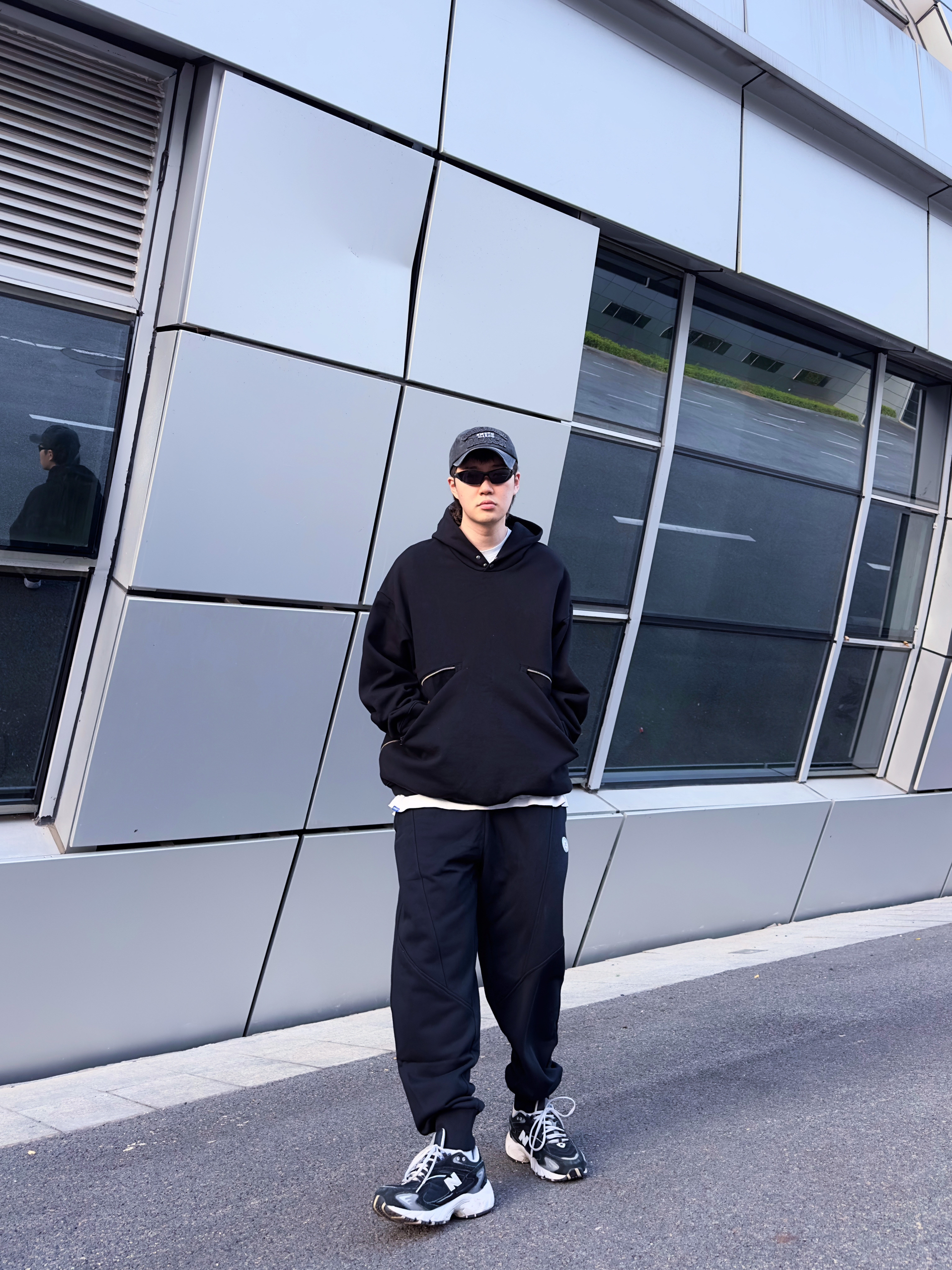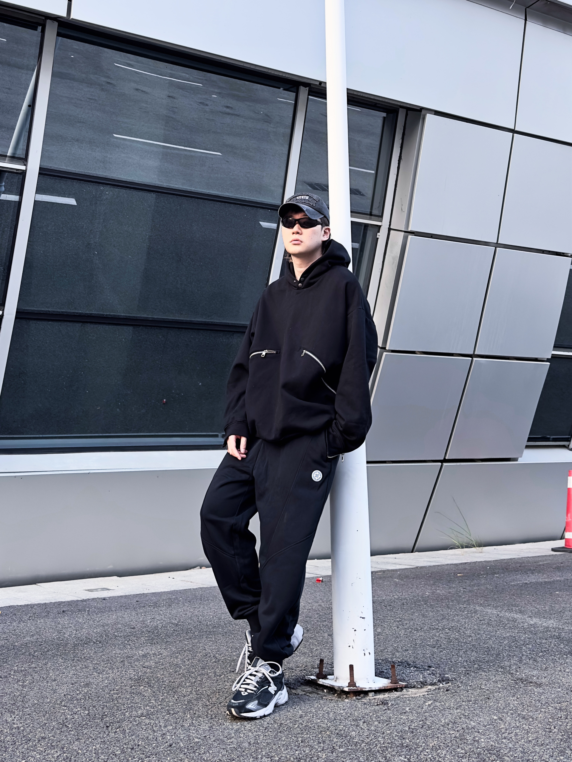 180 140 不喜欢穿太复杂的男生有福了! 相信很多男生都很喜欢一身黑!至少我是! 一身黑的穿搭真的很吃版型 这套上宽下窄,既休闲又不显得浮夸。 帽子 灵魂对撞 卫衣 灵魂对撞 裤子 准者射线卫裤