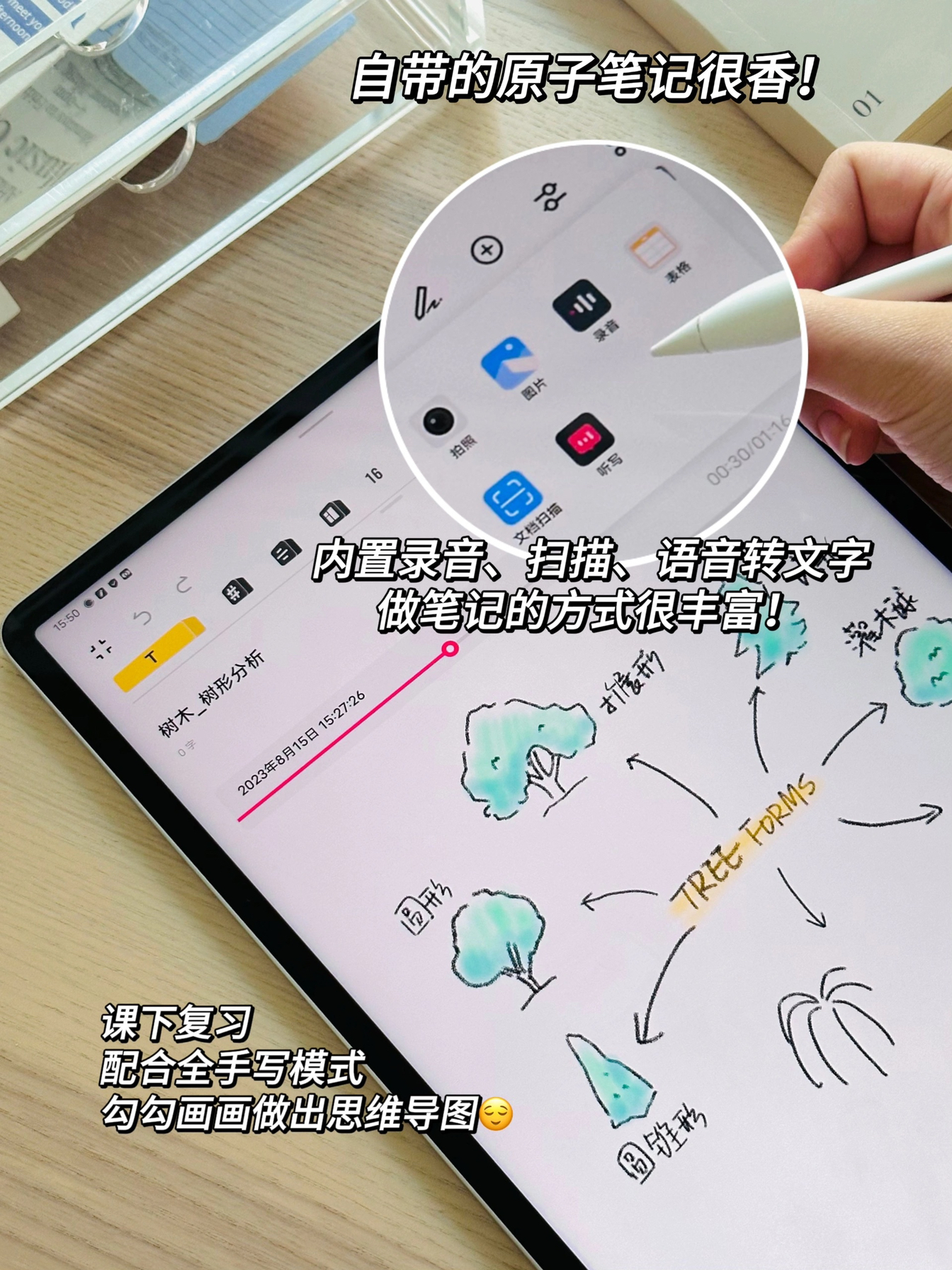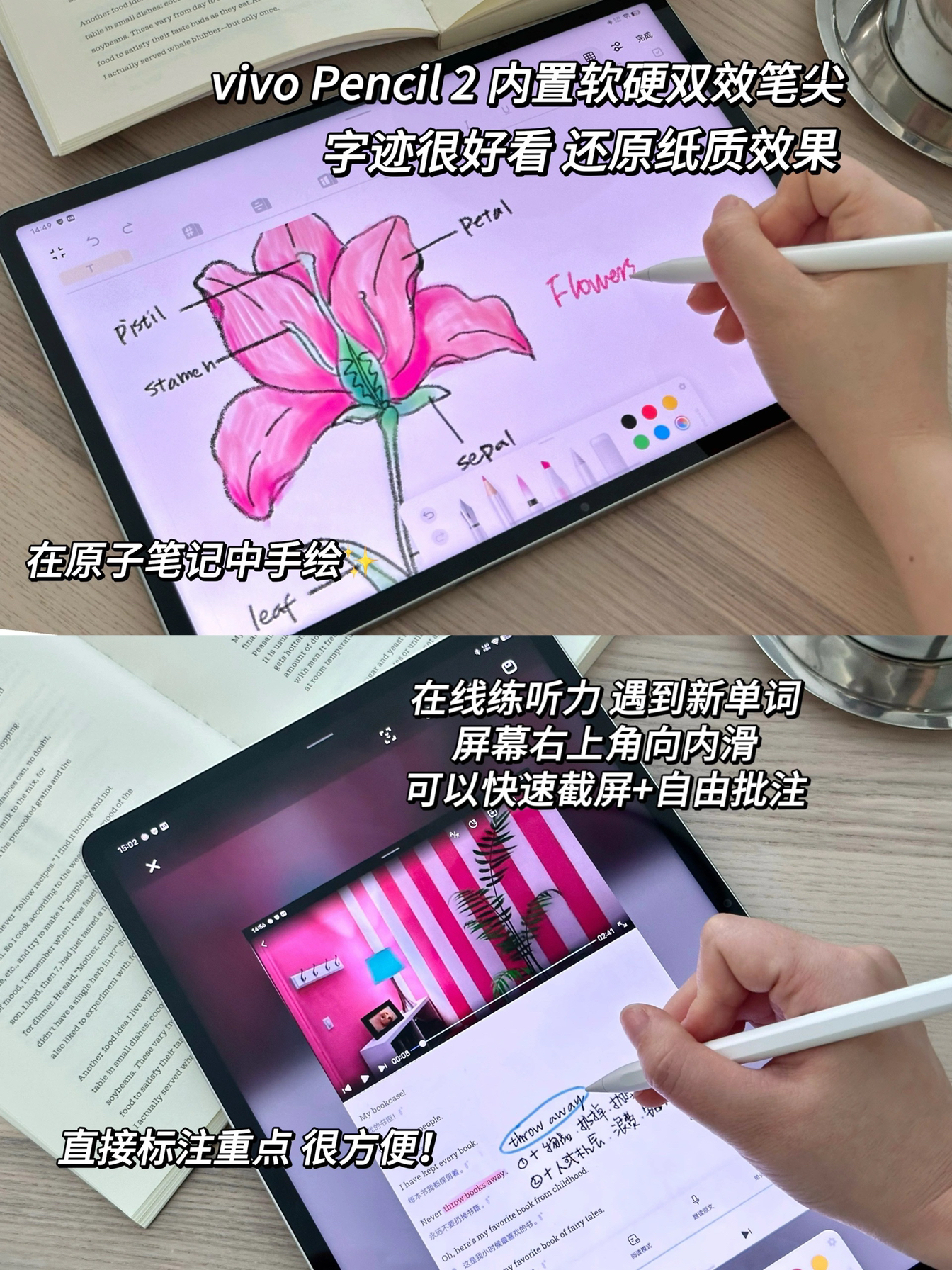 我对vivo的印象是:很懂用户!这次的vivo Pad Air同样功能强大、价格亲民、颜值出众~ 总结了平板中适合学习的“心机功能”: ❶vivo Pencil2+全局标注 搭配手写笔妥妥生产力,右上角向内滑,调出「全局标注」,不管在什么页面,都可以通过「全局批注」记录灵感 ❷原子笔记 ·全新手写模式,配合vivo Pencil2 在笔记中增加涂鸦 ·笔记支持边录音边书写,适合备份上课内容,下课根...