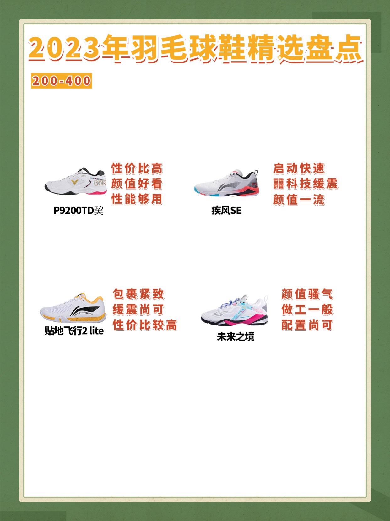 本篇笔记关联了李宁 贴地飞行2 PRO 羽毛球鞋 训练鞋 系带高回弹防滑耐磨耐久碳板支撑稳定合成革织物专业比赛 鸳鸯、【戴资颖同款】VICTOR/威克多 稳定类P9200 羽毛球鞋 稳定支撑 高配 包裹性 白色等商品,为用户提供真实的使用体验和购买参考。