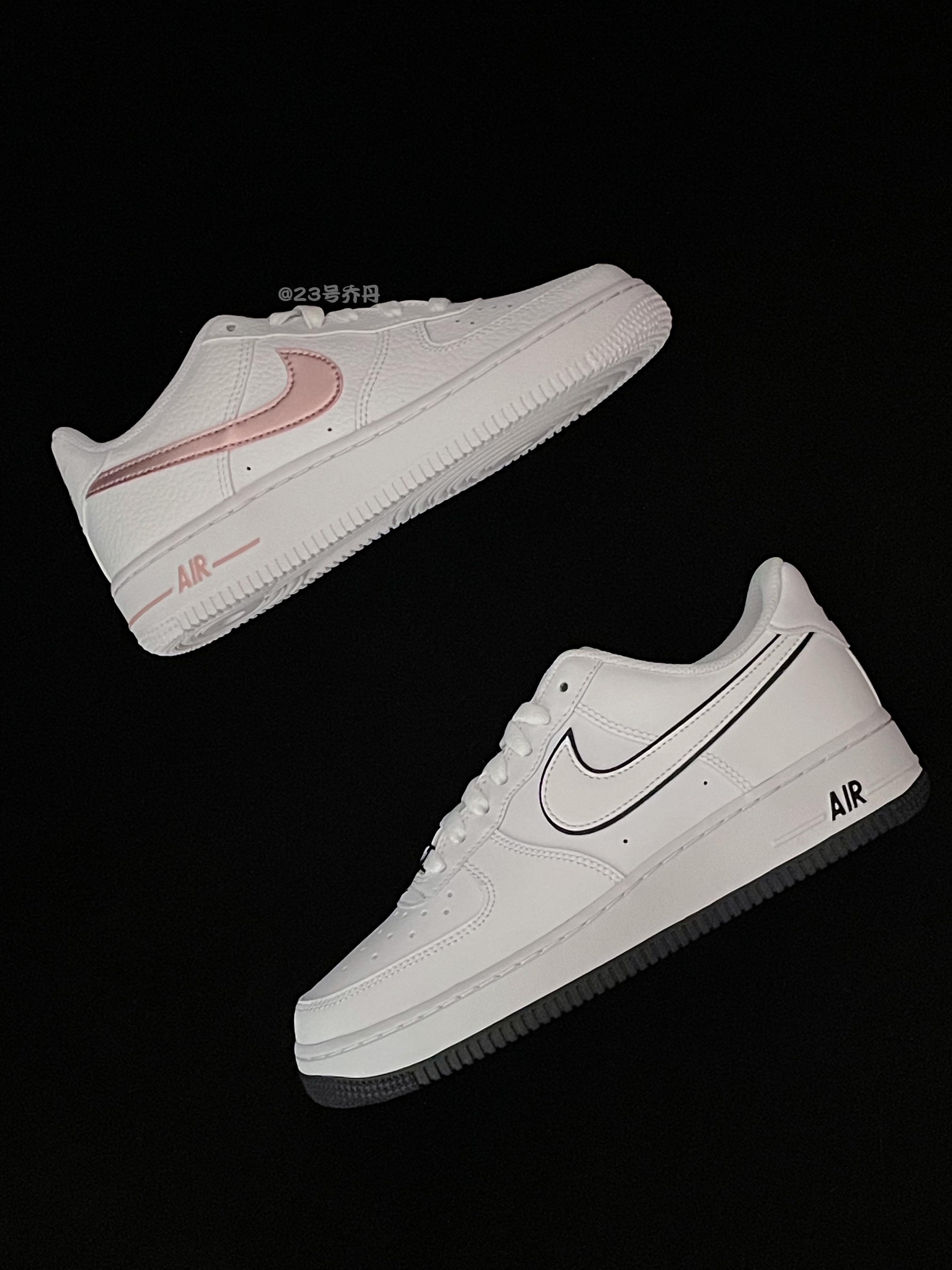今天给大家分享两双适合搭配情侣👫鞋👟的 Nike Air Force 1 Low『白黑』&『白粉』 🌟『白黑』以白色为主色调 细节部分运用了黑色点缀 鞋面选用了易于打理的光滑皮革材质 鞋侧黑色+白色层叠设计的Swoosh颇为吸睛 白色的中底和黑色多纹路橡胶底收尾 🌟『白粉』同样以白色为主色调 细节部分运用了粉色进行点缀 鞋面选...