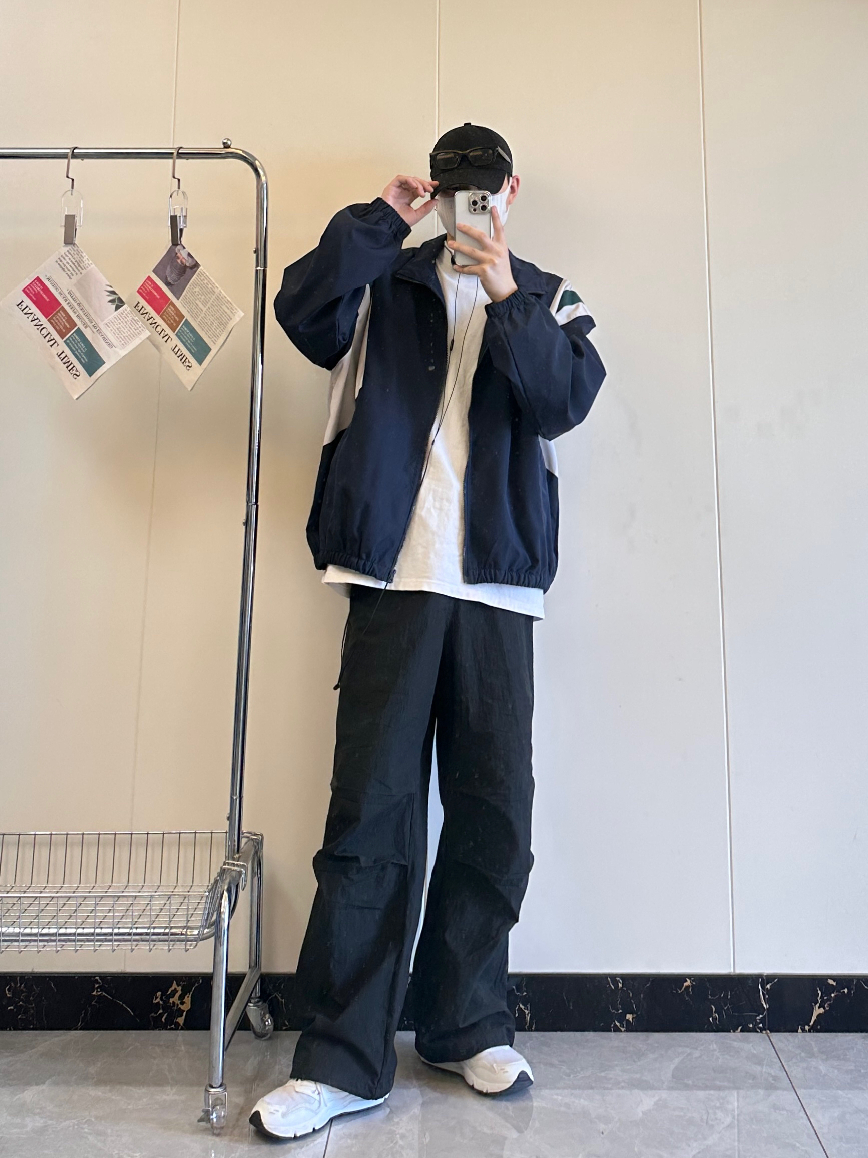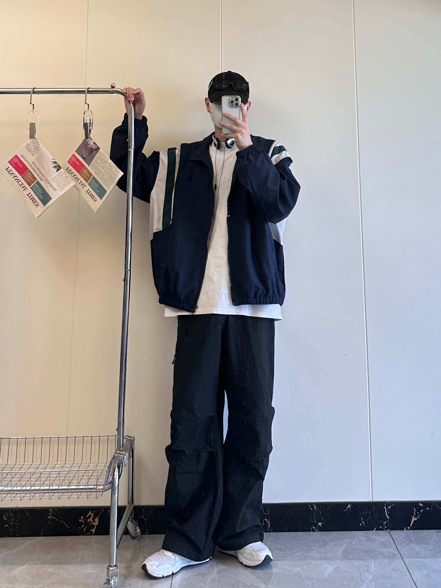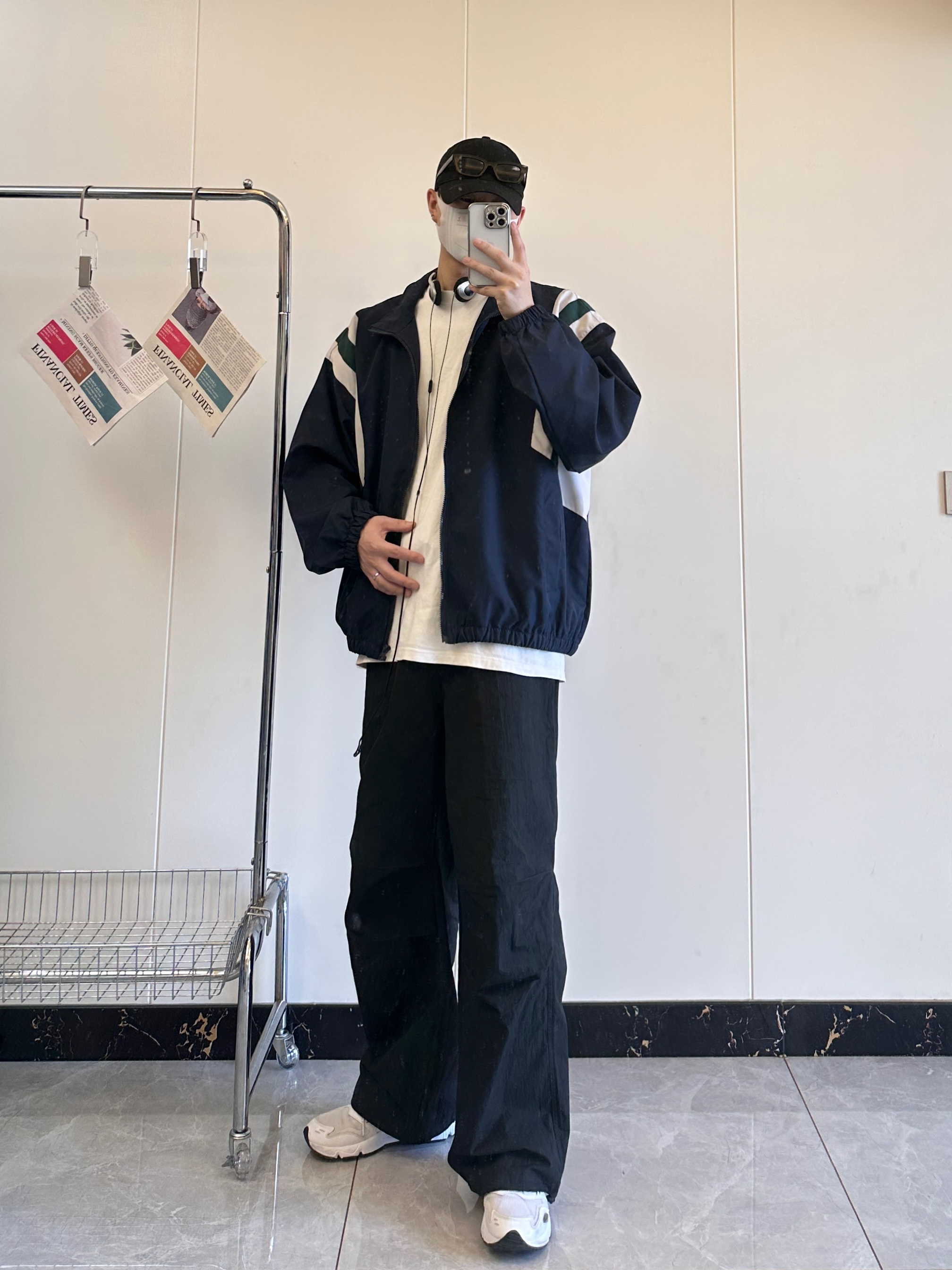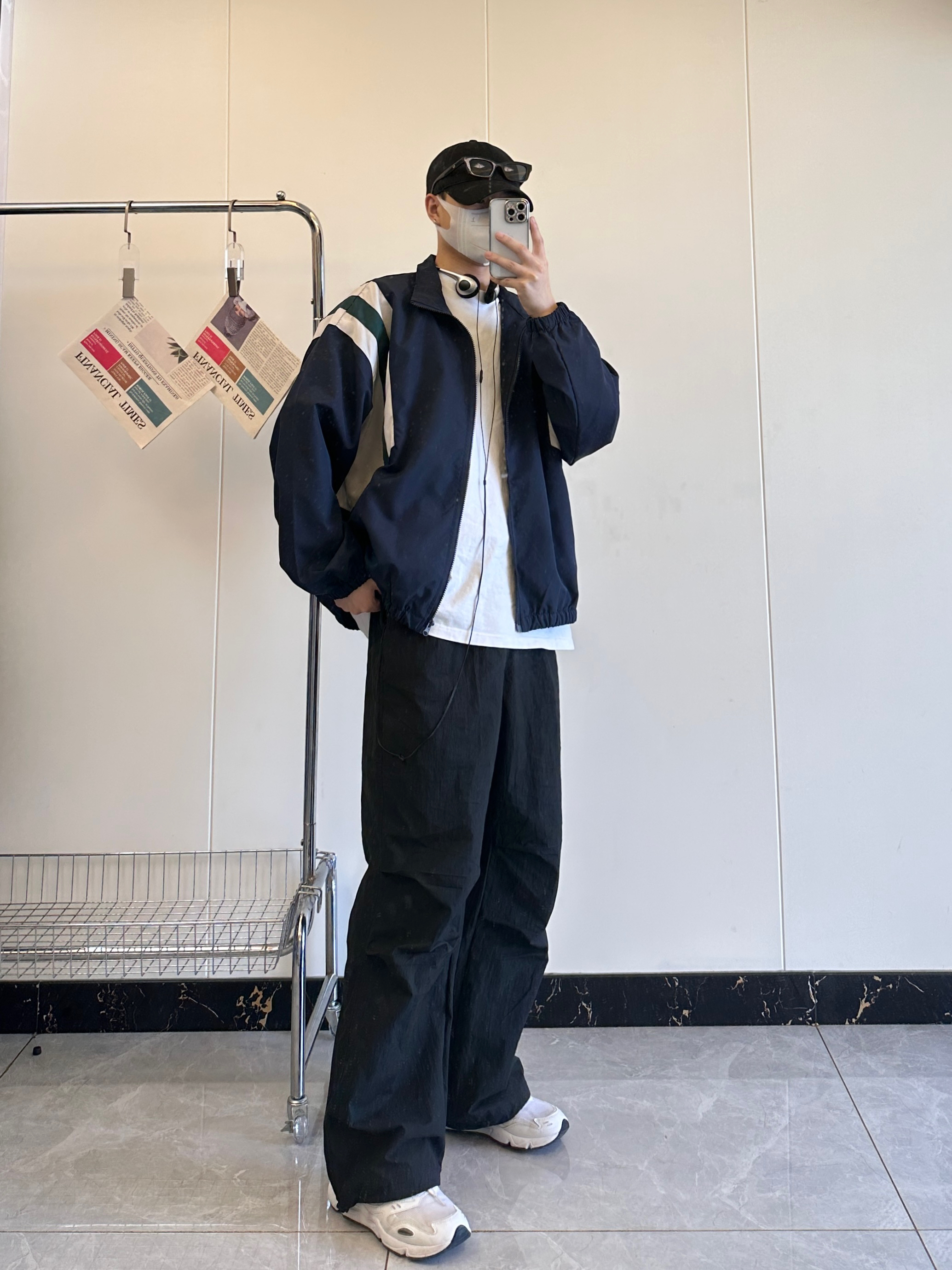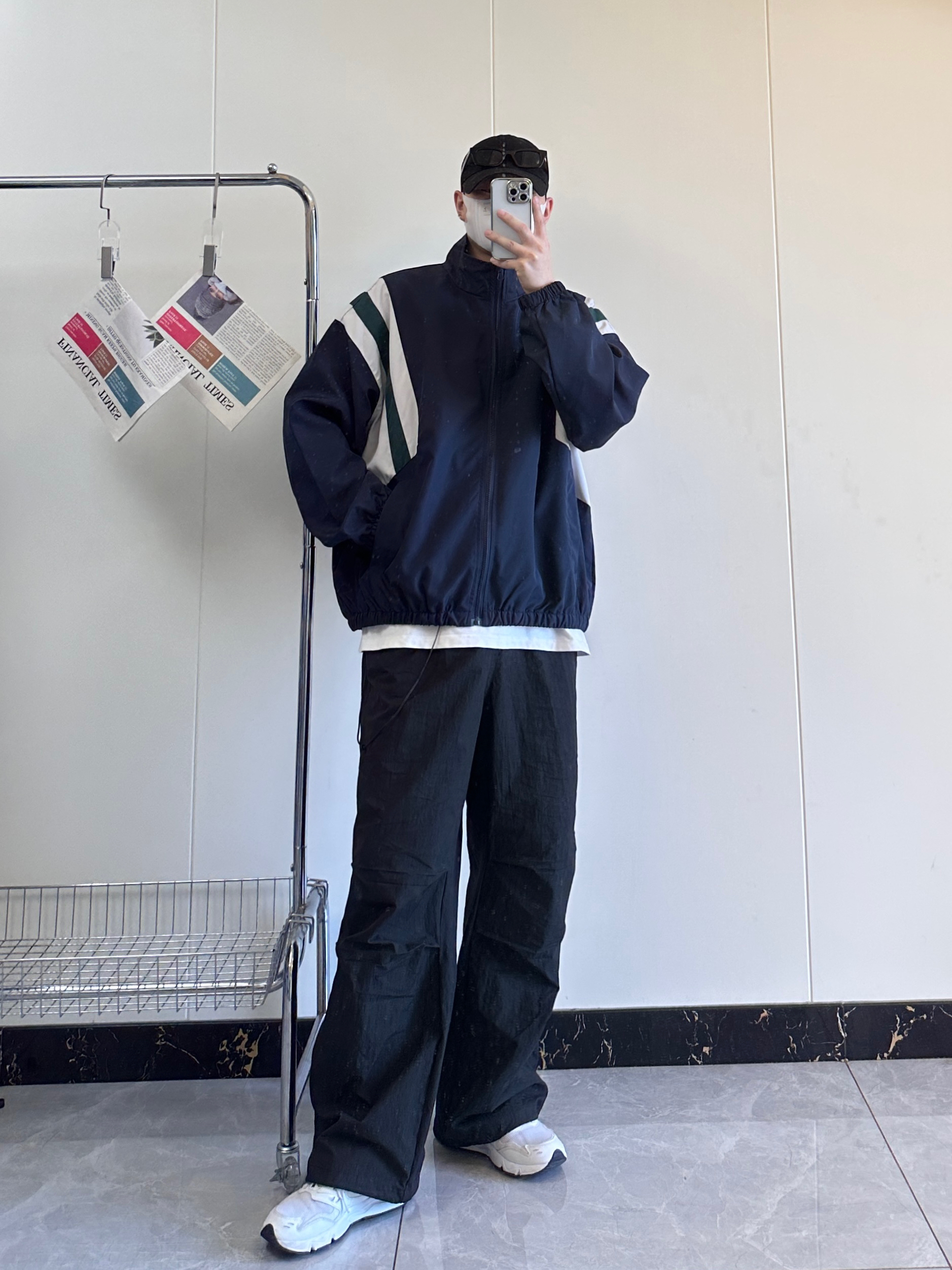 今日份分享秋季高级感穿搭 撞色拼接夹克搭配高街伞兵裤真的很有高级感 上衣肩部白绿拼色很有层次感不会显得太单一 偏薄的外套也是更适合入秋穿的。 宽松版型的伞兵裤不挑腿型,膝盖双褶的设计。 鞋子👟:NB426非常百搭而且又舒服的白色运动鞋 身高178|体重125 尺码:L