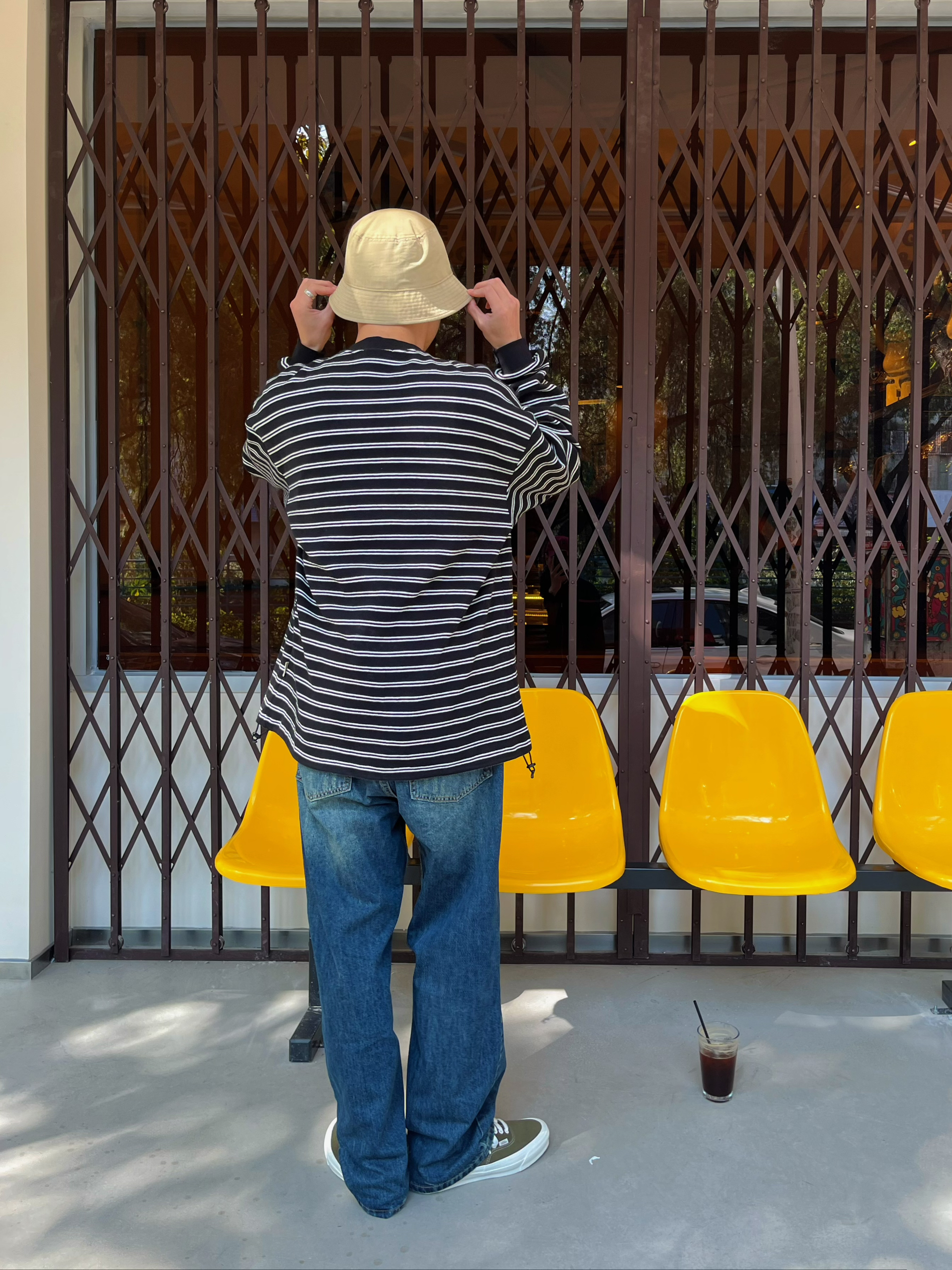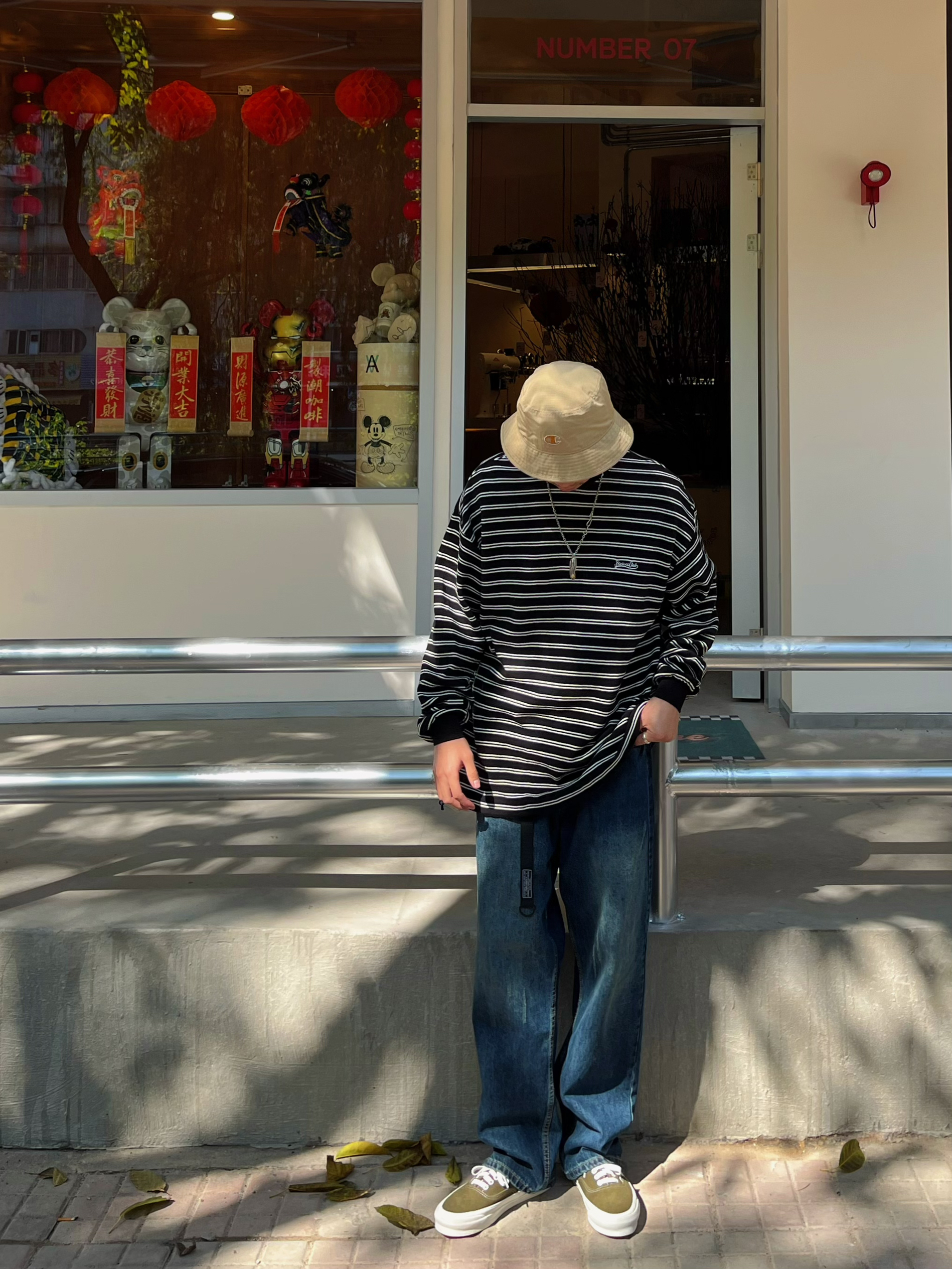 廓形条纹T恤 搭配直筒牛仔裤 适用通勤和休闲各种场景 秋季日系穿搭技巧get