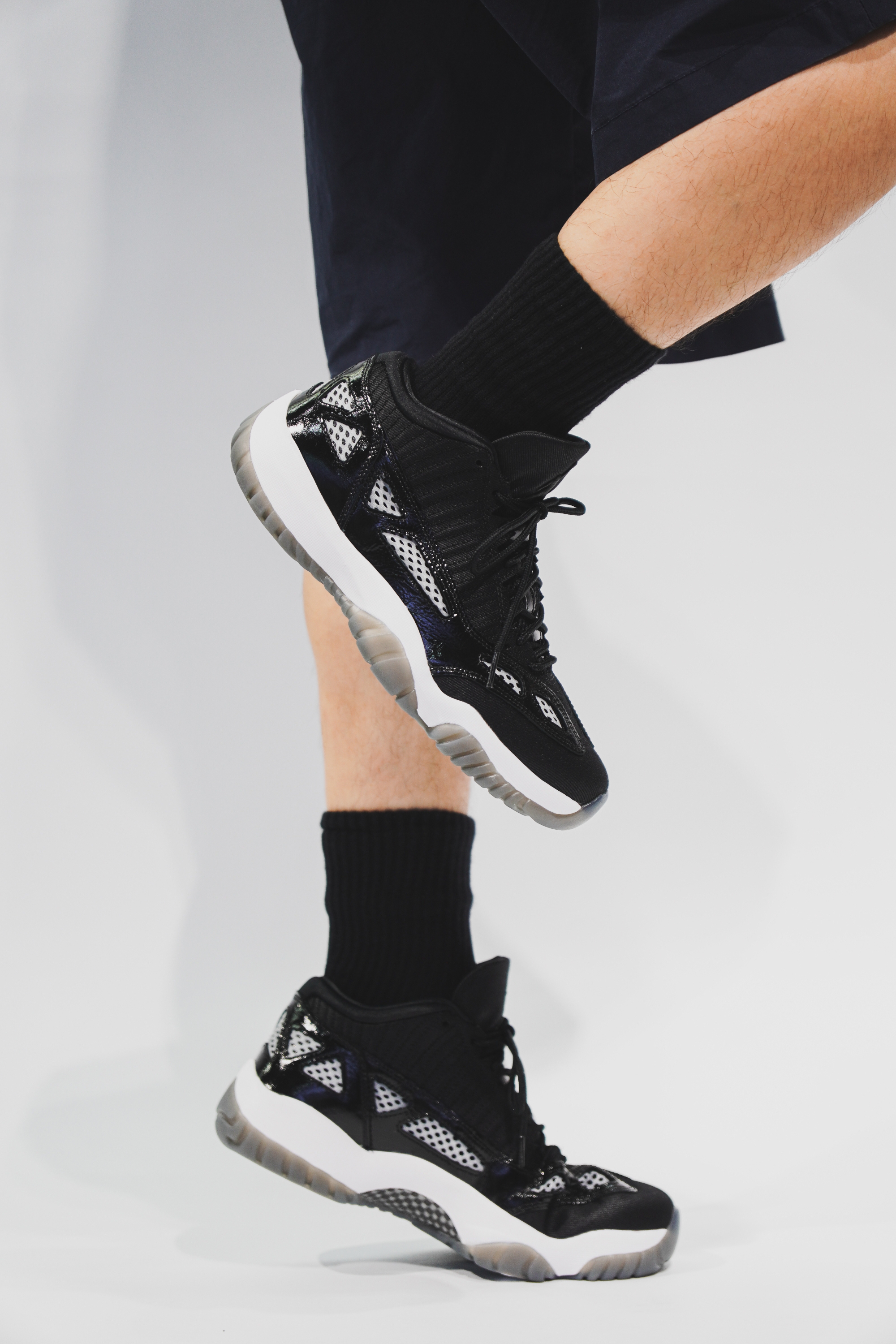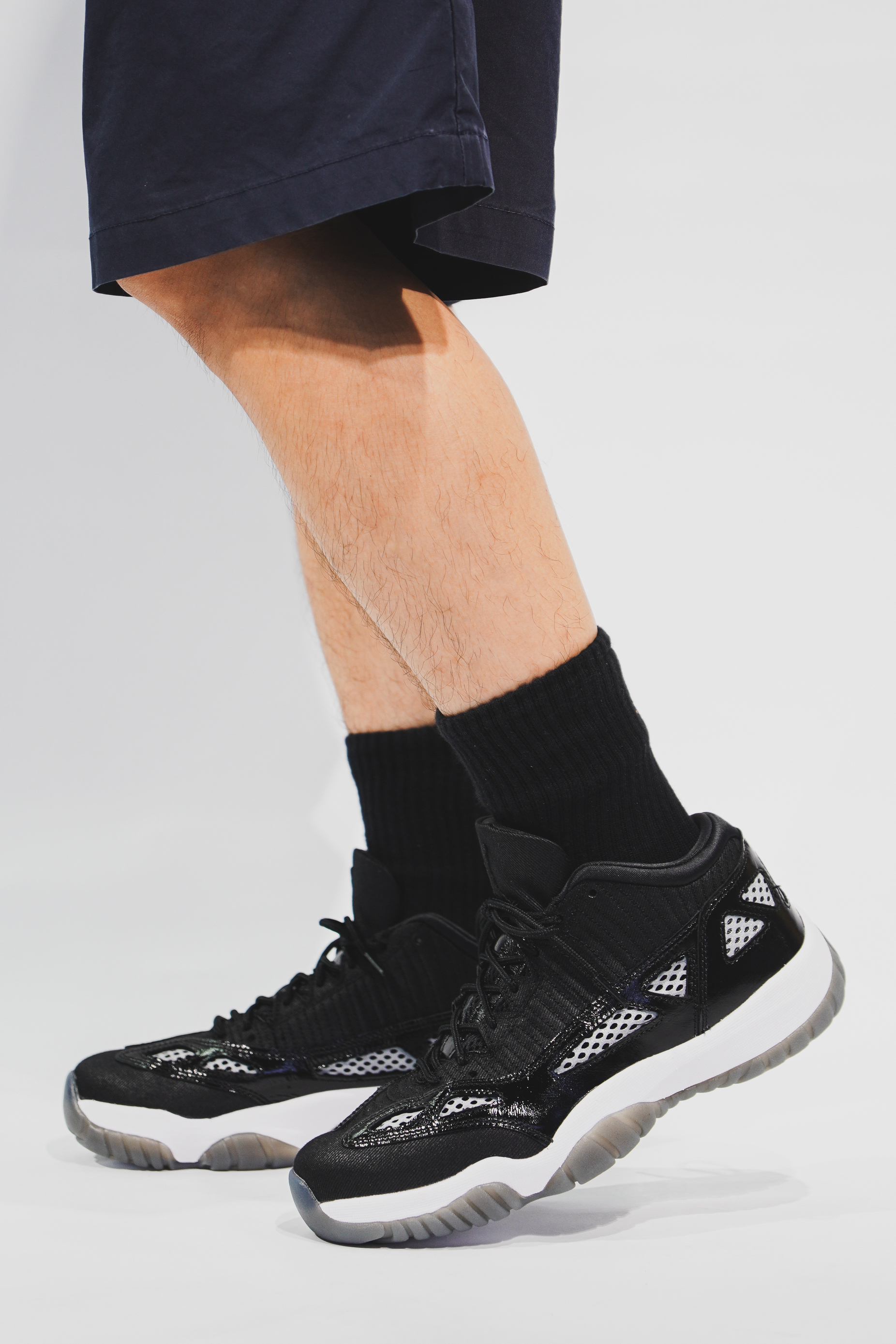 作为 AJ 正代系列里的佼佼者,AJ11 鞋型有多帅相信都不用我多说! 在改版款设计里,原本正常的鞋身,被安排上了一系列的镂空元素。丰富且搭配合理的几何图形,直接把这些镂空,化作很优秀,很吸睛的设计元素。 在这些镂空里,还加入了一层透气网格面料。兼顾舒适度的同时,还为整鞋增添很强的潮流感。